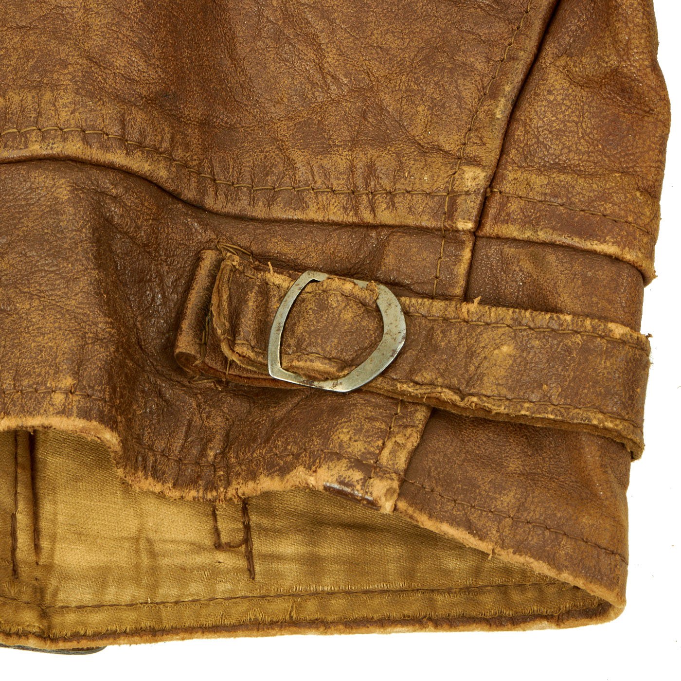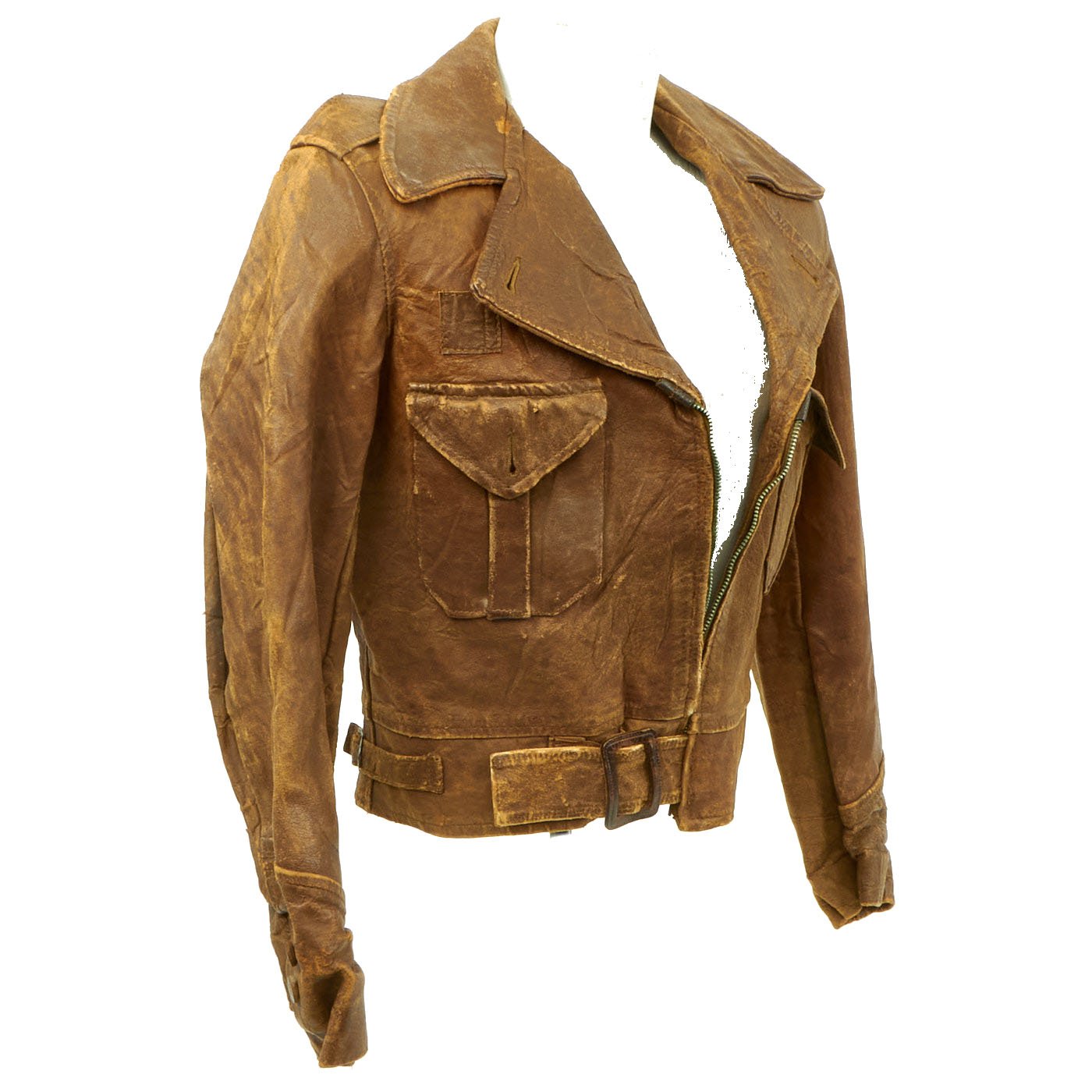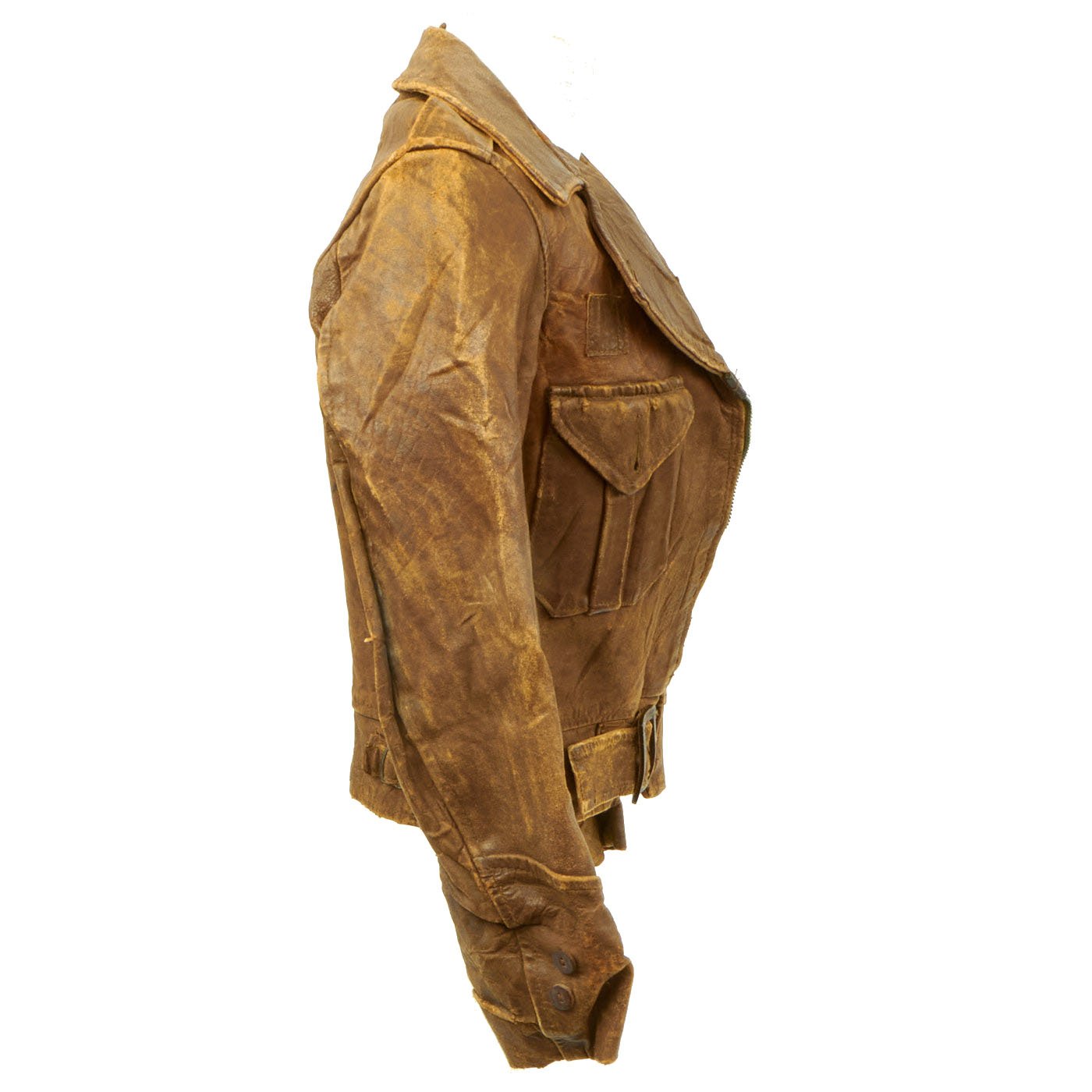 Original Item: One of a Kind. Incredibly scarce WWII Chinese Pilot’s Jacket. Quite possibly worn by an American Aviator serving with the American Volunteer Group (AVG), also known as the “Flying Tigers”. This jacket features some incredible period applied artwork, consisting of a large rampant tiger, Chinese characters, a Chinese Aviation Section Major’s Wing, and a full color Kuomintang Sun emblem painted on the back. The polished cotton lining also has some Chinese characters and the number “48” written inside. There is evidence that there was a tag sewn into the nape of the neck of the lining, but that is now missing. Jacket is cut similar to that of a British Battledress Jacket; Two pleated chest pockets, and an integral belt at the waist. Buttons are crudely fashioned from leather. The Jacket was secured via a zipper on the front, however, sadly, the zipper pull is not present. Jacket shows signs of heavy wear, but displays fabulously.