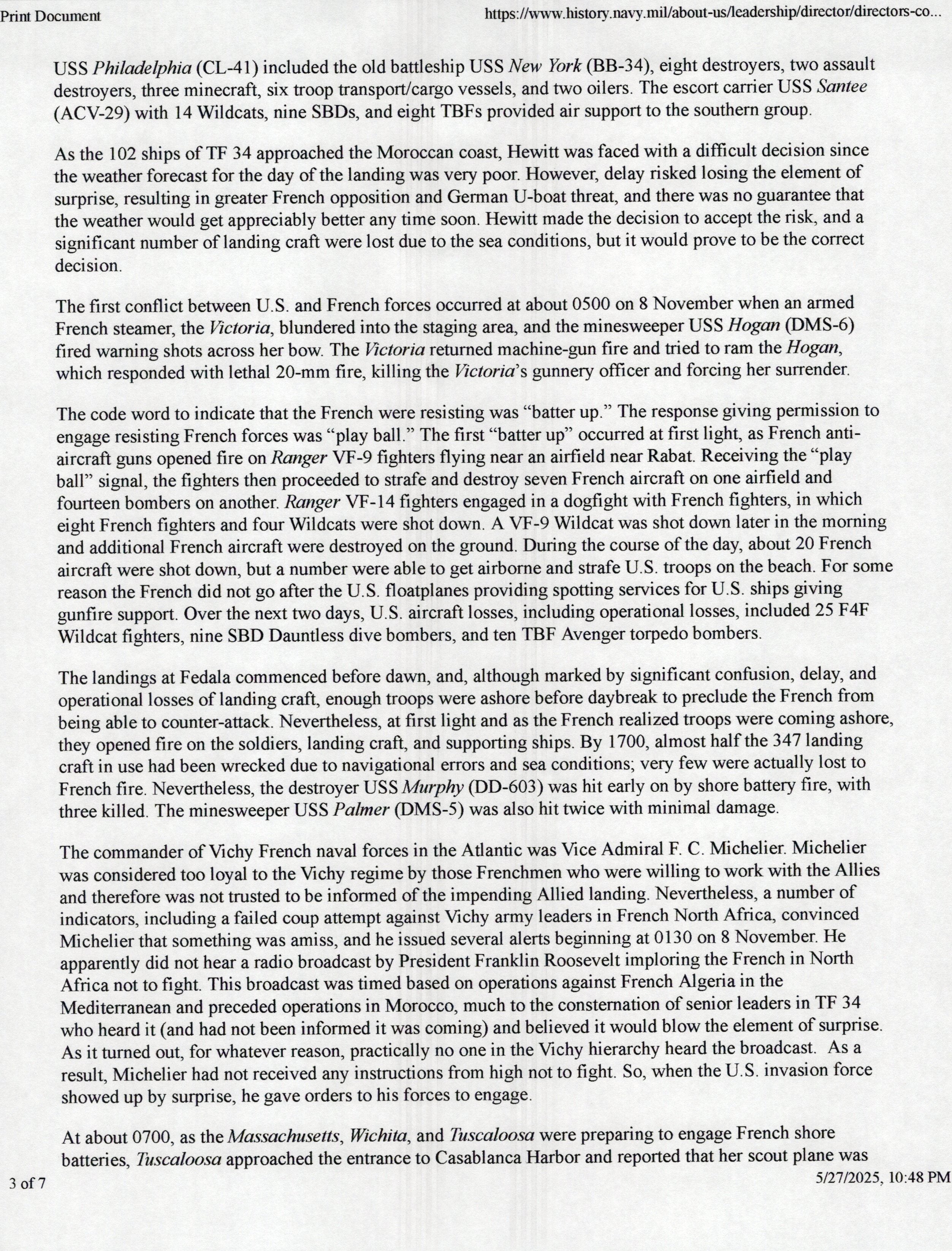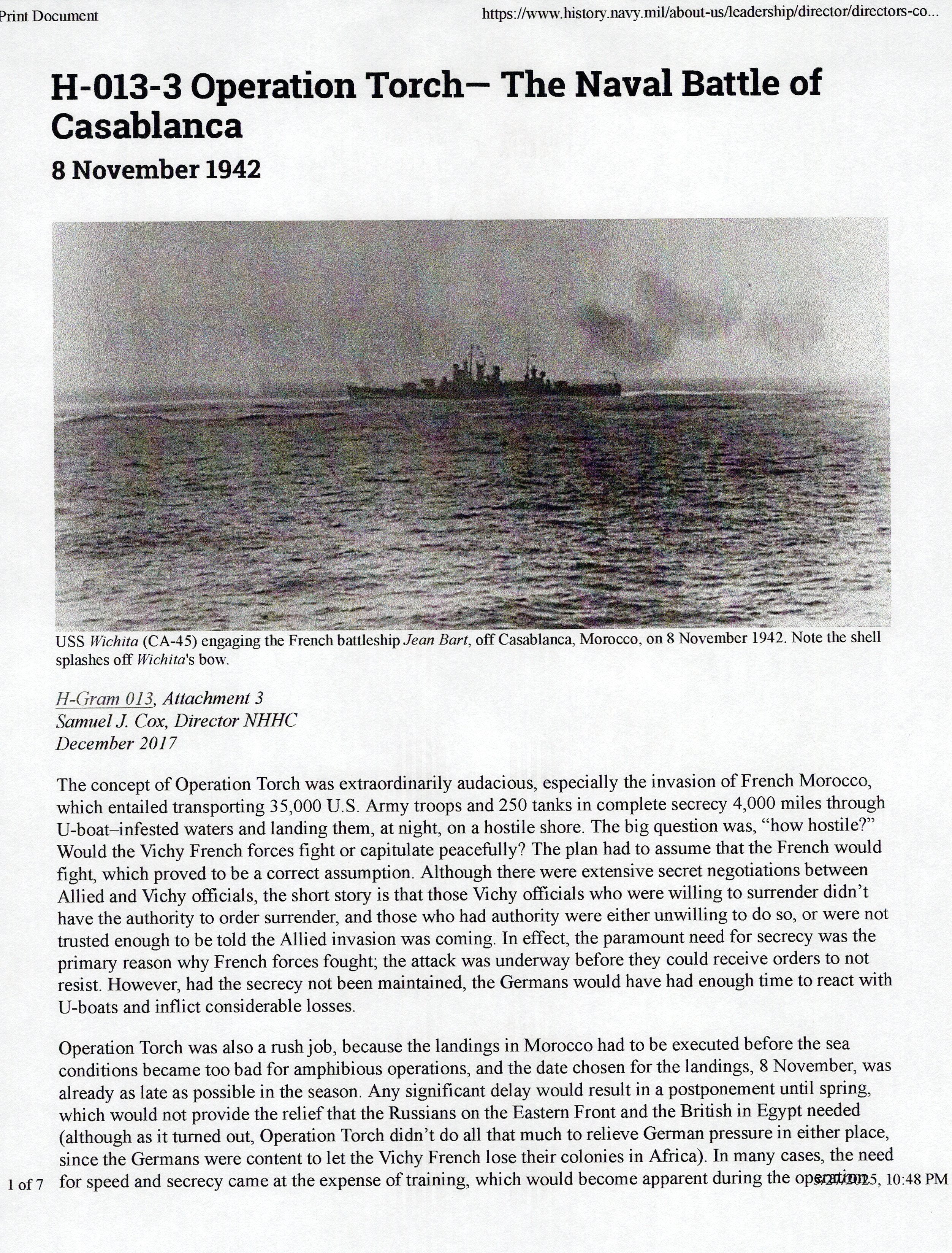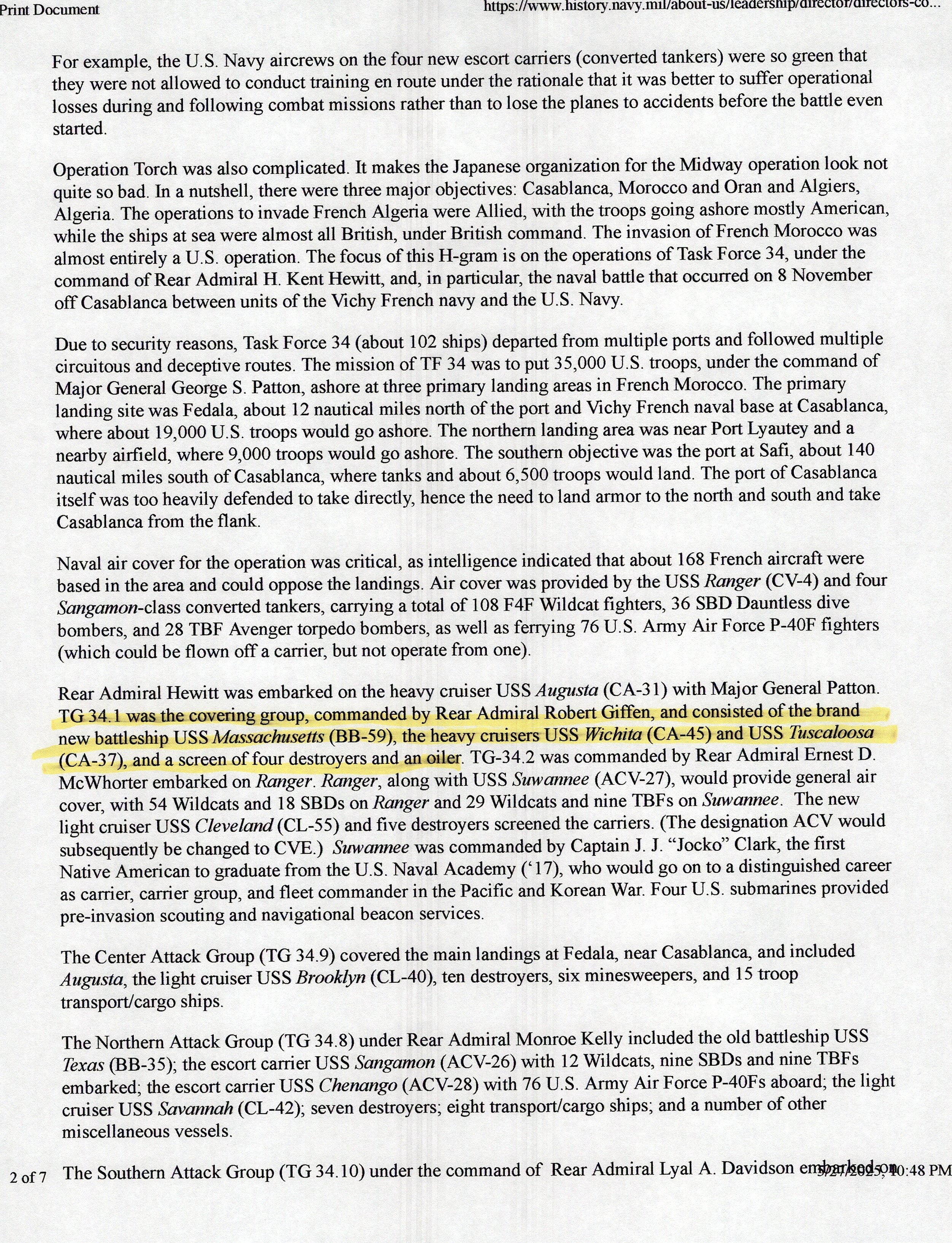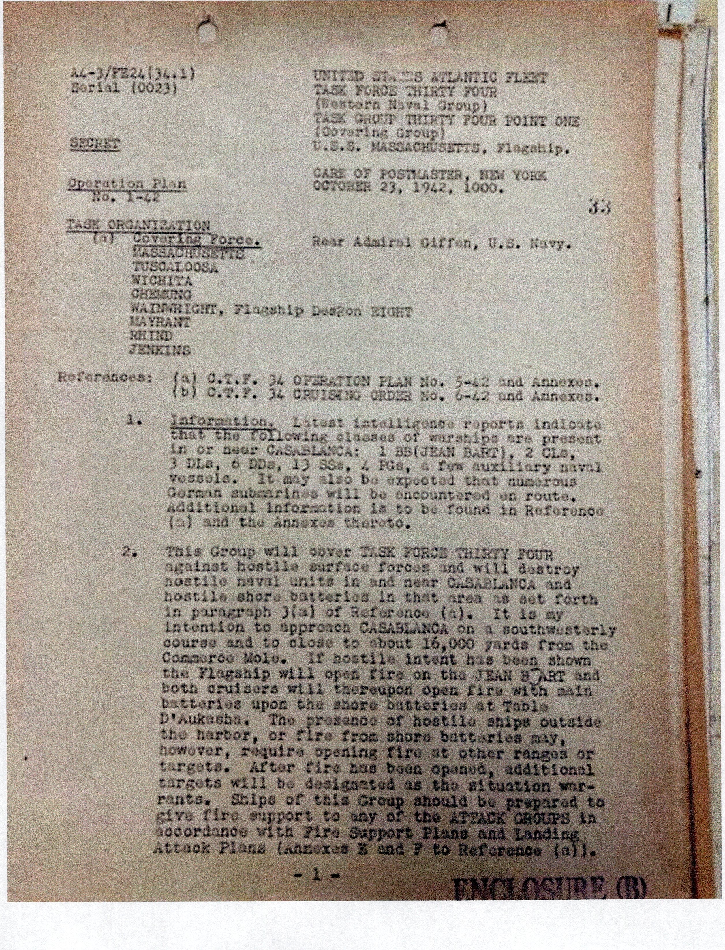 With the research we’ve accumulated from the Nimitz archive, and all available reference online, we are entirely confident in our findings that Unmacht was flag lieutenant of the USS Massachusetts during Casablanca. There may be incomplete information found online that does not include the Massachusetts as his station, but as flag lieutenant of a division, his location would often be hard to track.