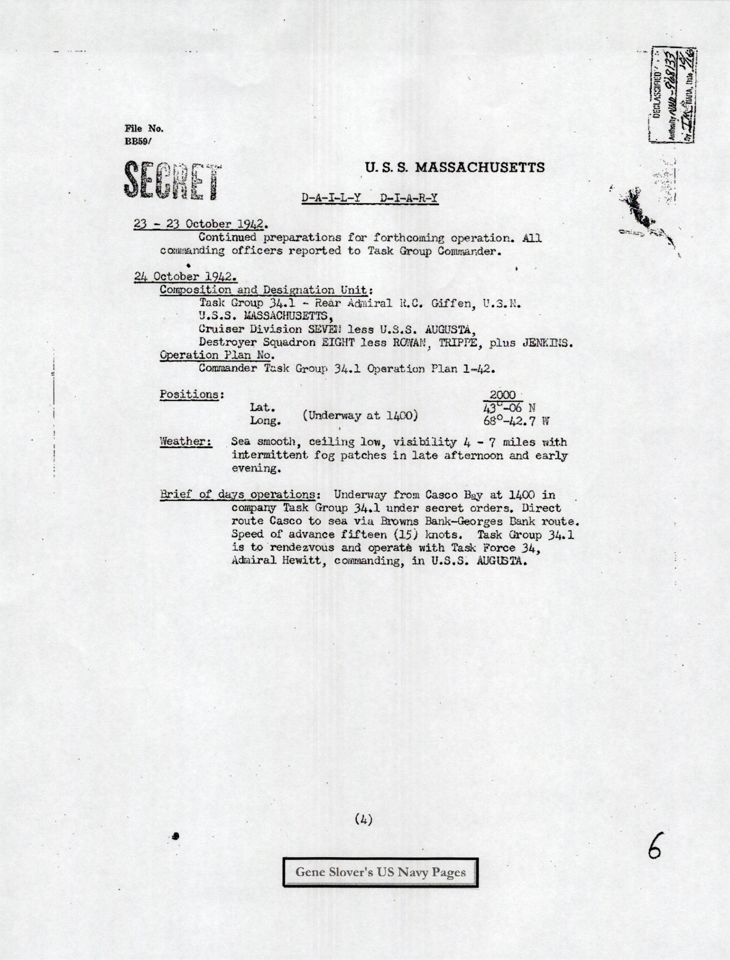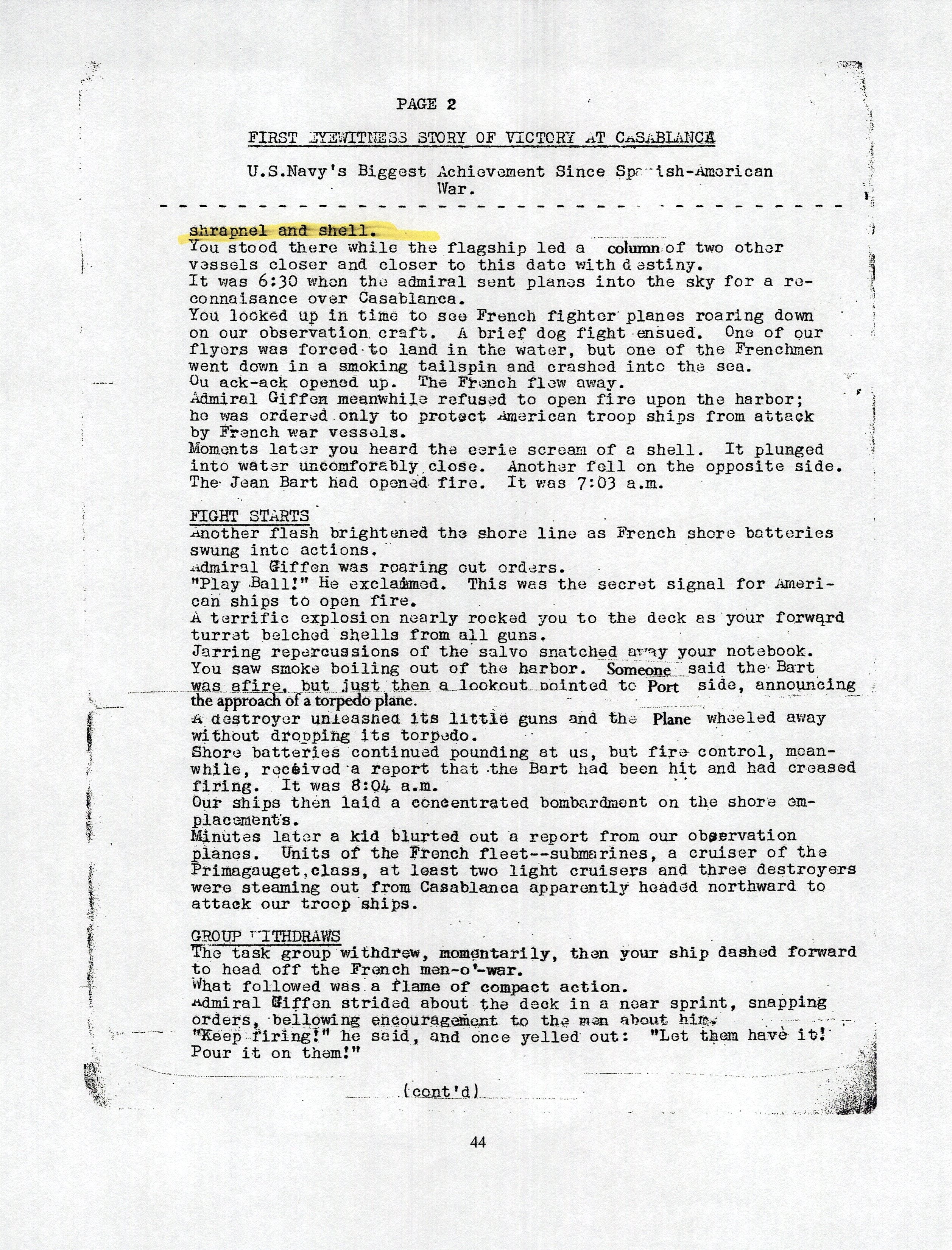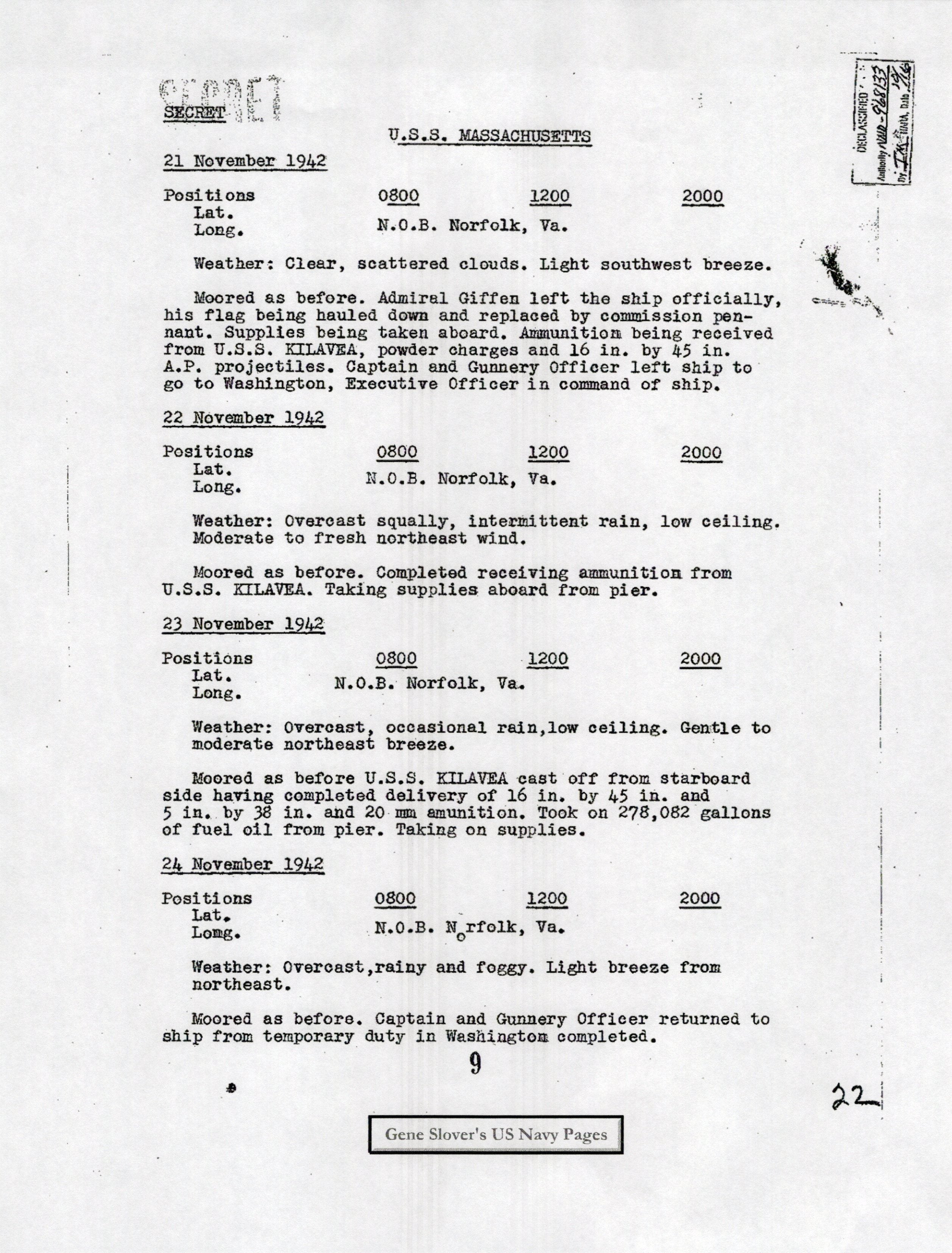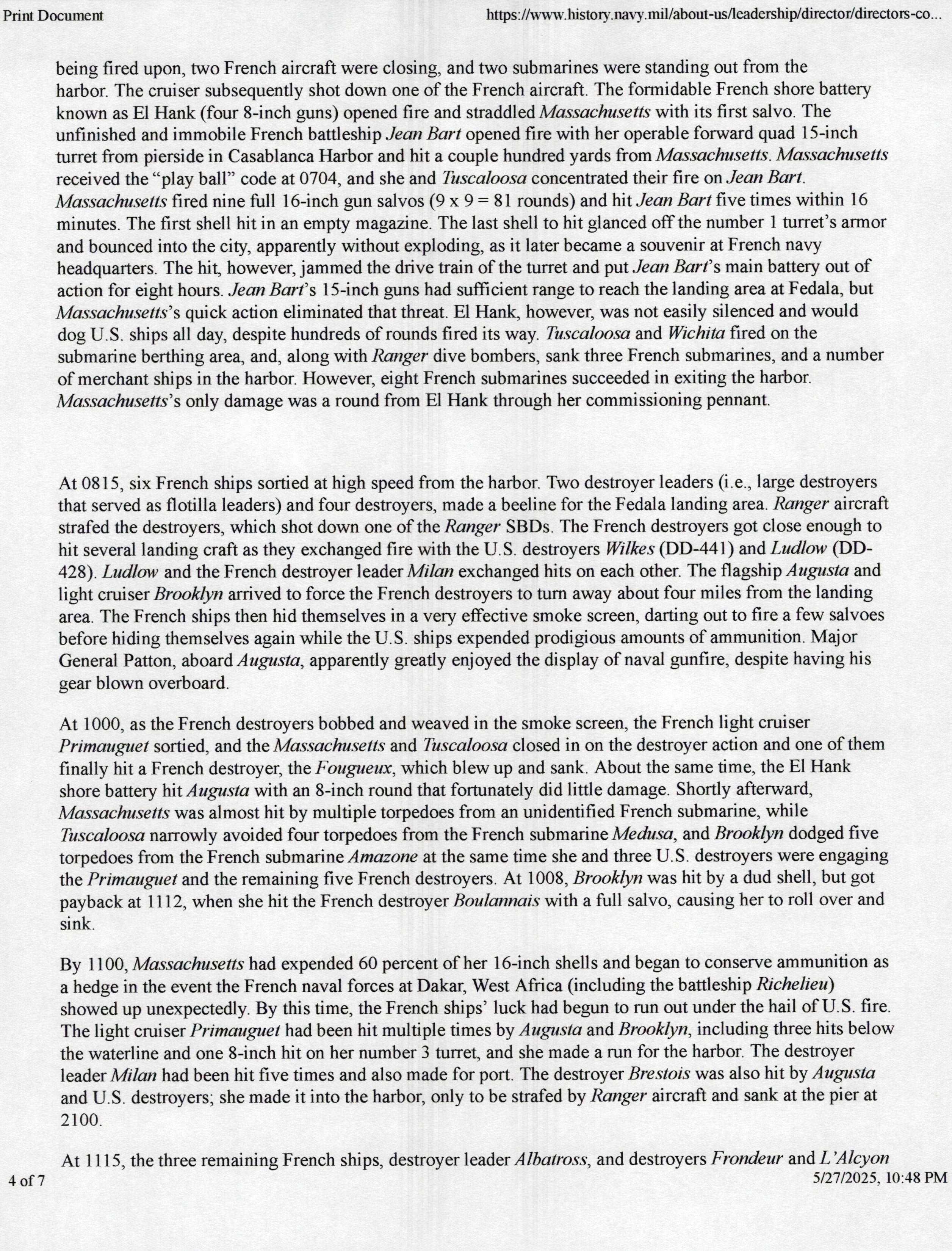 With the research we’ve accumulated from the Nimitz archive, and all available reference online, we are entirely confident in our findings that Unmacht was flag lieutenant of the USS Massachusetts during Casablanca. There may be incomplete information found online that does not include the Massachusetts as his station, but as flag lieutenant of a division, his location would often be hard to track.