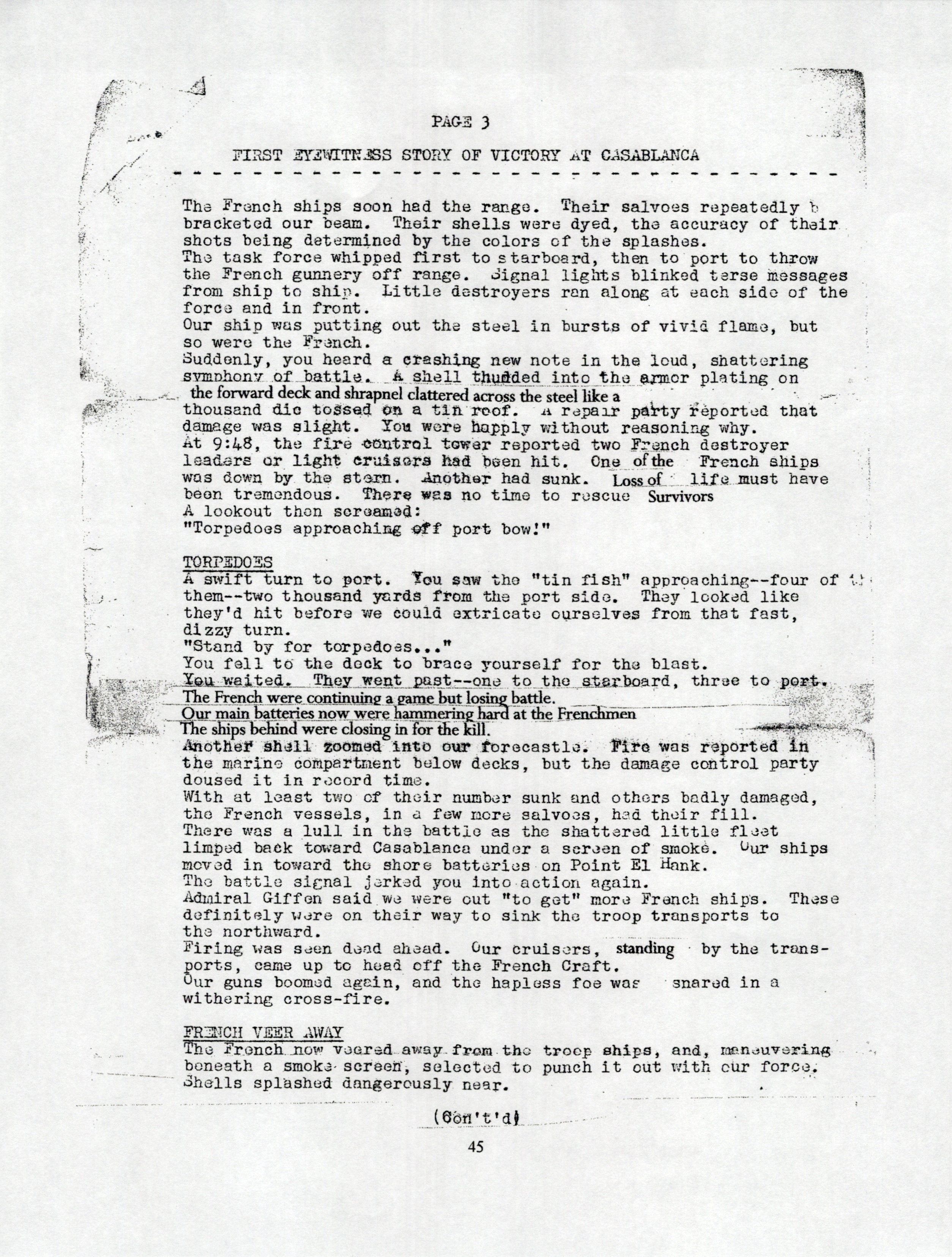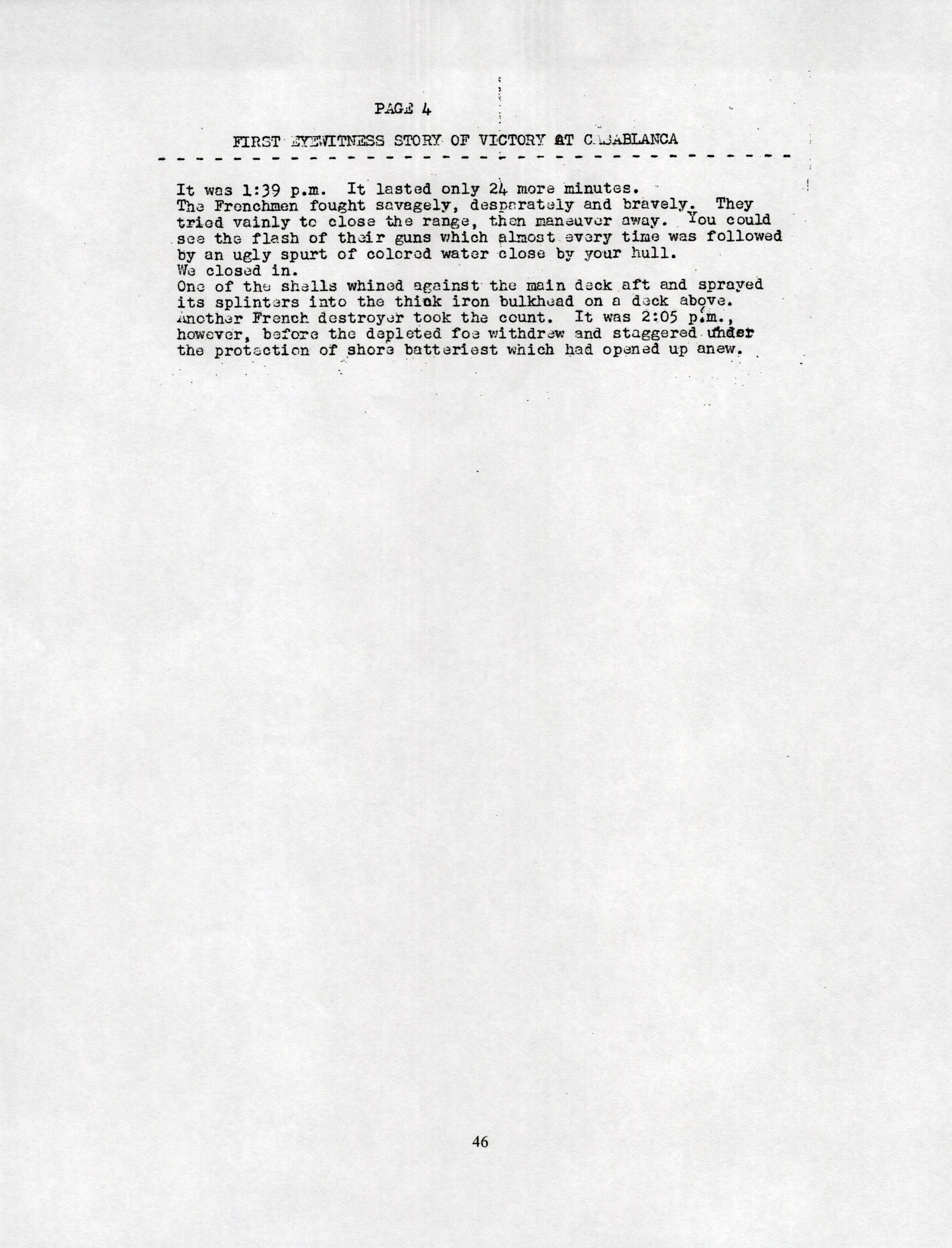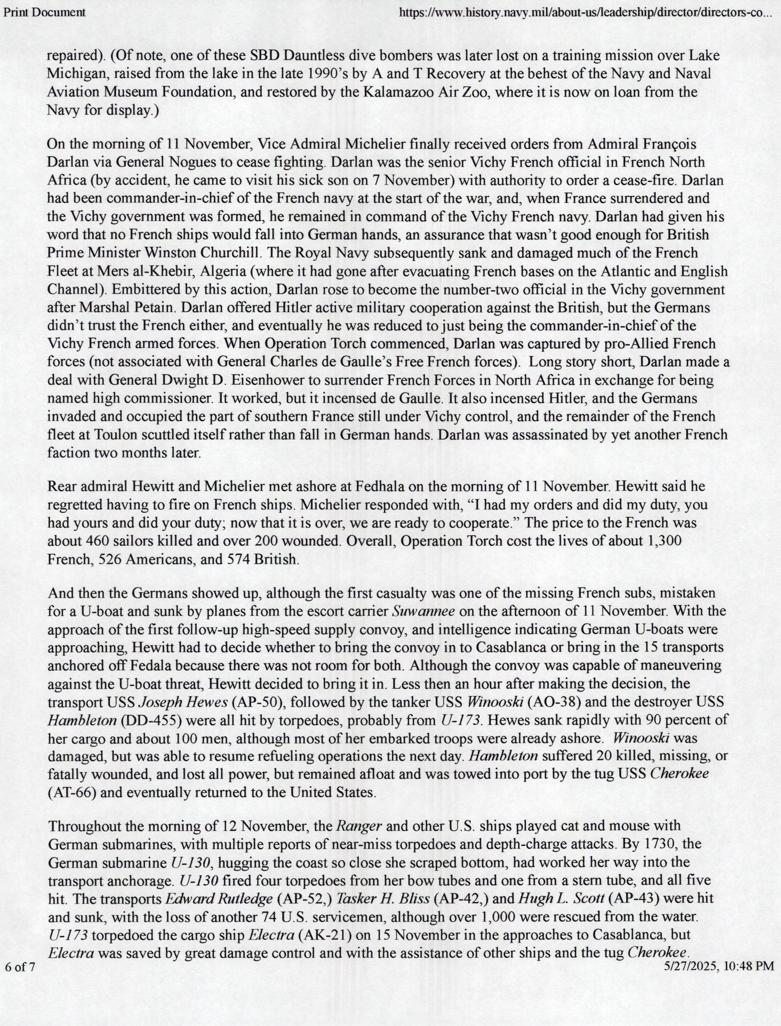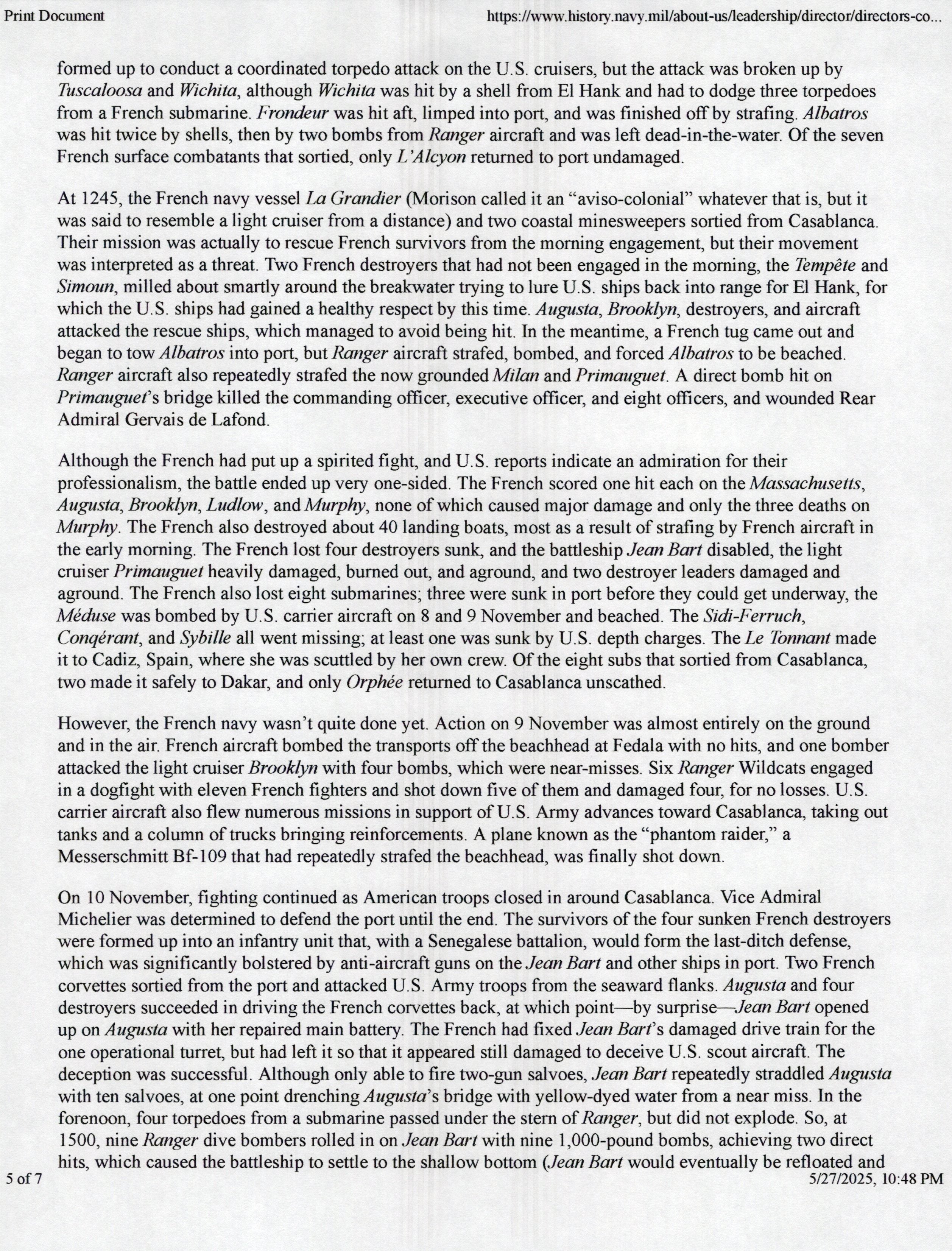With the research we’ve accumulated from the Nimitz archive, and all available reference online, we are entirely confident in our findings that Unmacht was flag lieutenant of the USS Massachusetts during Casablanca. There may be incomplete information found online that does not include the Massachusetts as his station, but as flag lieutenant of a division, his location would often be hard to track.