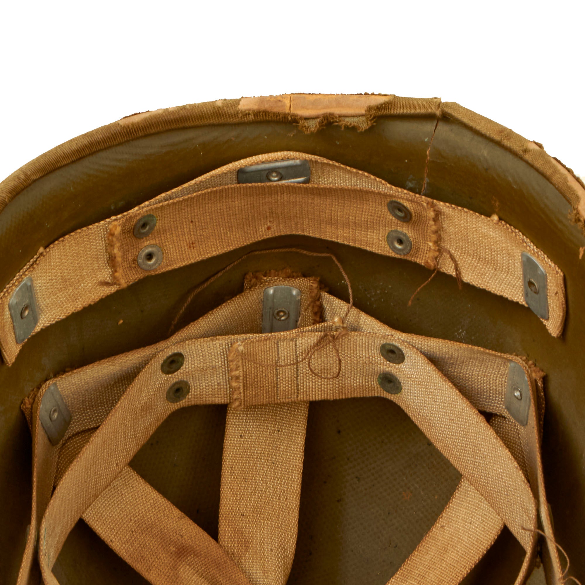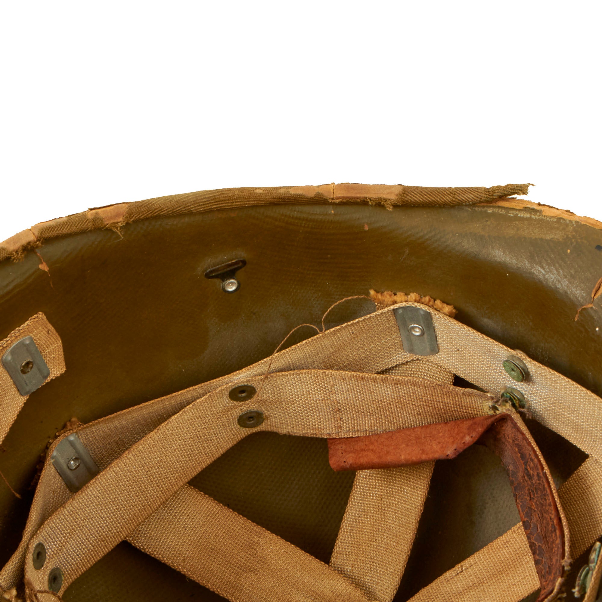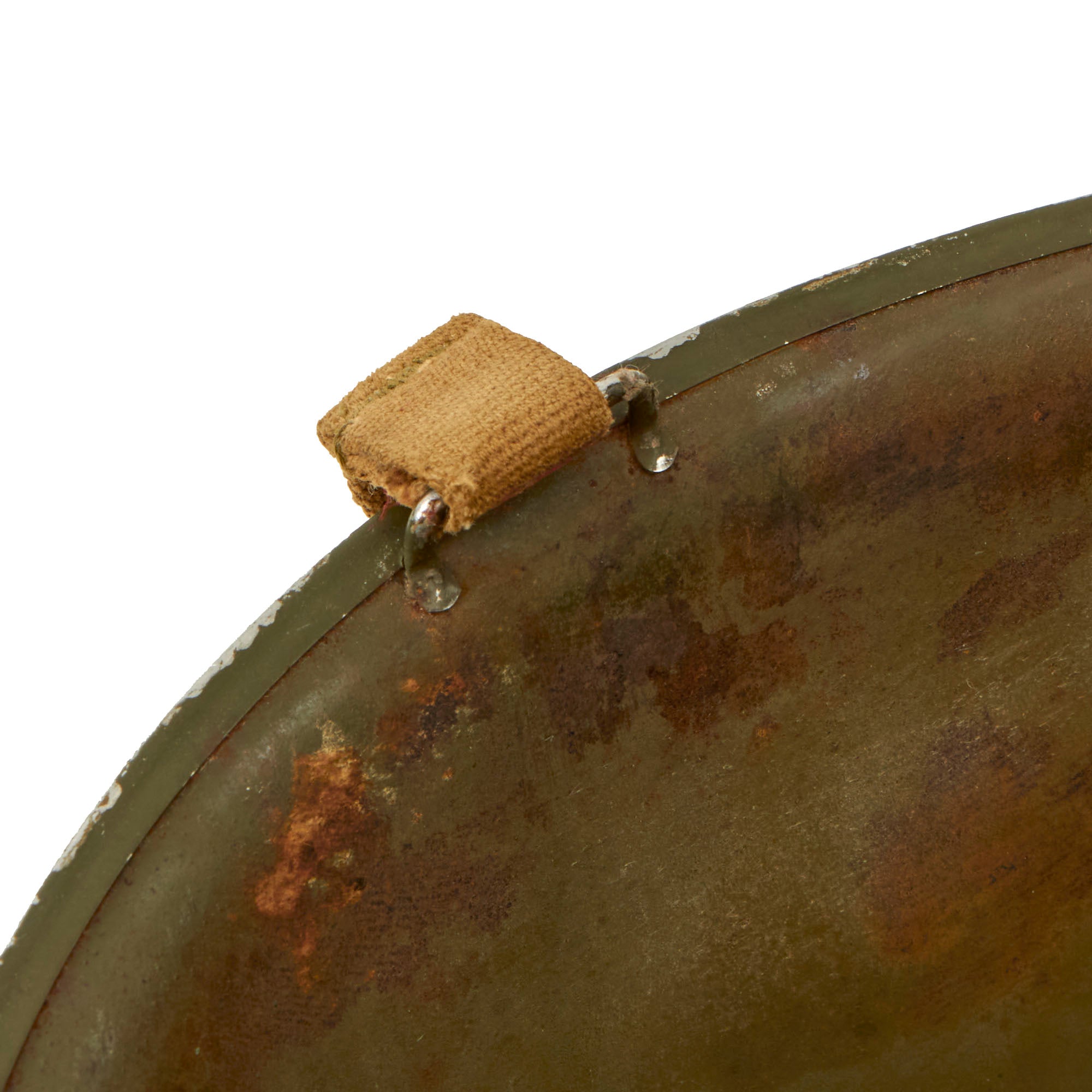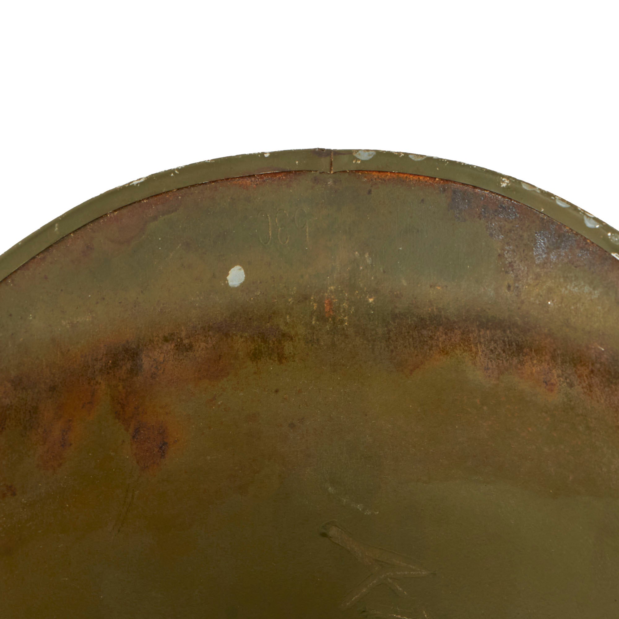 Original Item: One-of-a-kind. International Military Antiques is honored to present a singular artifact of extraordinary historical importance: a WWII U.S. Navy M1 fixed bale (very early 1941 production) combat helmet worn by Flag Lieutenant George P. Unmacht aboard the battleship USS Massachusetts (BB-59) during Operation Torch in November 1942. This object is not simply an example of wartime combat gear— it is a verified, uniquely documented item tied directly to a key moment in U.S. naval history and to one of the most significant amphibious campaigns of World War II. With ironclad provenance to a decorated officer and a momentous operation, this helmet represents an unparalleled opportunity for collectors, historians, and institutions.