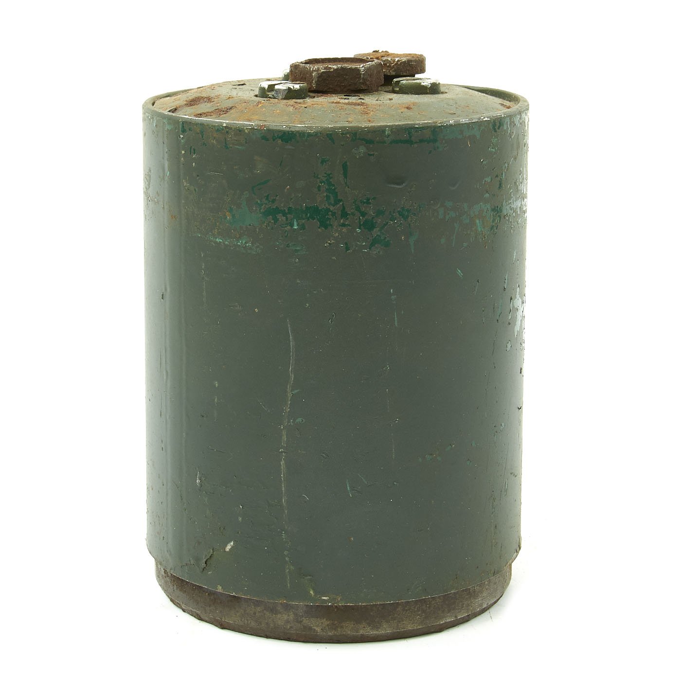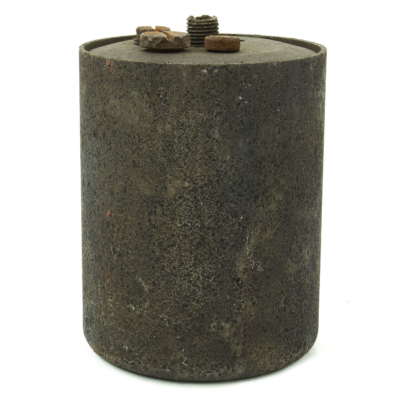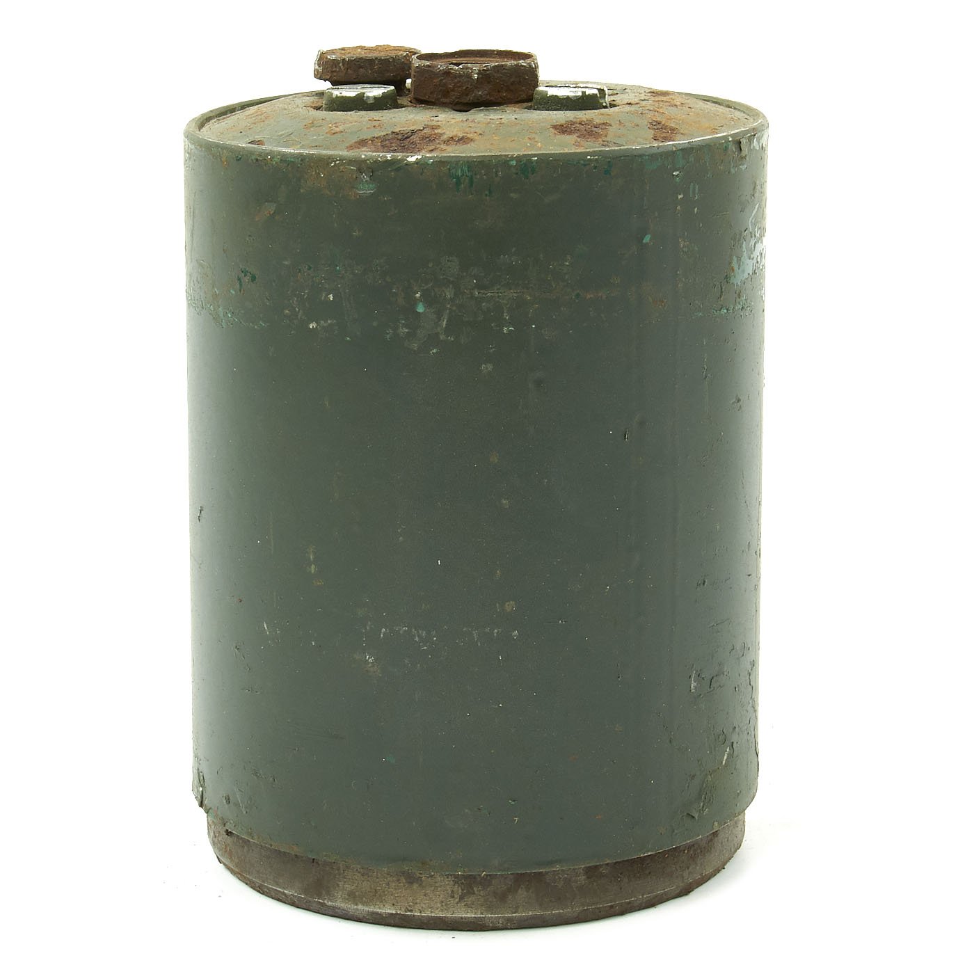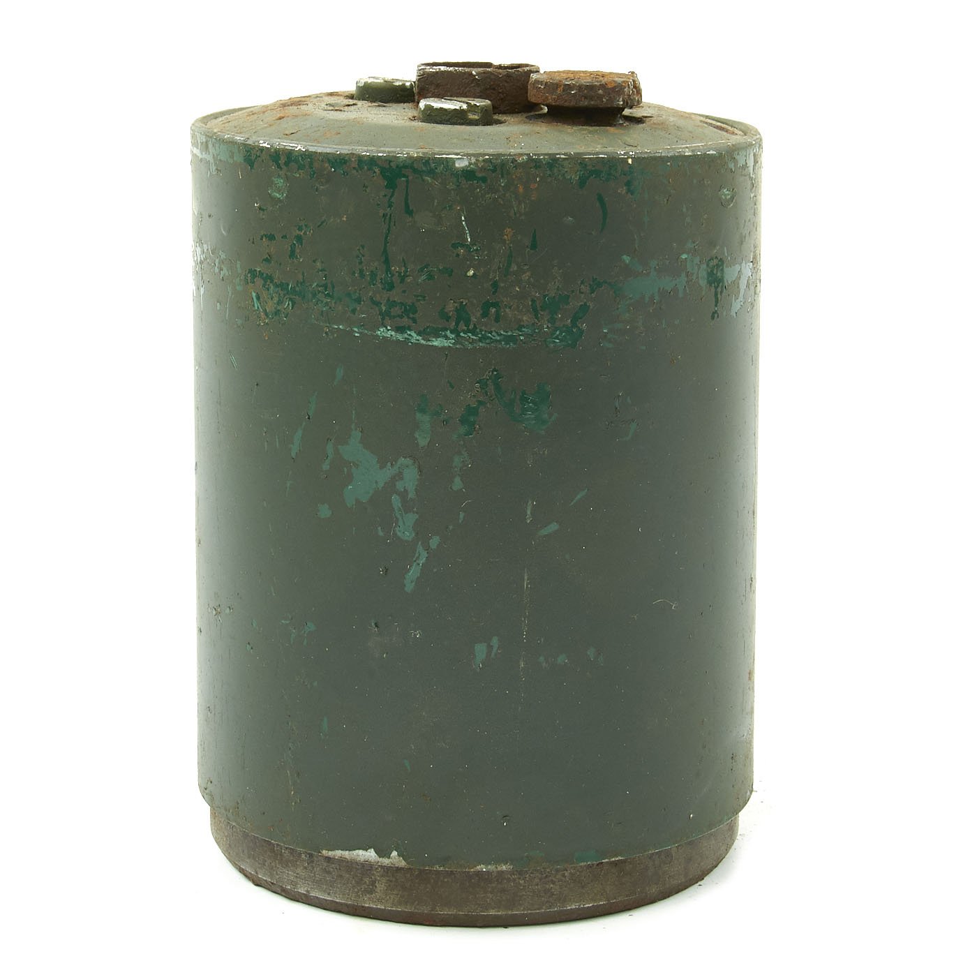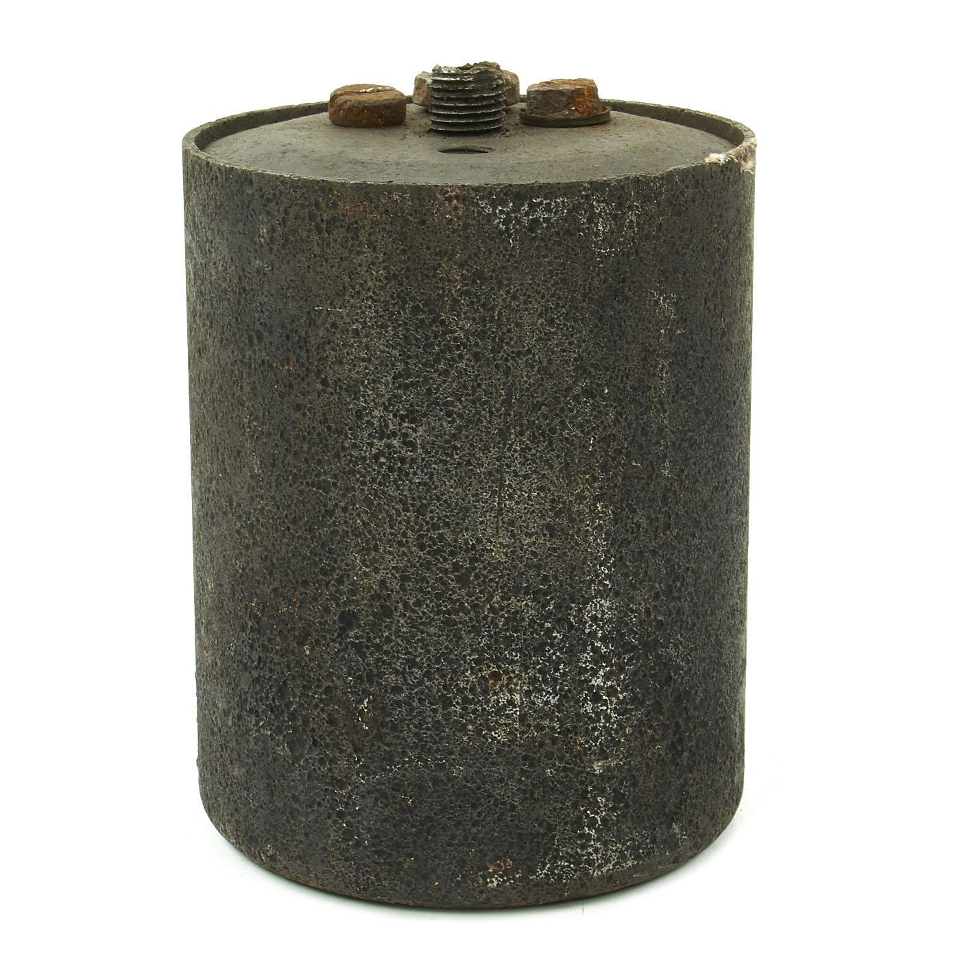 Original Item: Only One Set Available. This is an incredible inert set of three original German WWII S-Mines, contained in an original steel transit chest. Included are multiple original paper detonator fuse tubes, as well as an original 1939 dated bakelite case containing three pressure activated fuses, one for each mine. There is also a bag of original steel shrapnel, which we have not installed in any of the mines in the set.