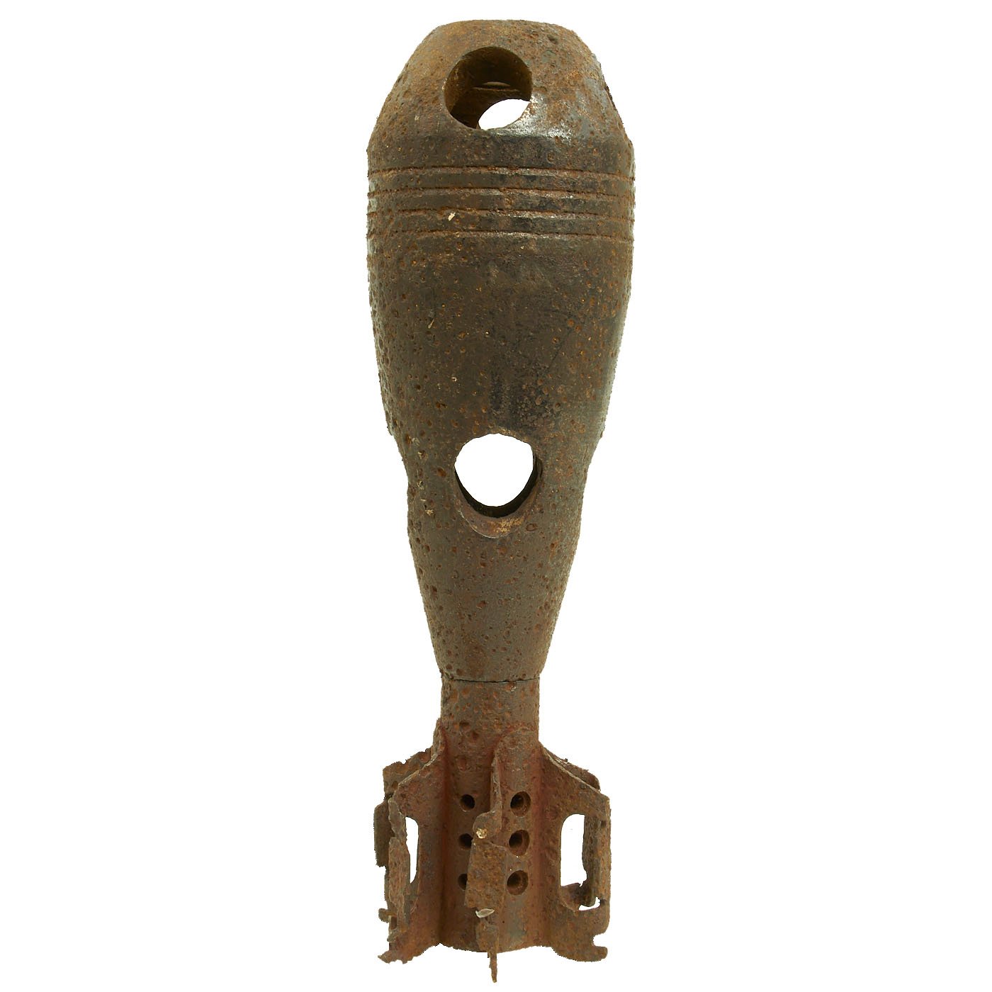 Original Item: Only One Available. This is a very nice "battlefield pickup" condition WWII Soviet Russian 82mm Mortar Inert Practice round, as used by the 82-BM-37 & 82-PM-41/43 Mortars. These were reusable, and could have additional propellant charges added by removing the fin / propellant assembly on the bottom.