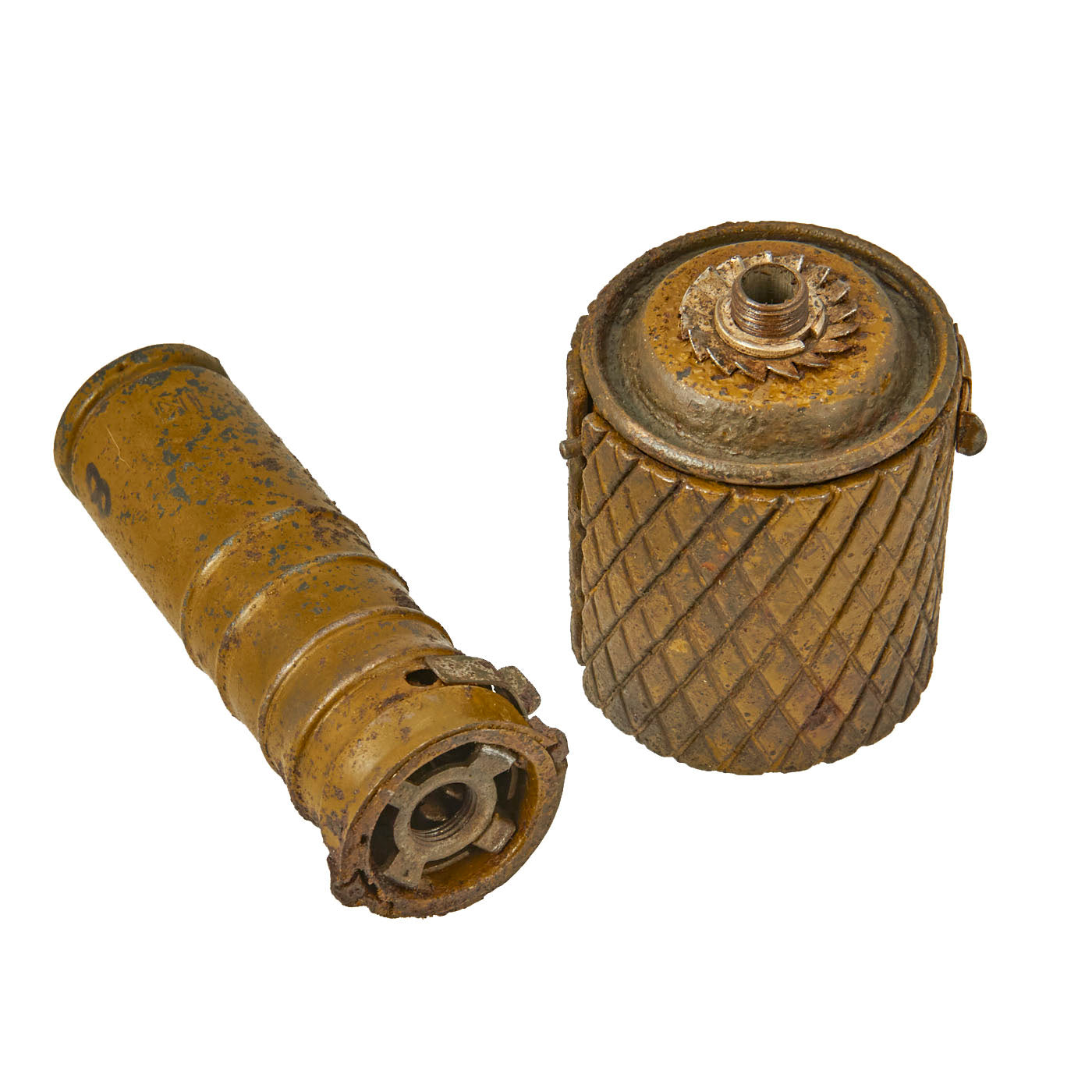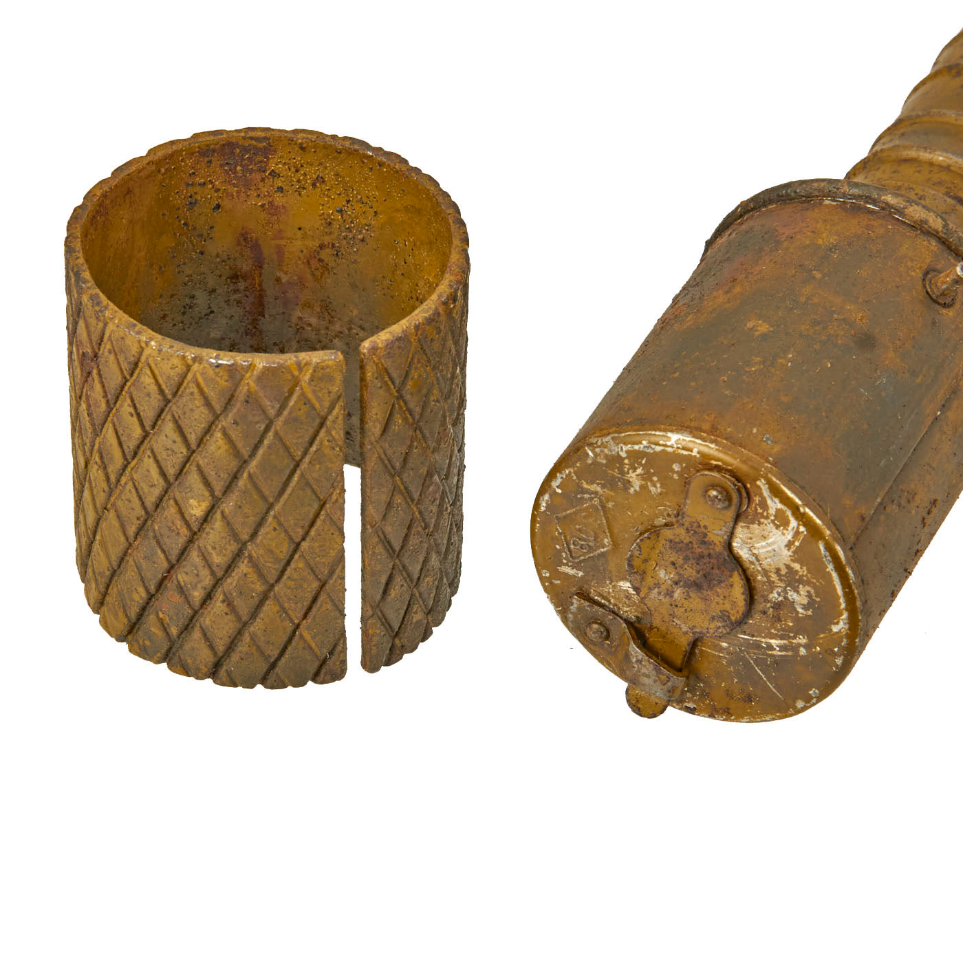 This example was recovered from the field, where they had been exposed to the elements for several years. It is complete with a rare fragmentation sleeve, inert and complete, but shows some minor rust and age. Overall wonderful example of genuine battlefield pickup RGD-33, ready for display!