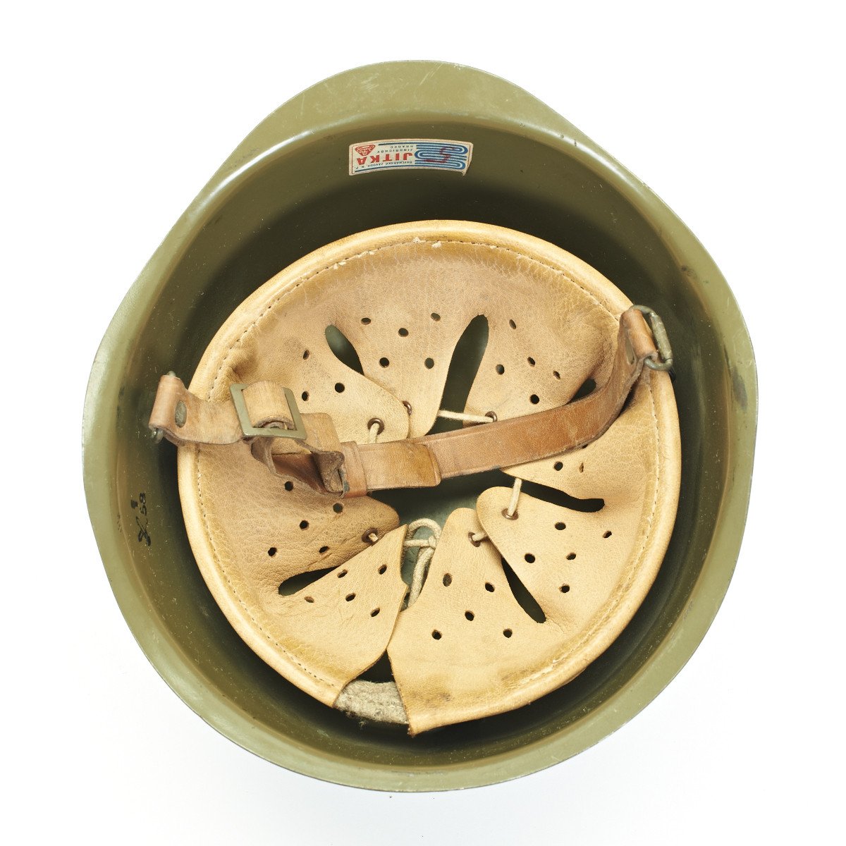 Original Item: Manufactured after WWII by Warsaw Pact nations, these are the classic M40 WWII Soviet Russian style steel helmets fitted with German WWII style leather liners and adjustable leather or fabric chin straps. These helmets provide the RED ARMY classic style helmet of WWII and the Cold War for a fraction of the price of a WWII manufactured helmet.