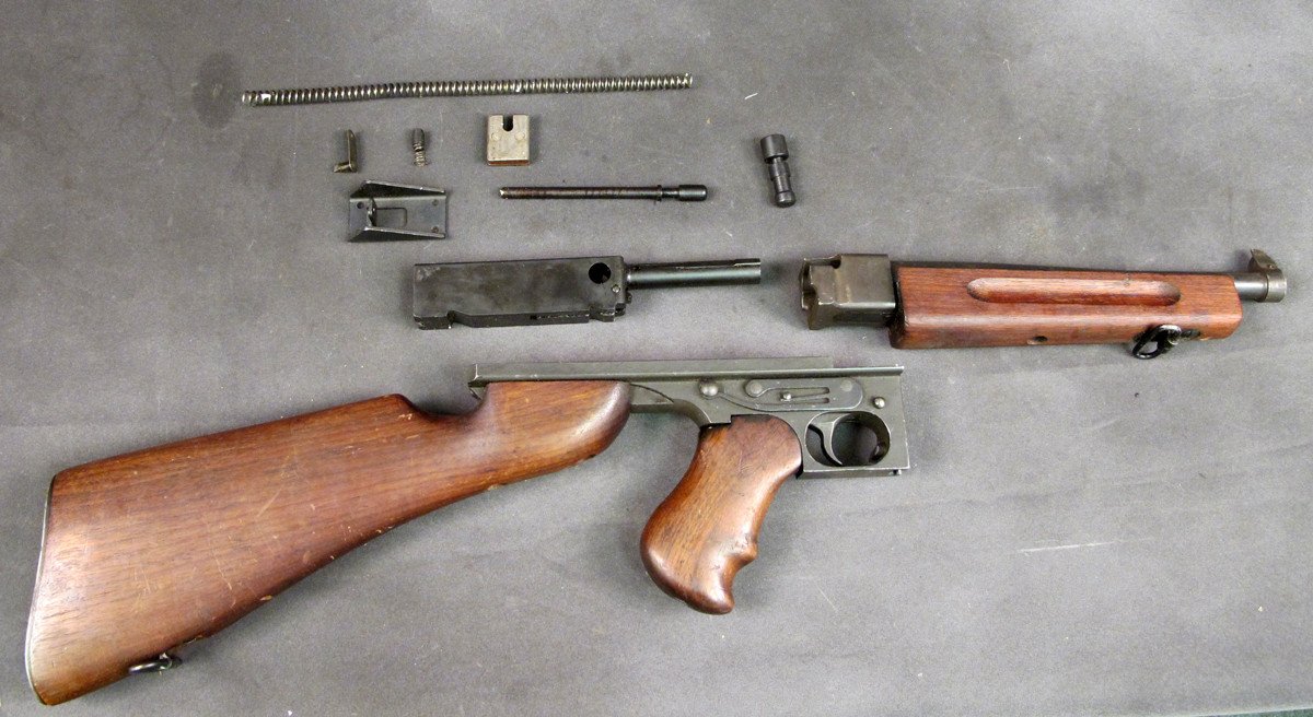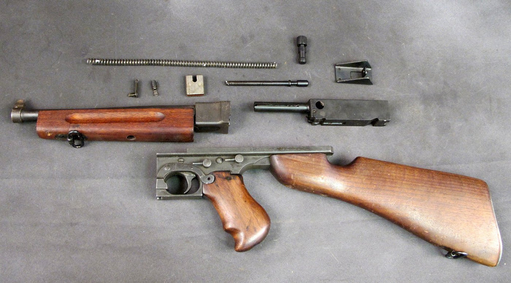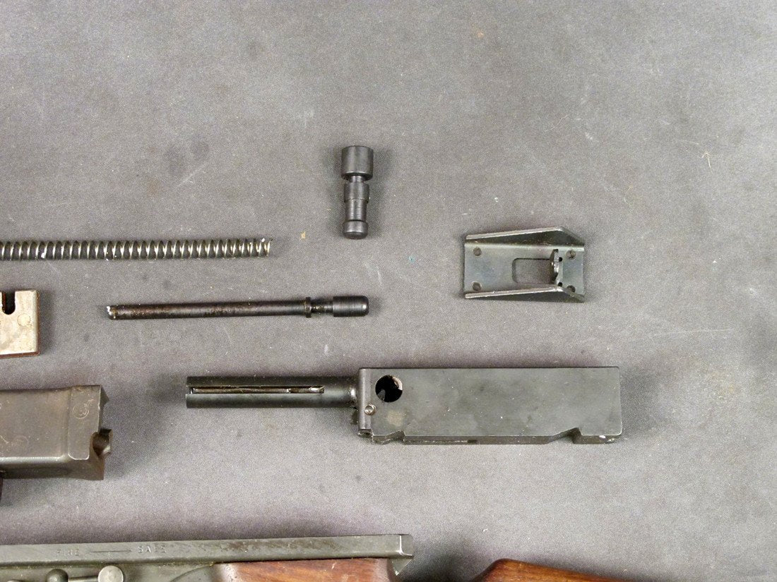 Original Item: Only One Available. This is it, our very last M1 Parts set; excellent Original U.S. Thompson WW2 era M1 Parts Set together with original.45 cal Barrel. Parts set comes complete less De-milled Receiver and Magazine (both available separately). The M1 bolt looks to be NOS. Overall in Very Good/Excellent Condition. These sets haven't been around in years. One available, act fast it won’t last