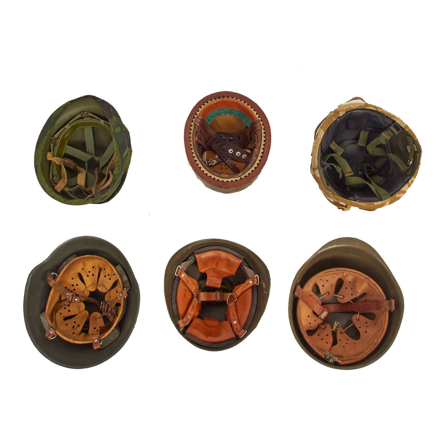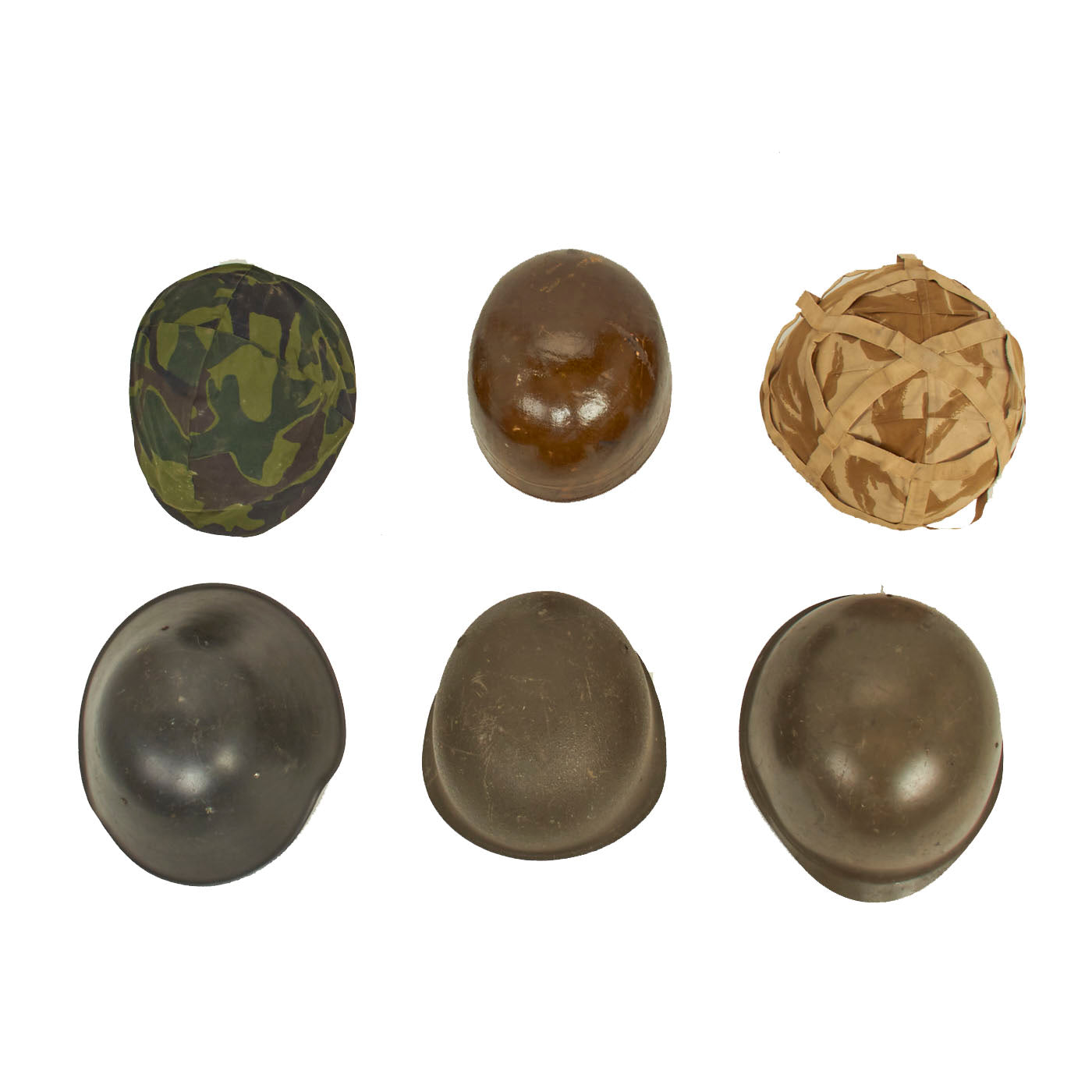 Original Items: Only One Lot of 6 Available. This is a very nice collection of helmets from various time periods and countries. All helmets are complete with liners and are offered in great condition. This is a wonderful lot to pick up if you are looking to either start collecting helmets or are just wanting to add these really nice examples to your already existing ones.