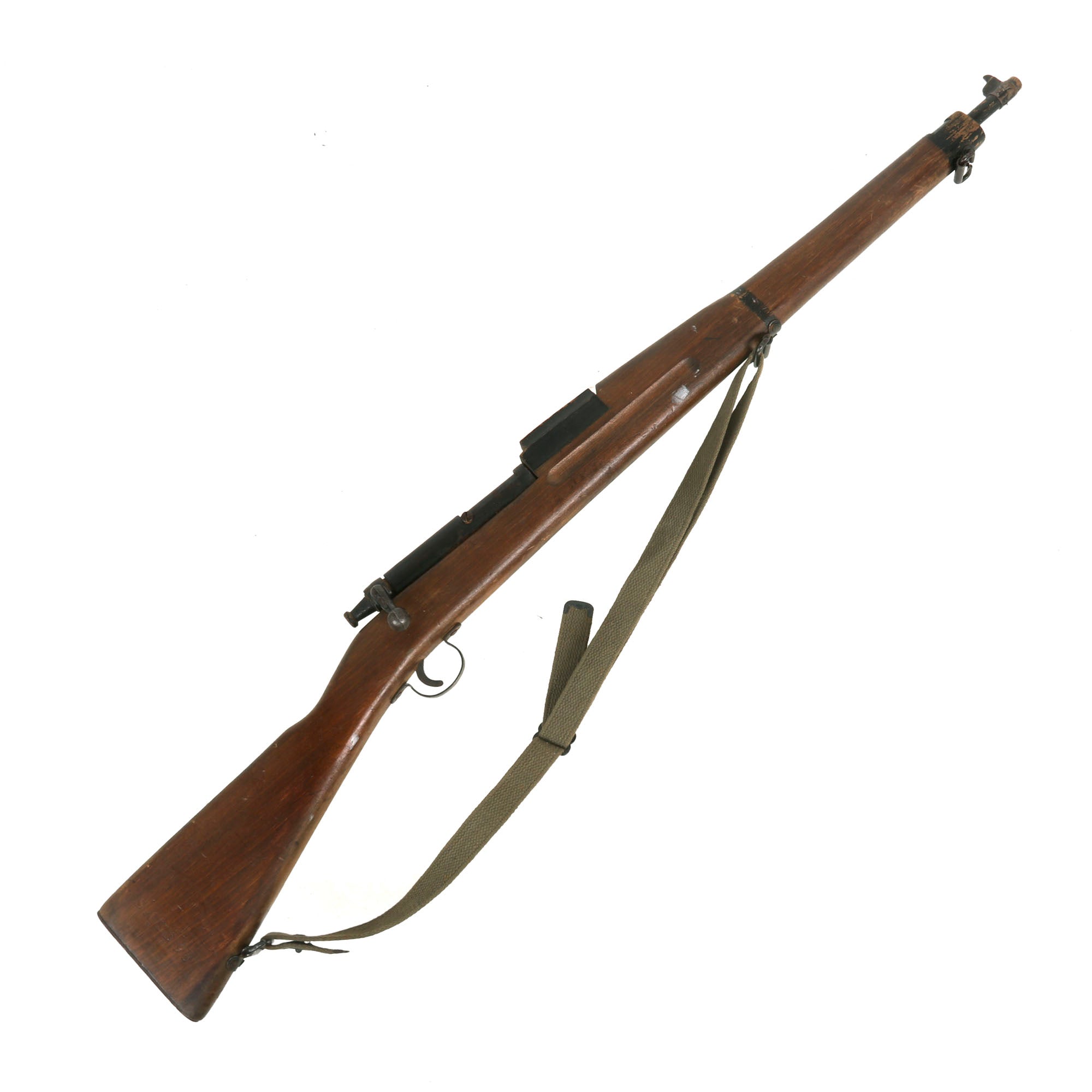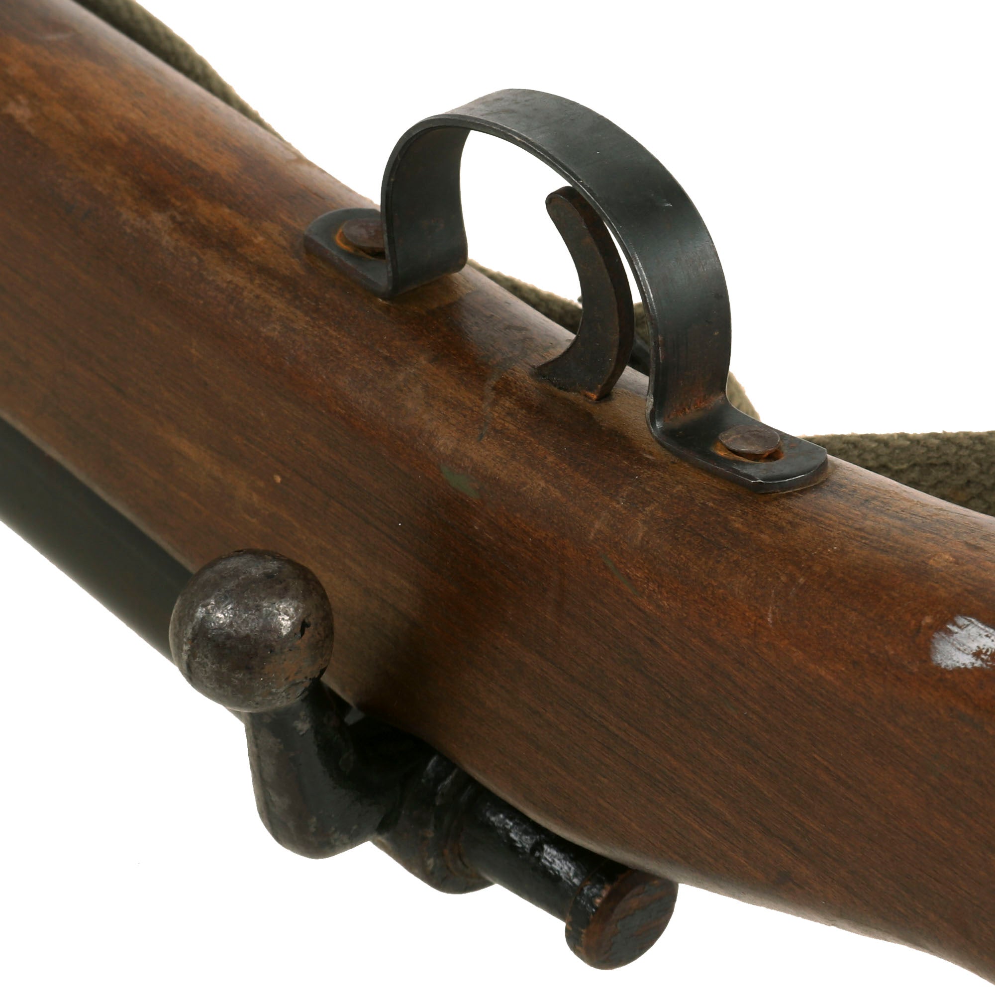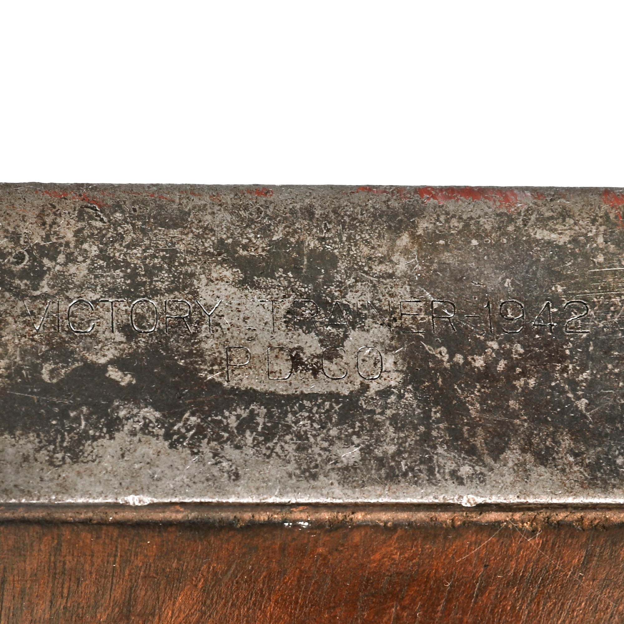 Original Item: Only One Available. This is a great example of a US Army WWII Victory Training Rifle. Condition is very good, and all parts are present, including both sling swivels and the stacking swivel. The finish on the wood is good, though there is the expected wear from age and storage, as well as some paint contact marks. The metal components have some rust and paint bubbling on them due to age.