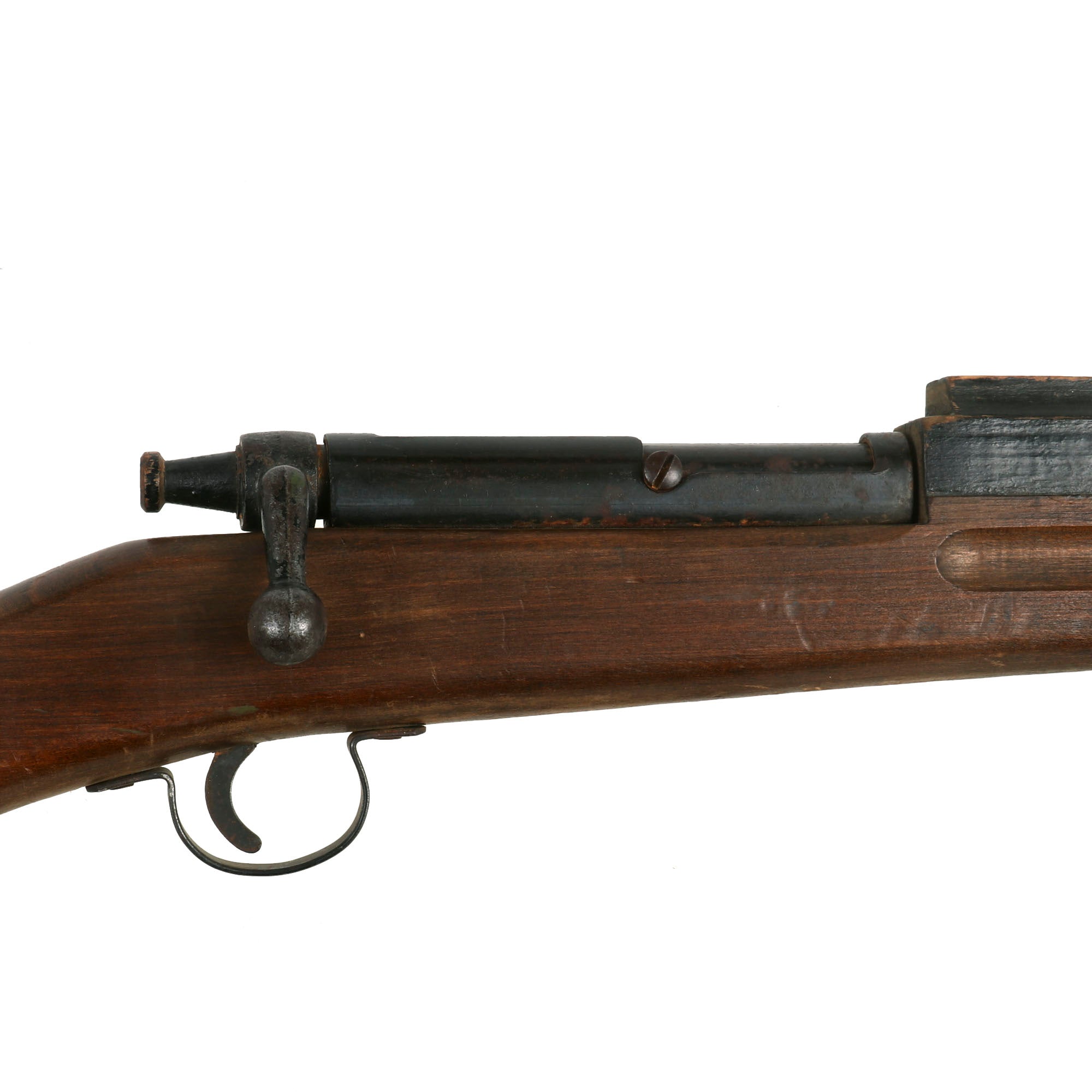 The Parris-Dunn Training Rifle is not a very accurate replica of the 1903 Springfield Rifle. It has a similar profile but is thinner in cross section and 3 pounds lighter in weight. The receiver, bolt and trigger mechanism are simple and crude by comparison to the Springfield. It has the general feel and appearance of a toy. It was reported that these training rifles were not very popular with soldiers and sailors that were required to use them during basic training. It must be noted that there were no other alternatives available at the time.
