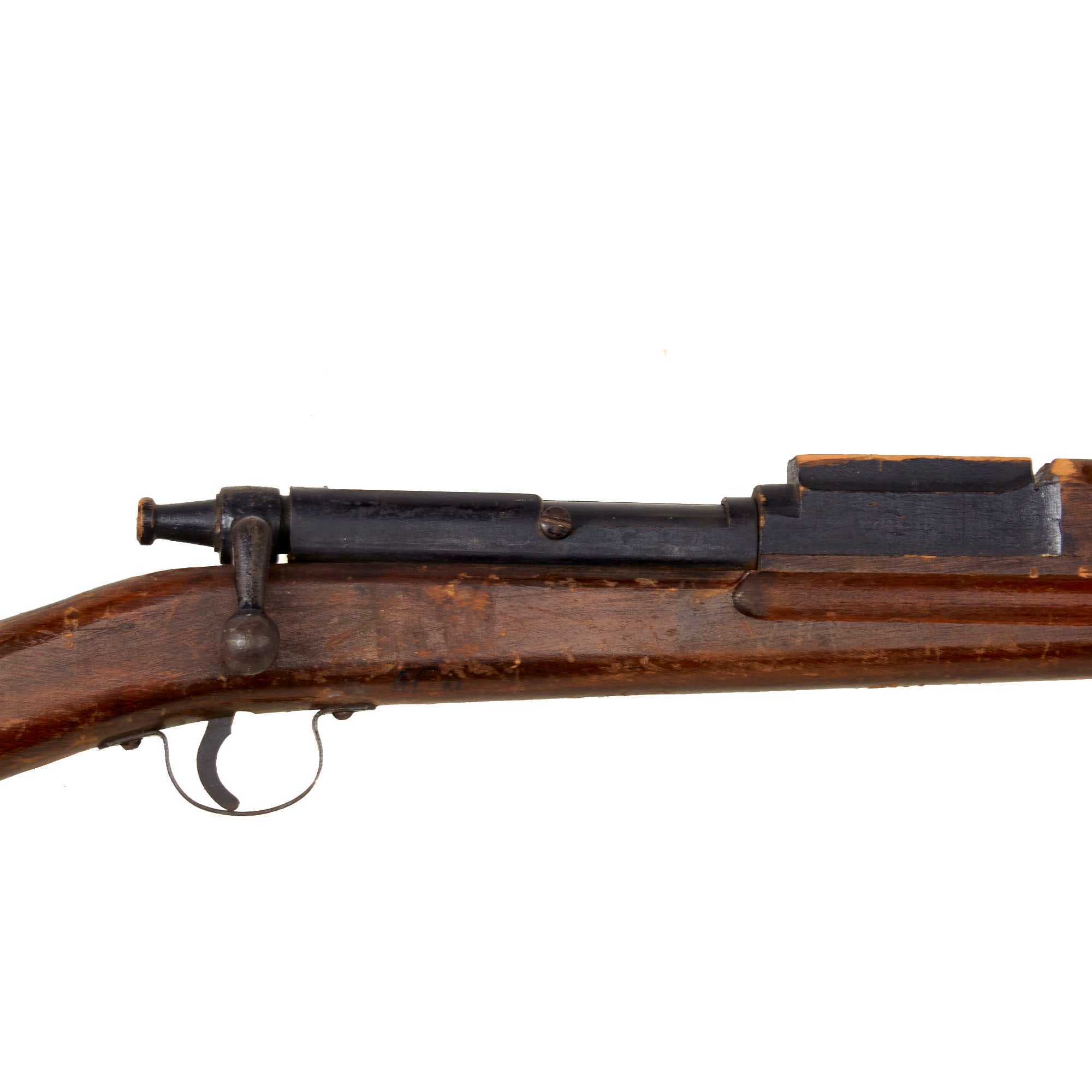 The Parris-Dunn Training Rifle is not a very accurate replica of the 1903 Springfield Rifle. It has a similar profile but is thinner in cross section and 3 pounds lighter in weight. The receiver, bolt and trigger mechanism are simple and crude by comparison to the Springfield. It has the general feel and appearance of a toy. It was reported that these training rifles were not very popular with soldiers and sailors that were required to use them during basic training. It must be noted that there were no other alternatives available at the time.