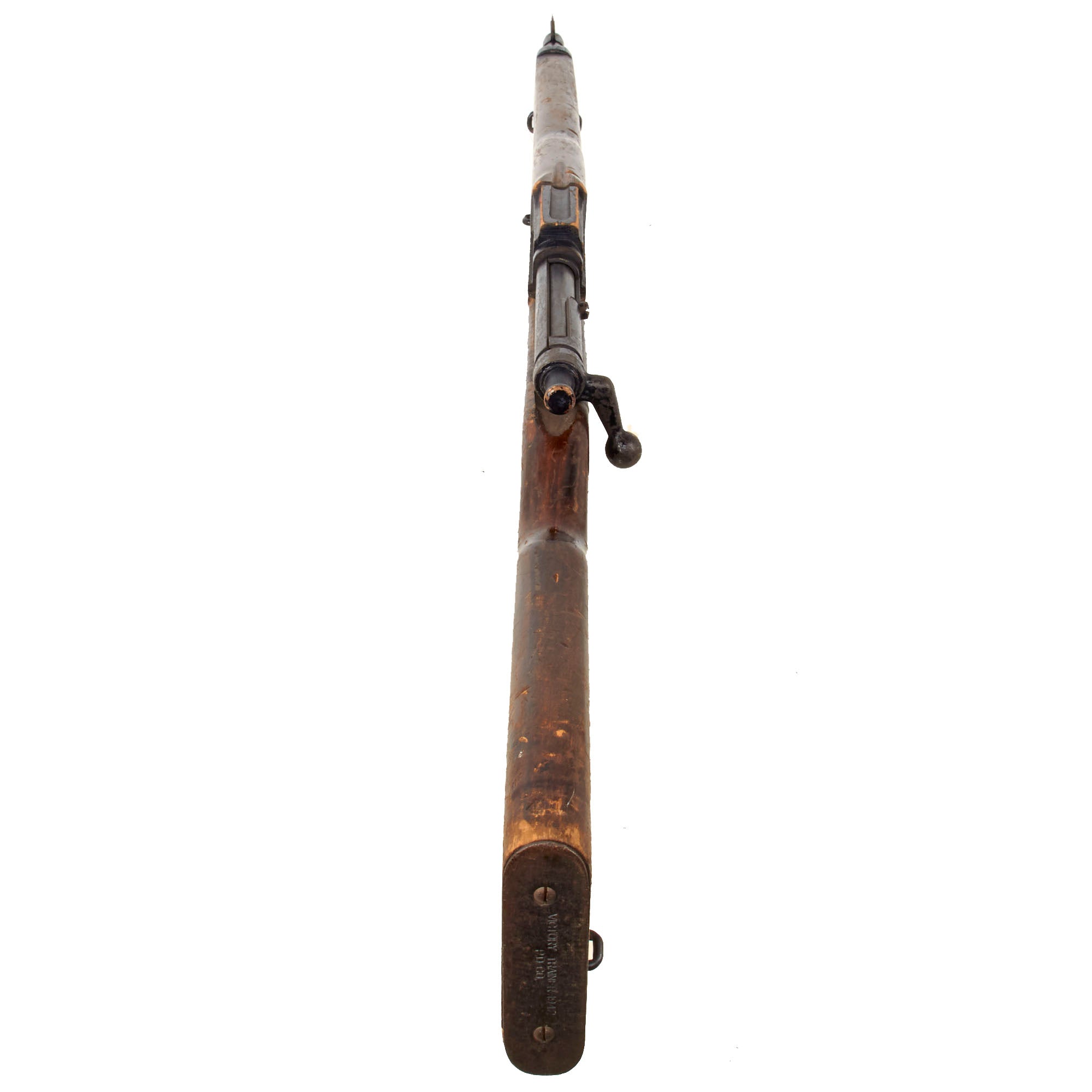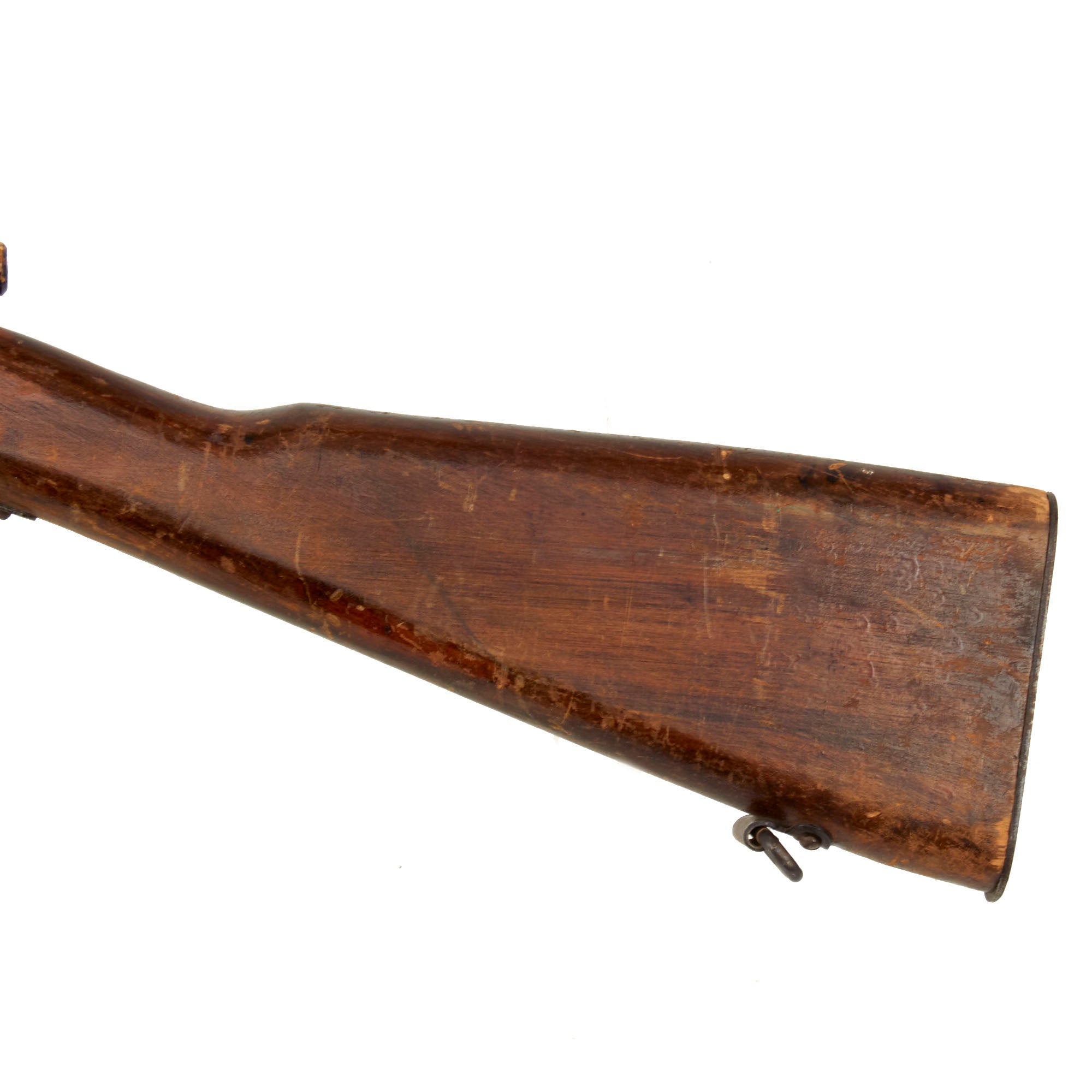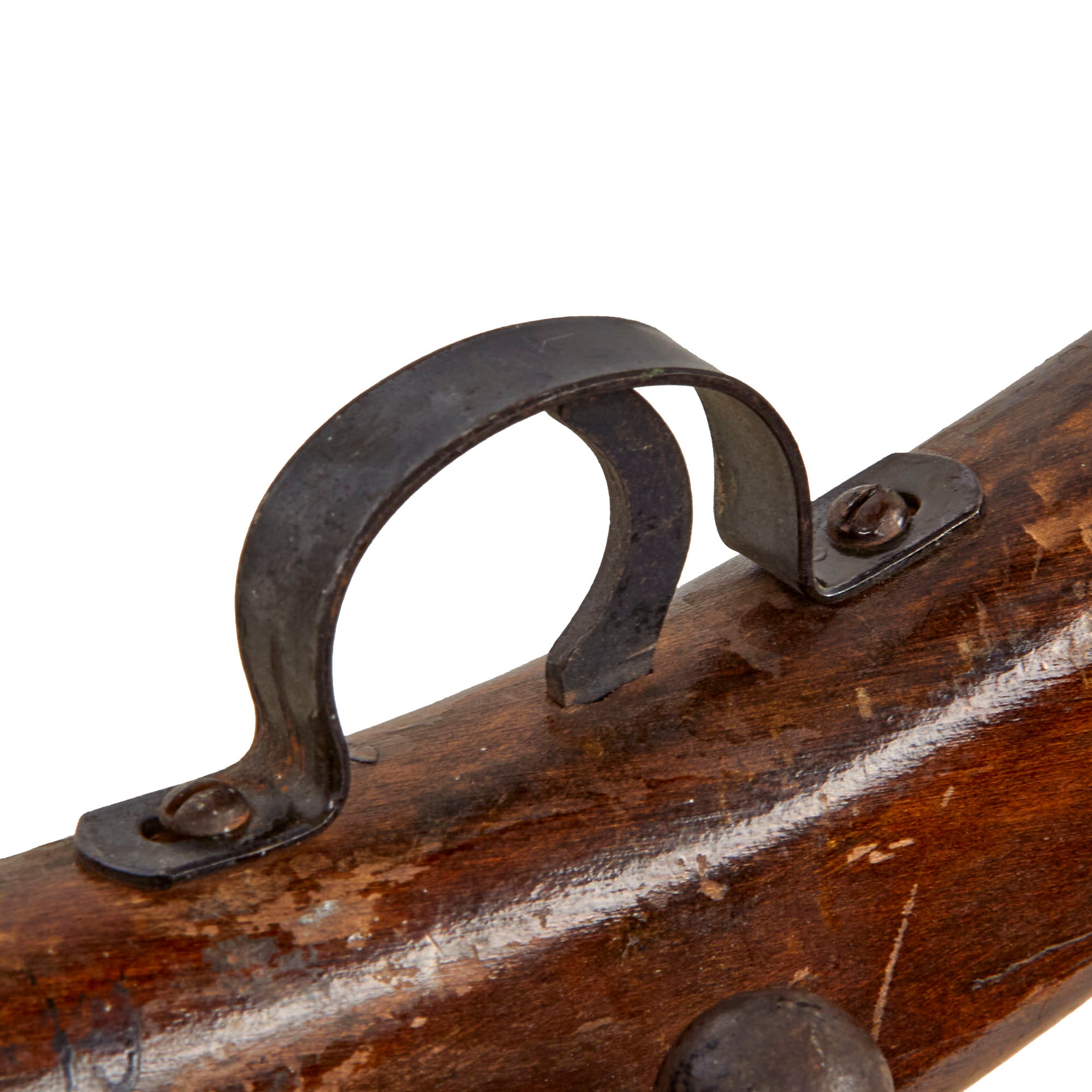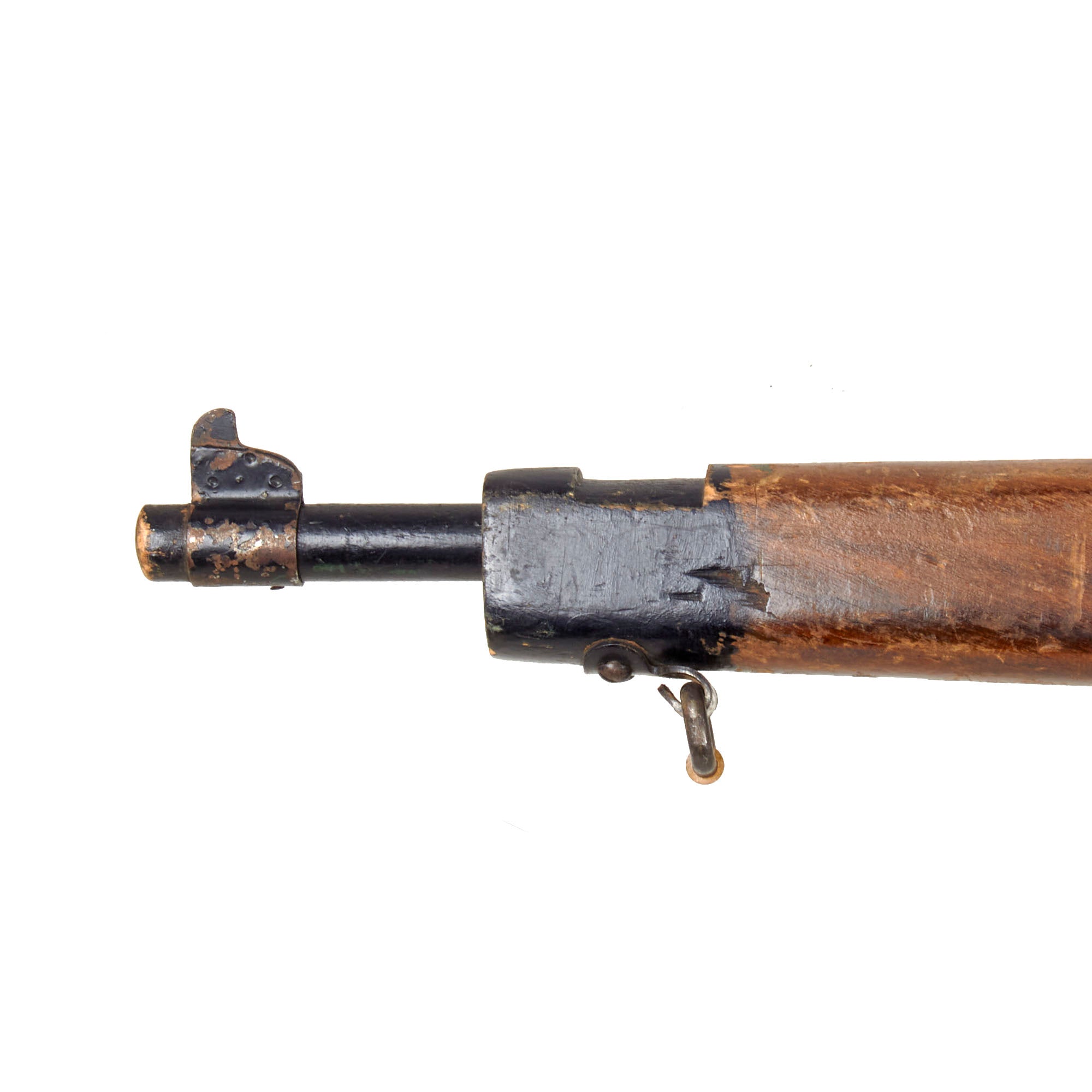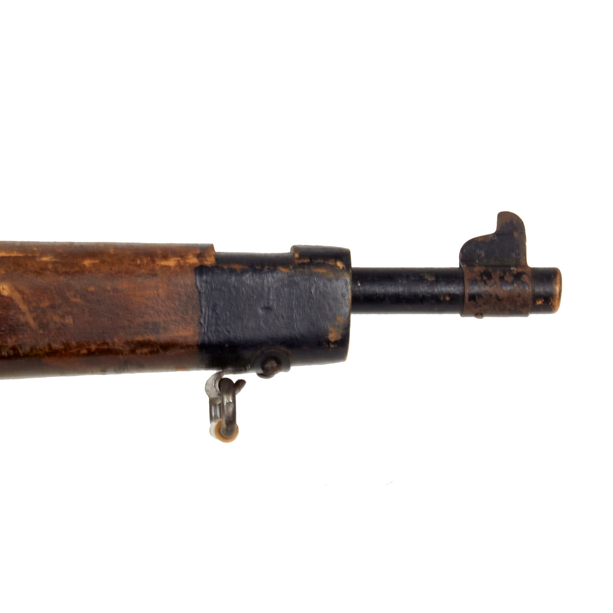 Original Item: Only One Available. This is a good service-worn example of WWII production. This is an example in nice, heavily scuffed condition. Condition is very good, and all parts are present, including both sling swivels and the stacking swivel. The finish on the wood is good, though there is the expected wear from age and storage, as well as some paint contact marks. The metal components have some rust and paint bubbling on them due to age.