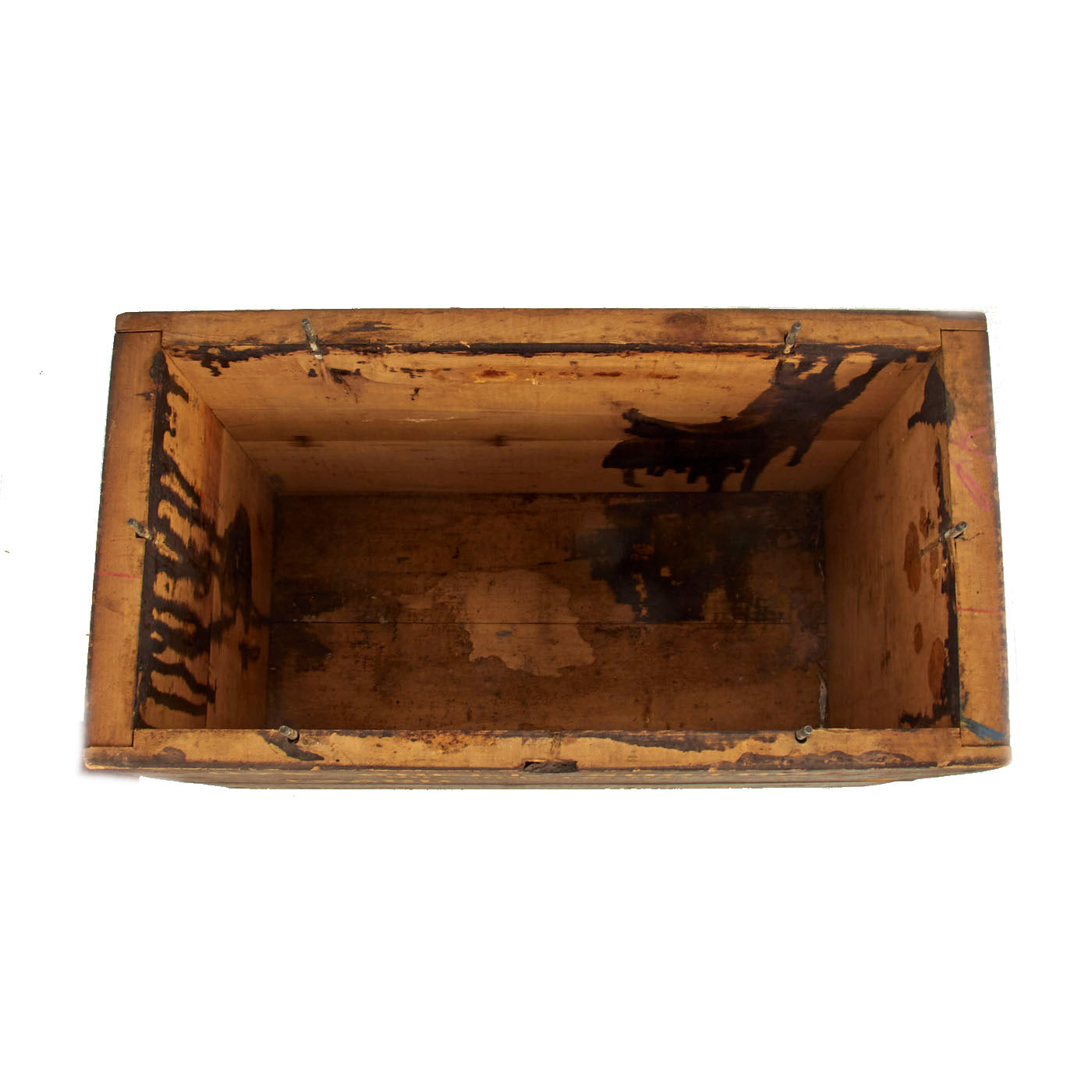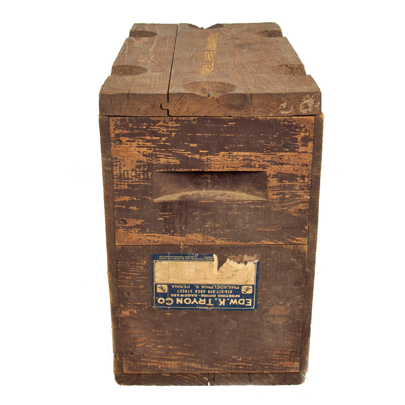 Original Item: Only One Available. The M1917 Ammunition Packing Box was a wooden box designed to be reused. The lid was secured by tightening brass wingnuts over threaded metal posts in the walls of the chest. They were meant to be carried by means of handles milled into the ends of the chest; troops assigned to carry ammo found them hard to grasp. Ammunition was shipped in boxes with a hermetically-sealed terneplate lining that had the top soldered on to seal it; this was ripped open using a wire handle built into the top. It came in two standard sizes.