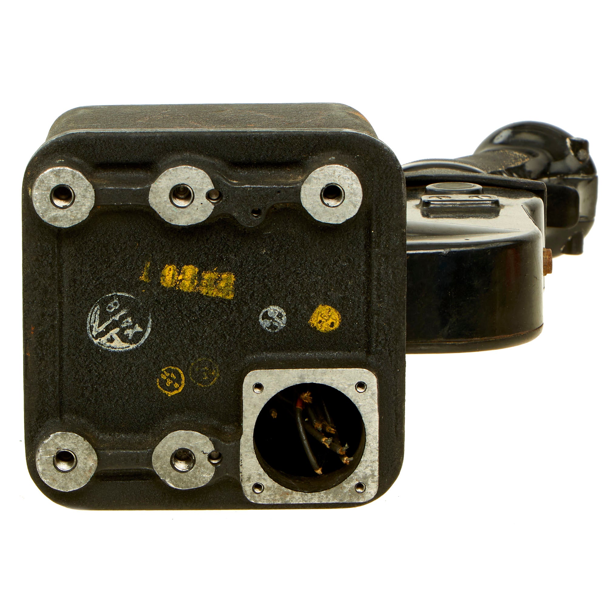 This formation stick was manufactured by the original manufacturer and still has its original data plate that reads Minnesota Honeywell Regulator Co. The mechanical components all function properly and look to be in good shape. We have not put electrical power to the unit since we do not know the specifications for input or output. It comes complete with the arm rest, mount stand and wiring which appears to never have been connected meaning that this example may be an unissued NOS example!