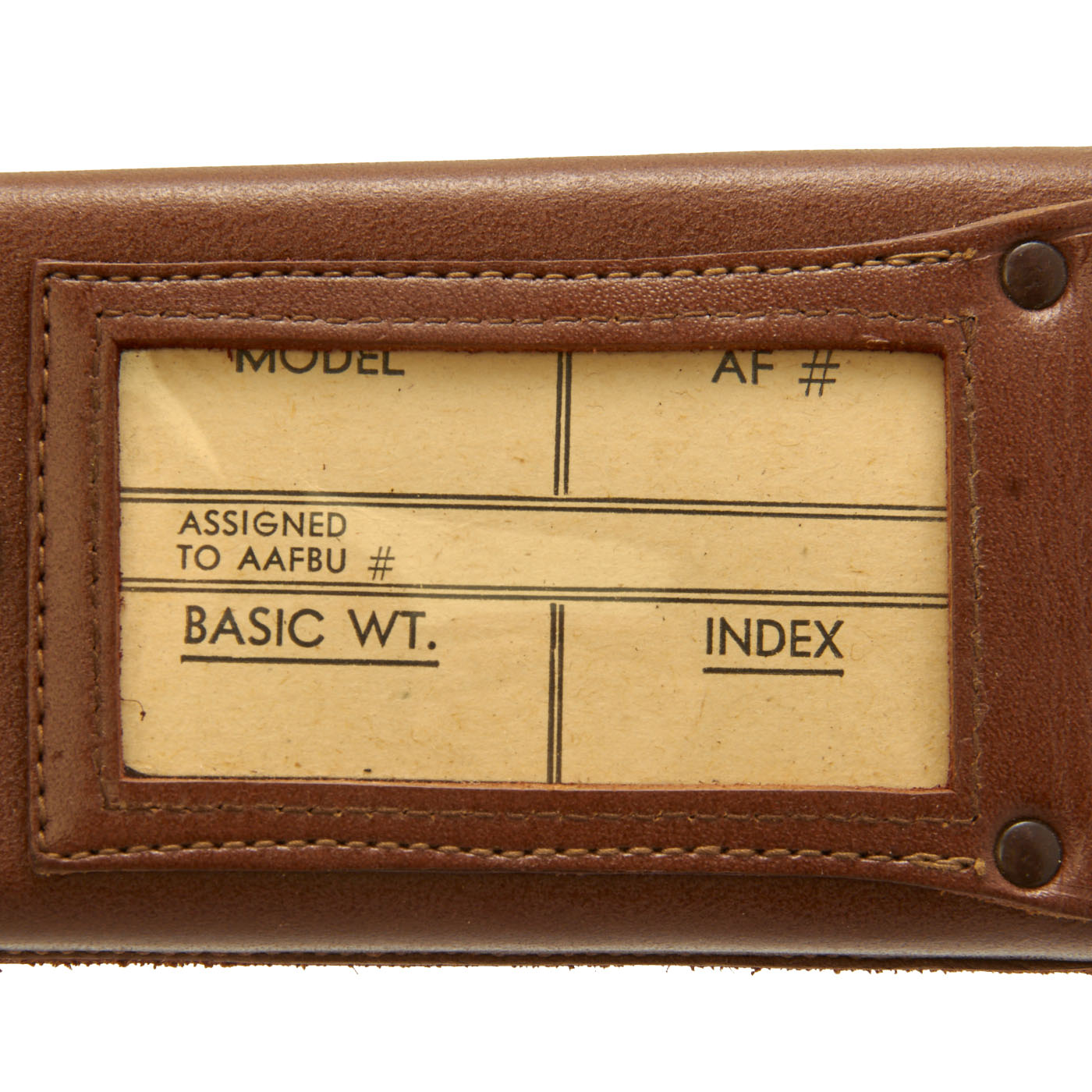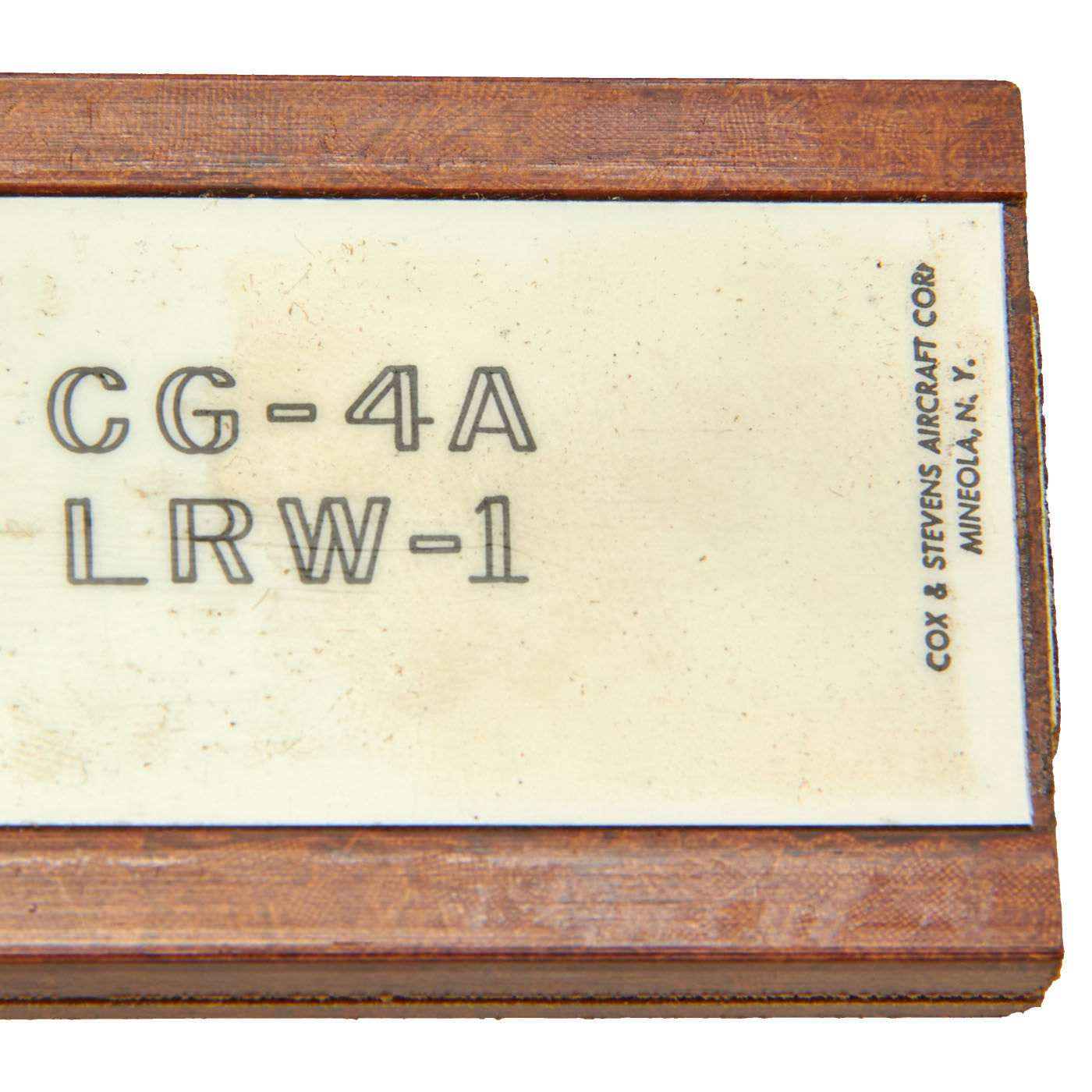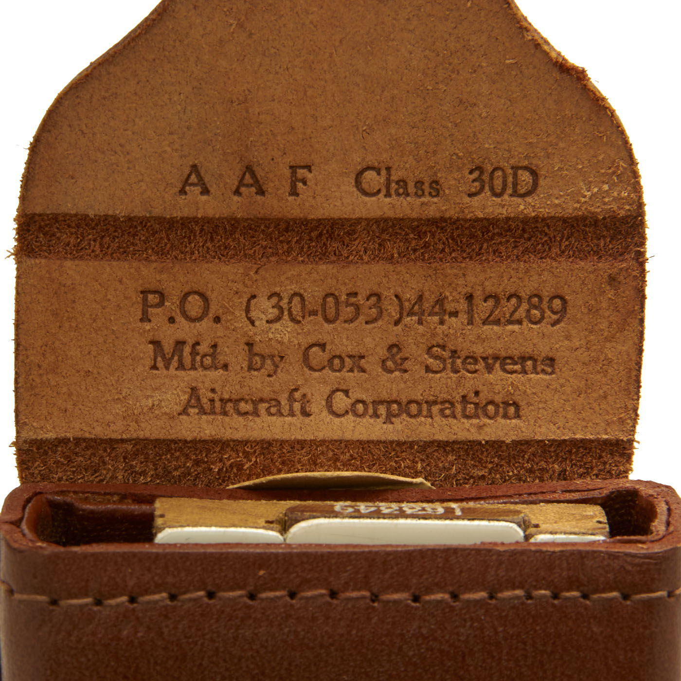 Original Item: Only One Available. Original U.S. Waco Glider (CG-4A) Load Adjuster with its original leather case. Made by Cox & Stevens Aircraft Corporation, of Mineola, New York. The case is marked with the designation for the Waco, CG-4A, along with the Navy/Marine Corps designation for the Waco, LRW-1.