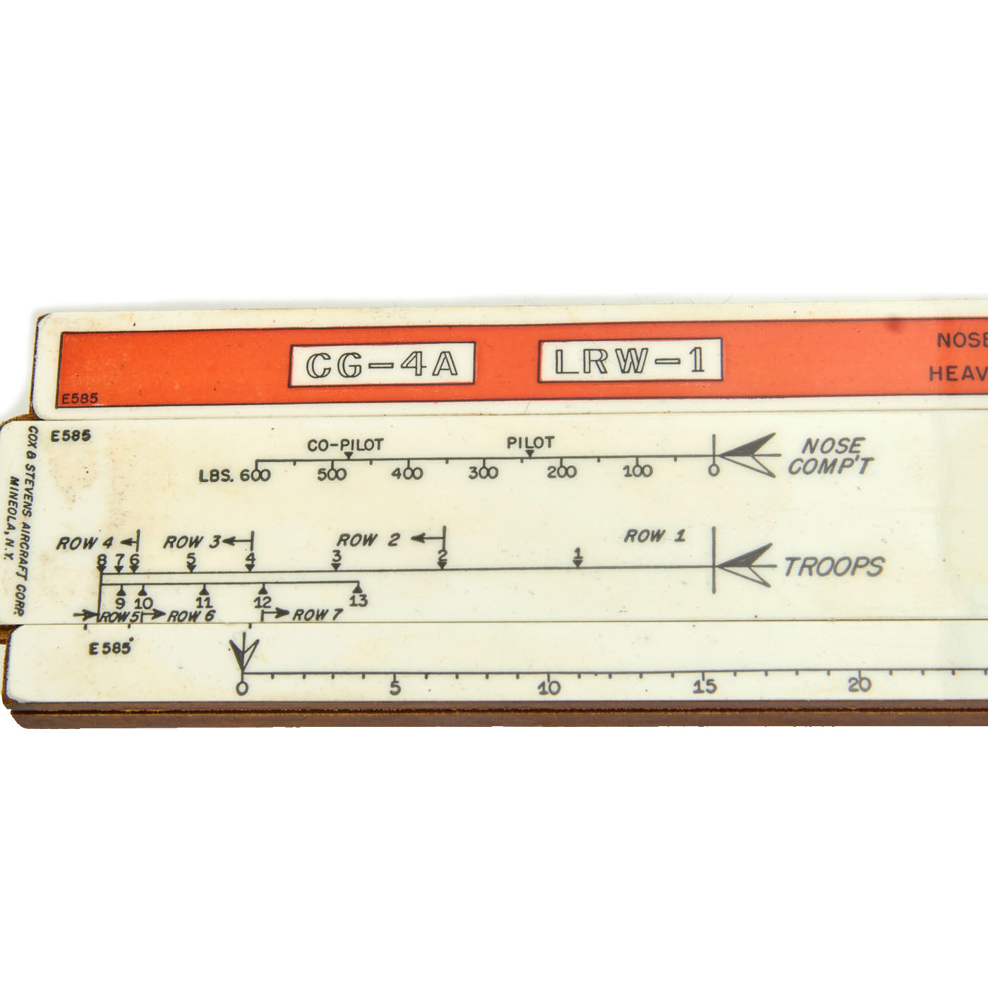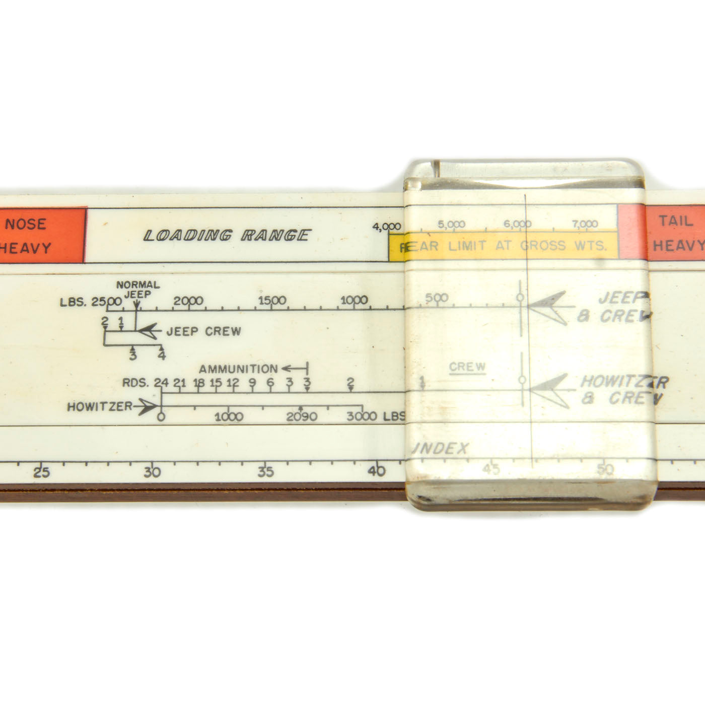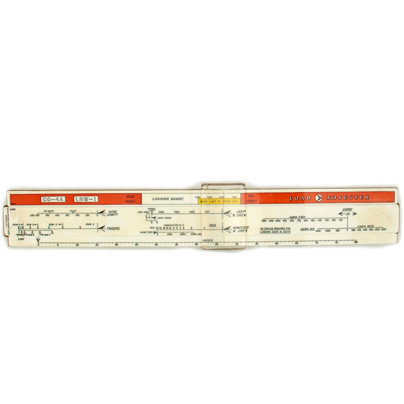 This looks similar to a conventional slide rule but was used to ensure the correct weight distribution throughout the airframe depending on the amount troops on board, whether a jeep or howitzer is included in the payload and so forth. Load Adjusters were crucial tools for pilots and loadmasters alike, especially for a glider.