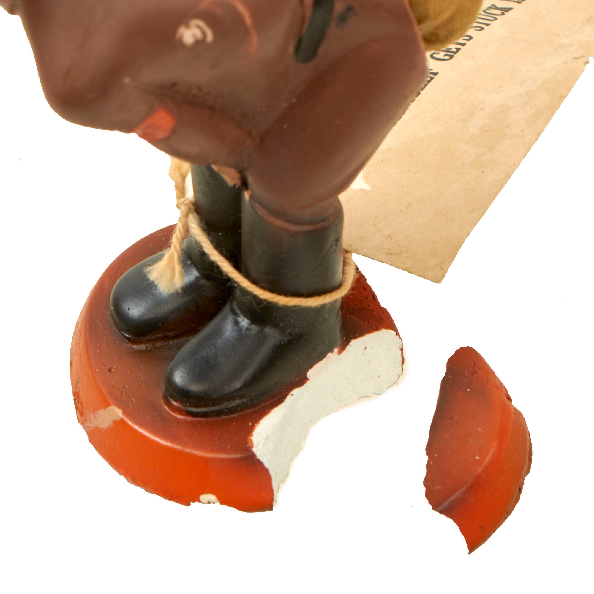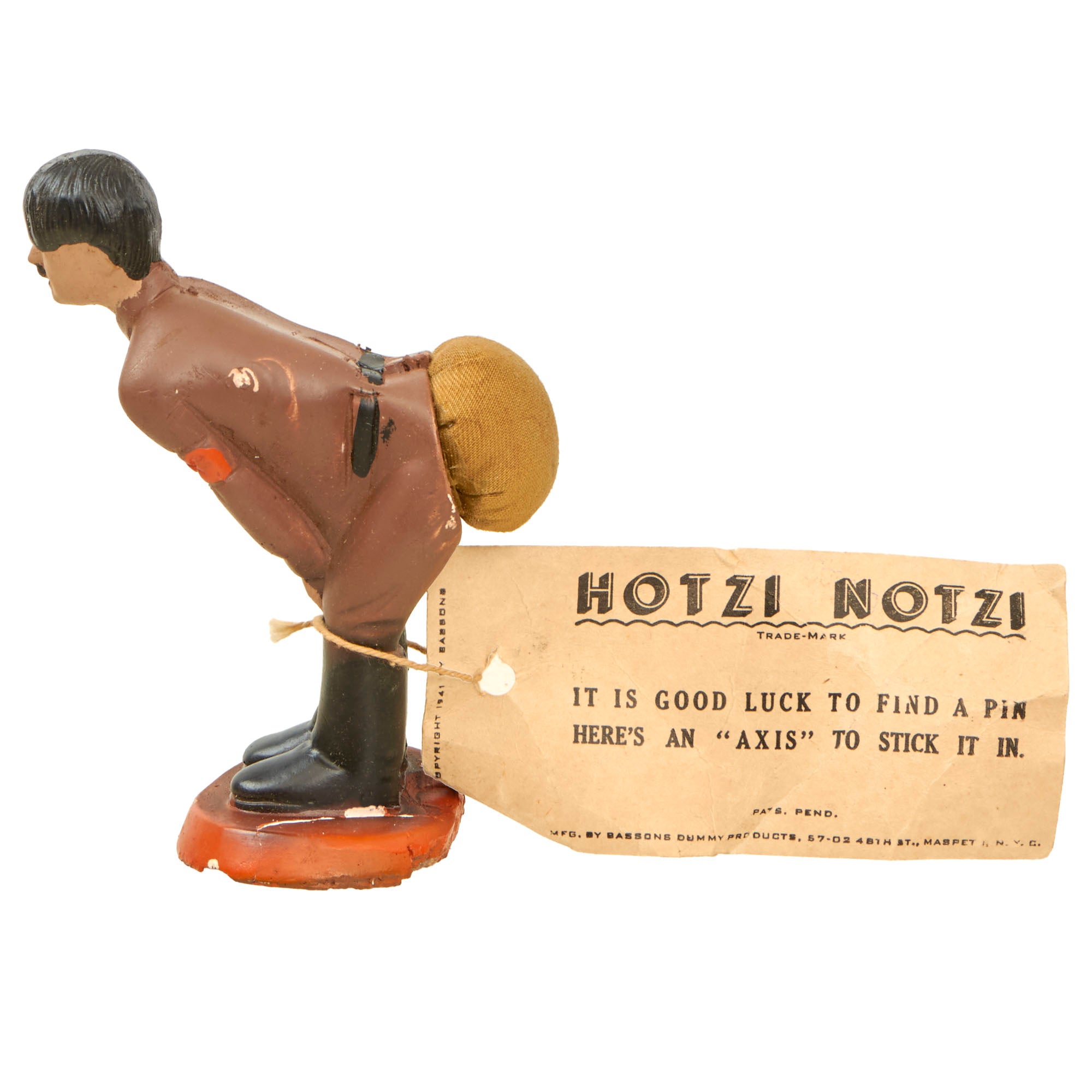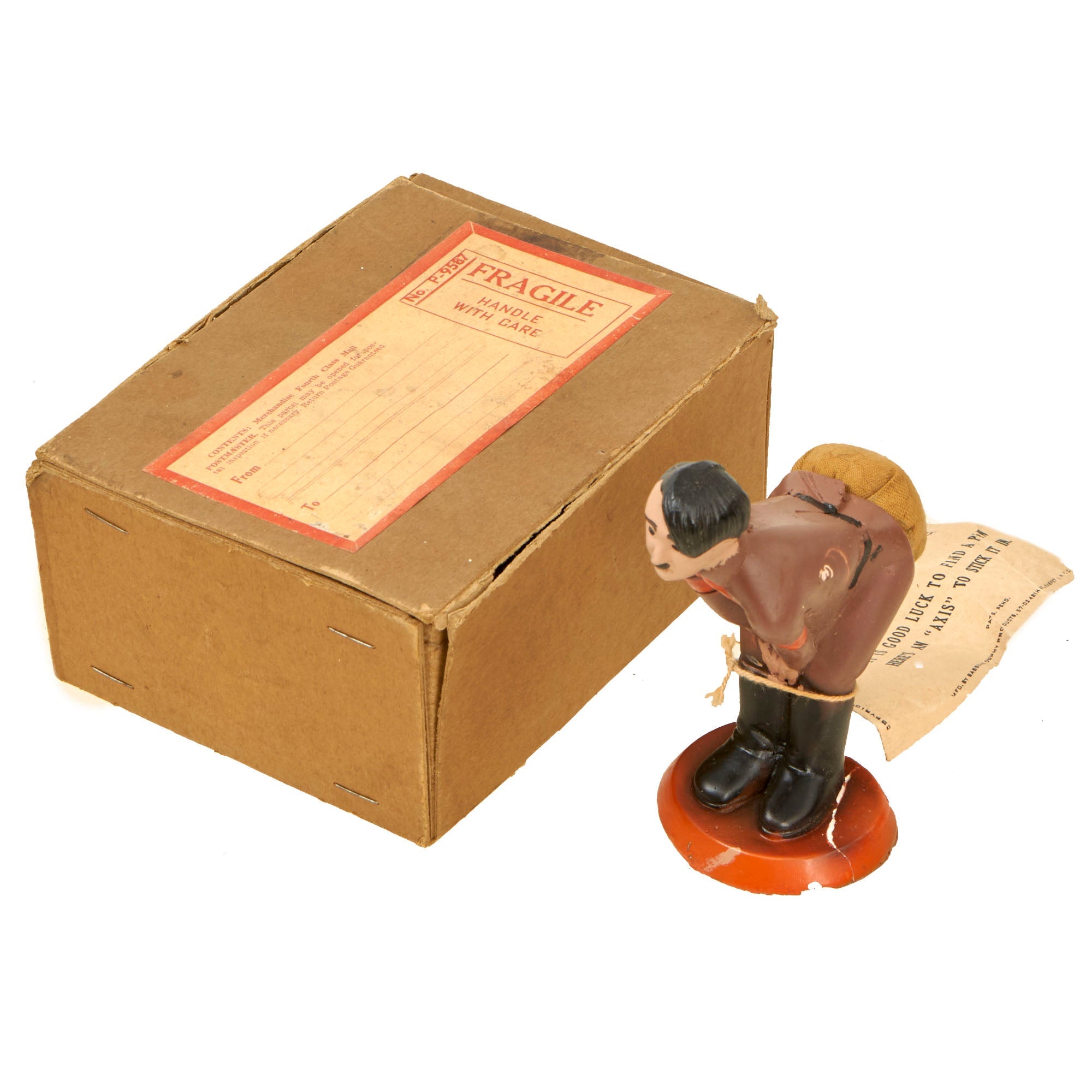 Original Item: Only One Available. Scarce WWII U.S. home front Anti Axis Pin Cushion. It is marked on the rear of the base with PAT. PEND 1941 CPE, indicating it was made under a patent filed during 1941. We have seen other examples indicating the patent was filed on November 17th, interestingly less than a month before America’s entry into World War Two. This item just goes to show the anti-German sentiment that existed before December 7th, 1941.