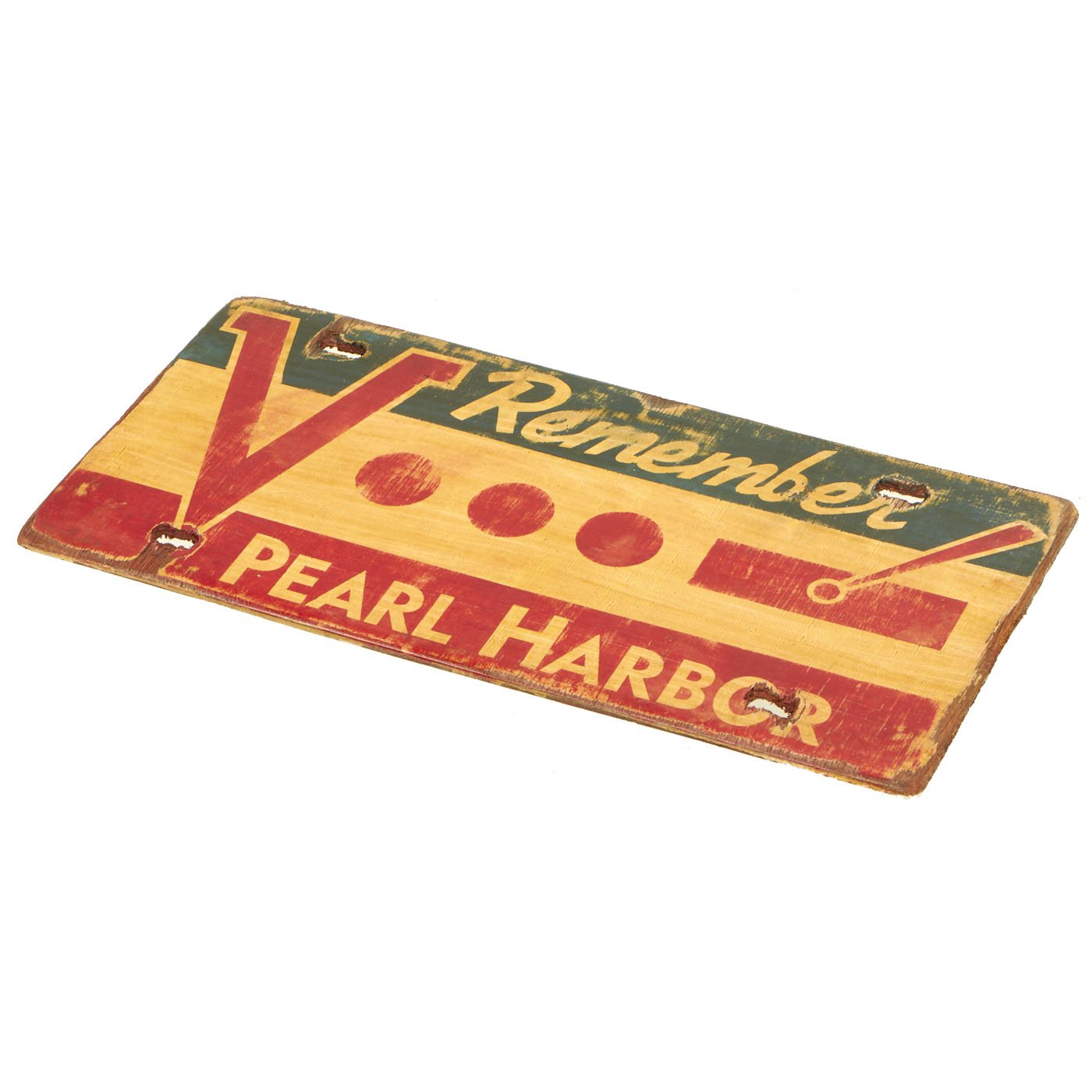 Original Item: Only One Available. An incredible wartime “Remember Pearl Harbor” License plate. Incredibly eye catching graphics, featuring a patriotic red/white/blue motif, and a “V …_”.