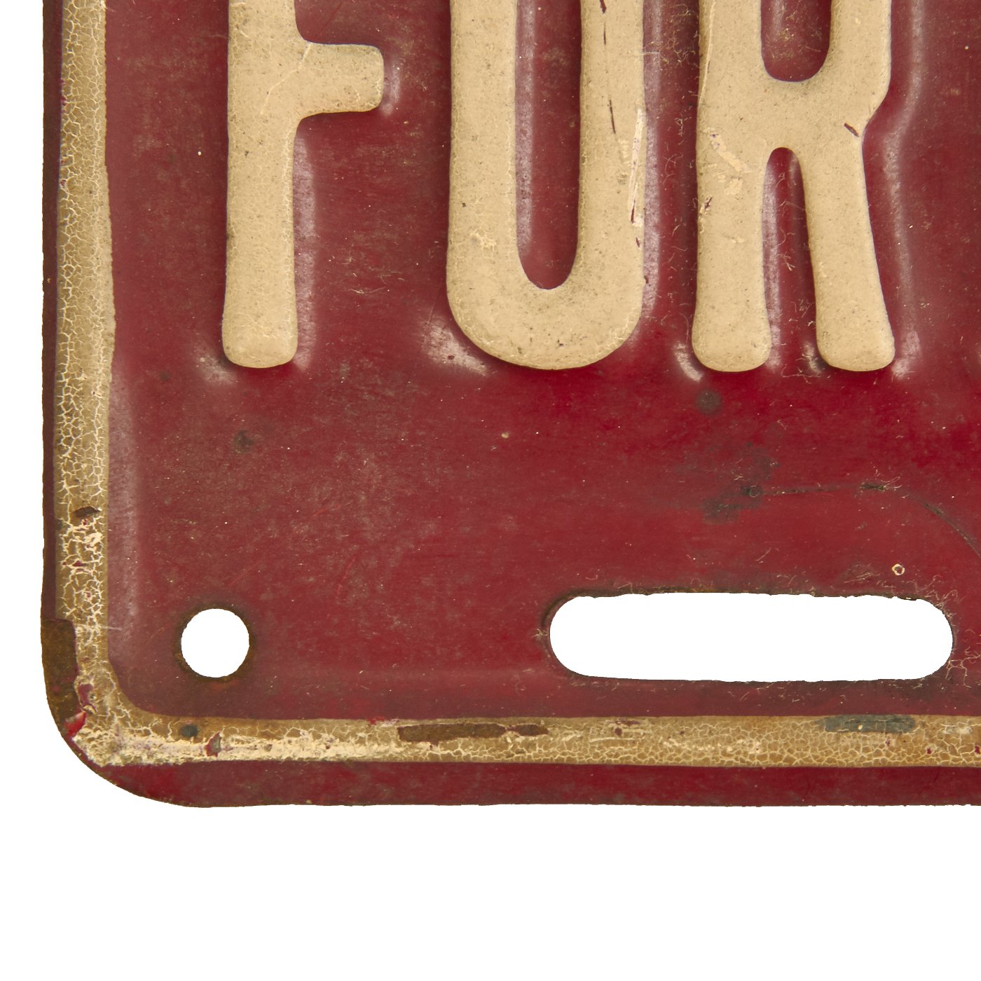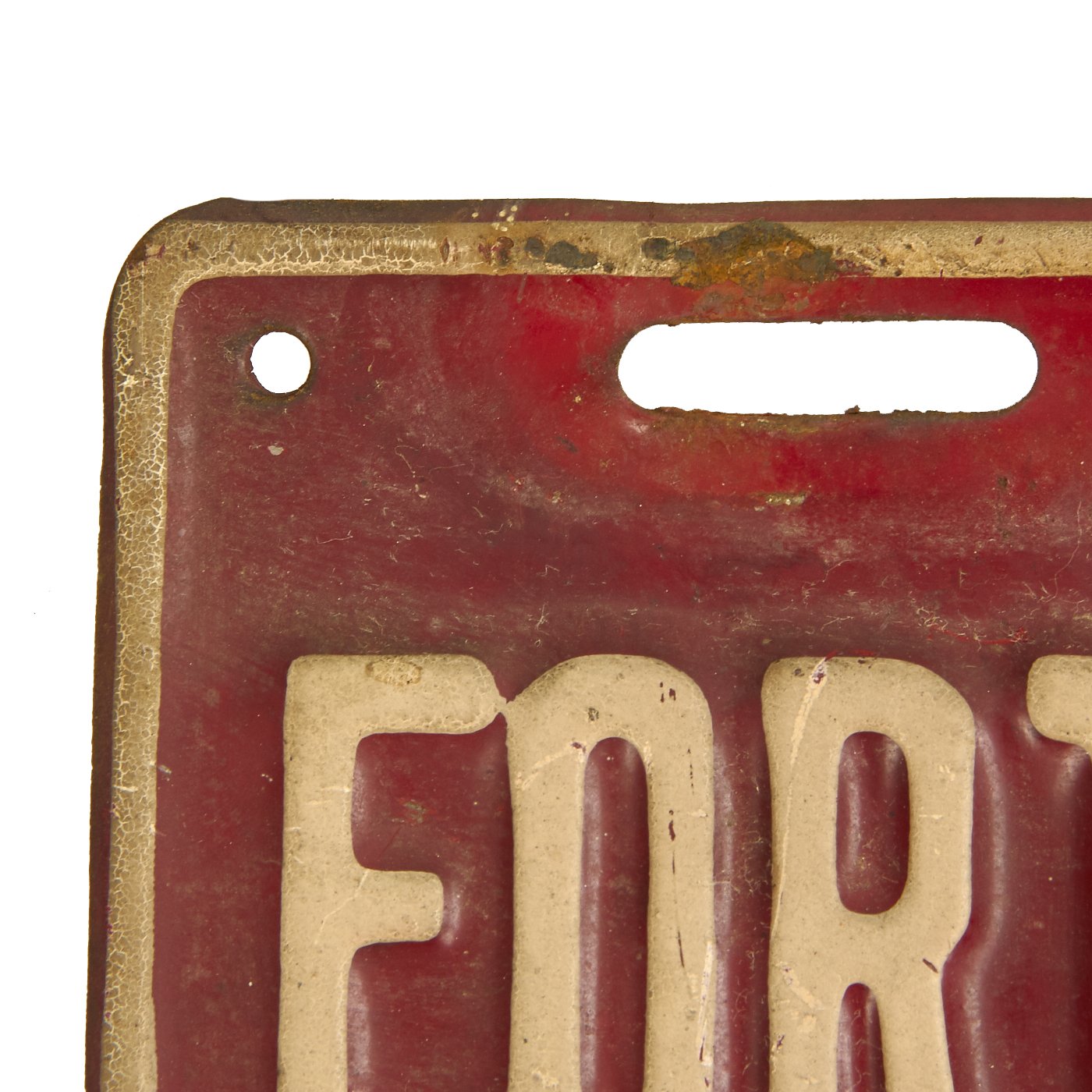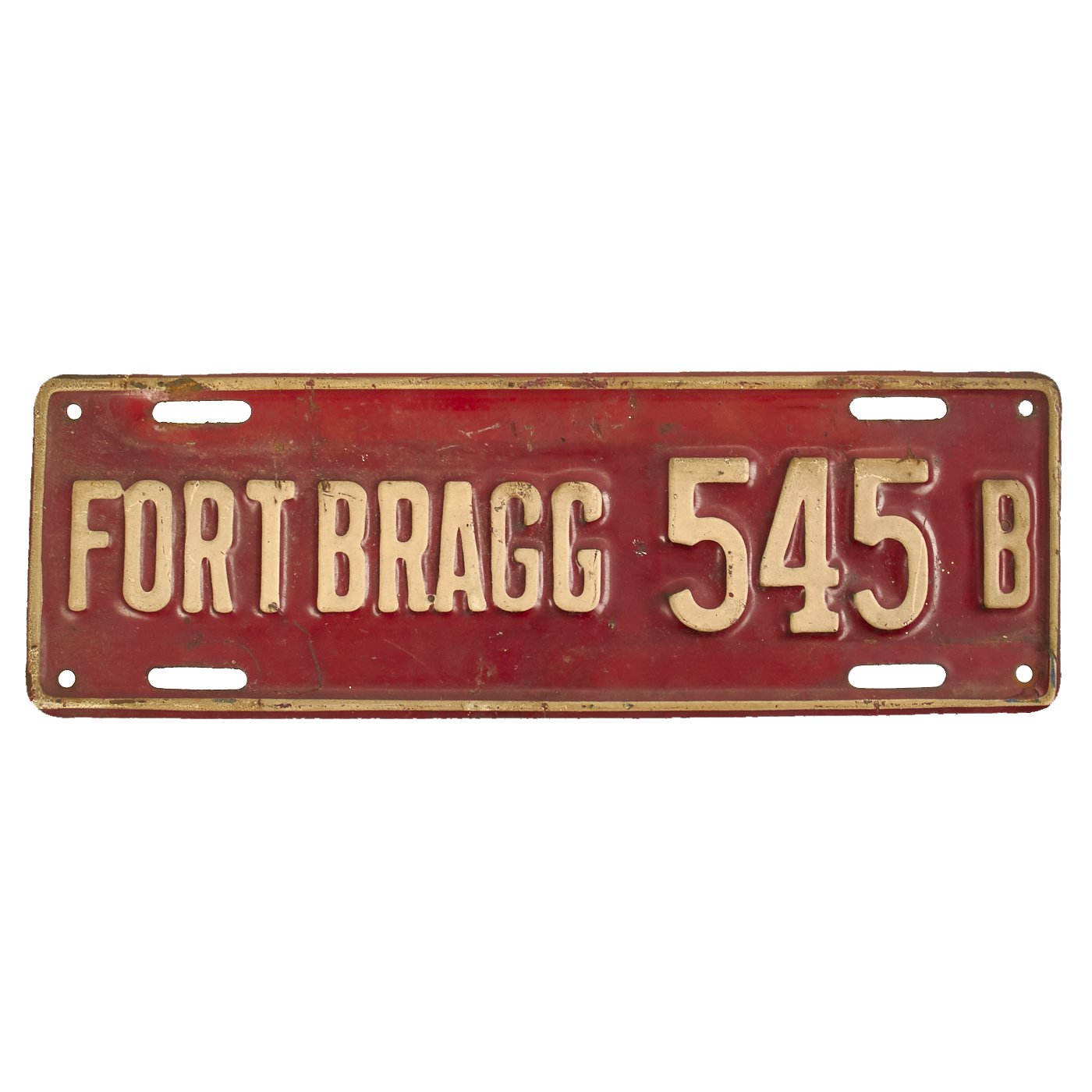 Original Item: One-of-a-kind. This is a genuine WWII Era license plate from the Fort Bragg U.S. Army Base, located in North Carolina. Originally established as "Camp Bragg" in 1918 as an artillery training ground, it was nearly closed in 1921. It was saved however, and renamed Fort Bragg in 1922, with permanent buildings added quickly. It then proceeded to become a major training center.
