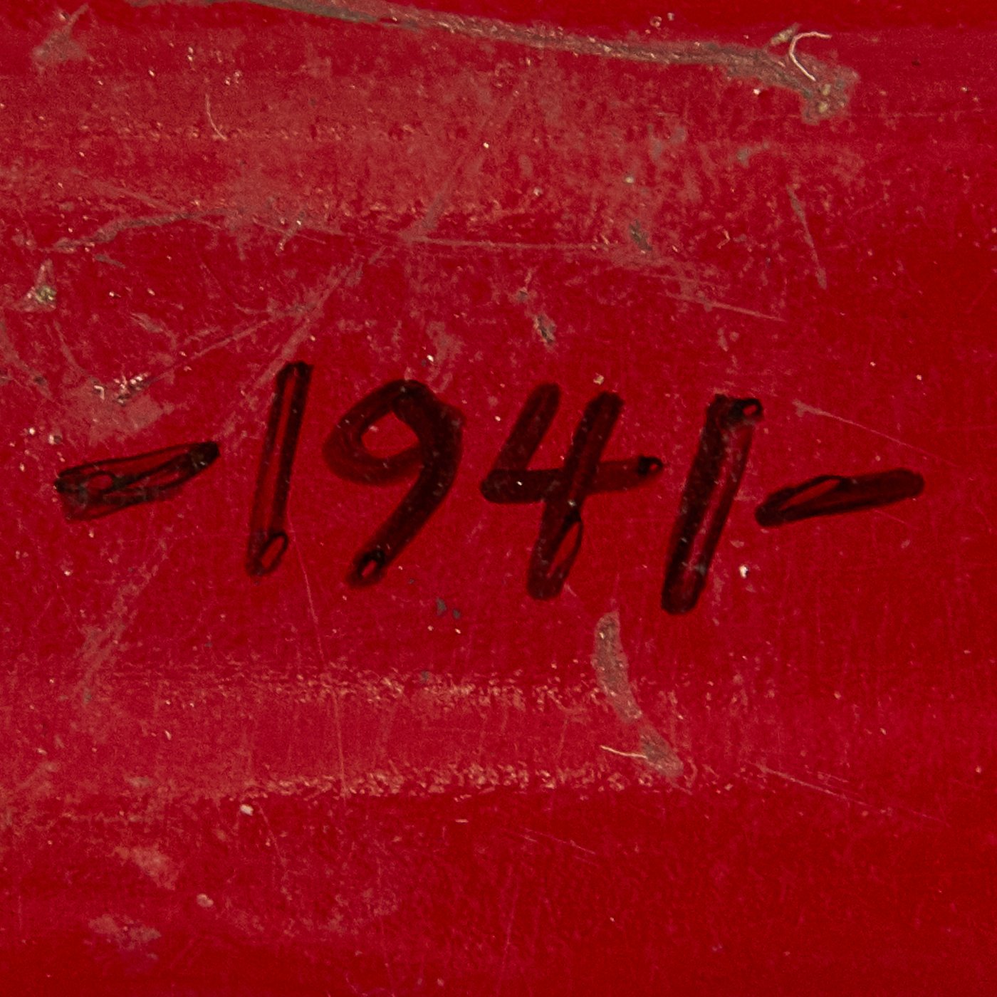 The rear of the plate has some additional information written on with marker, giving a date of - 1941 -, as well as what look to be information regarding when it was acquired.