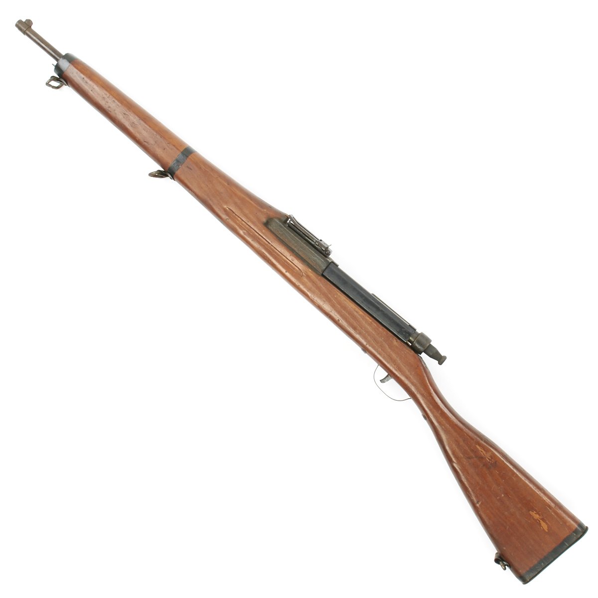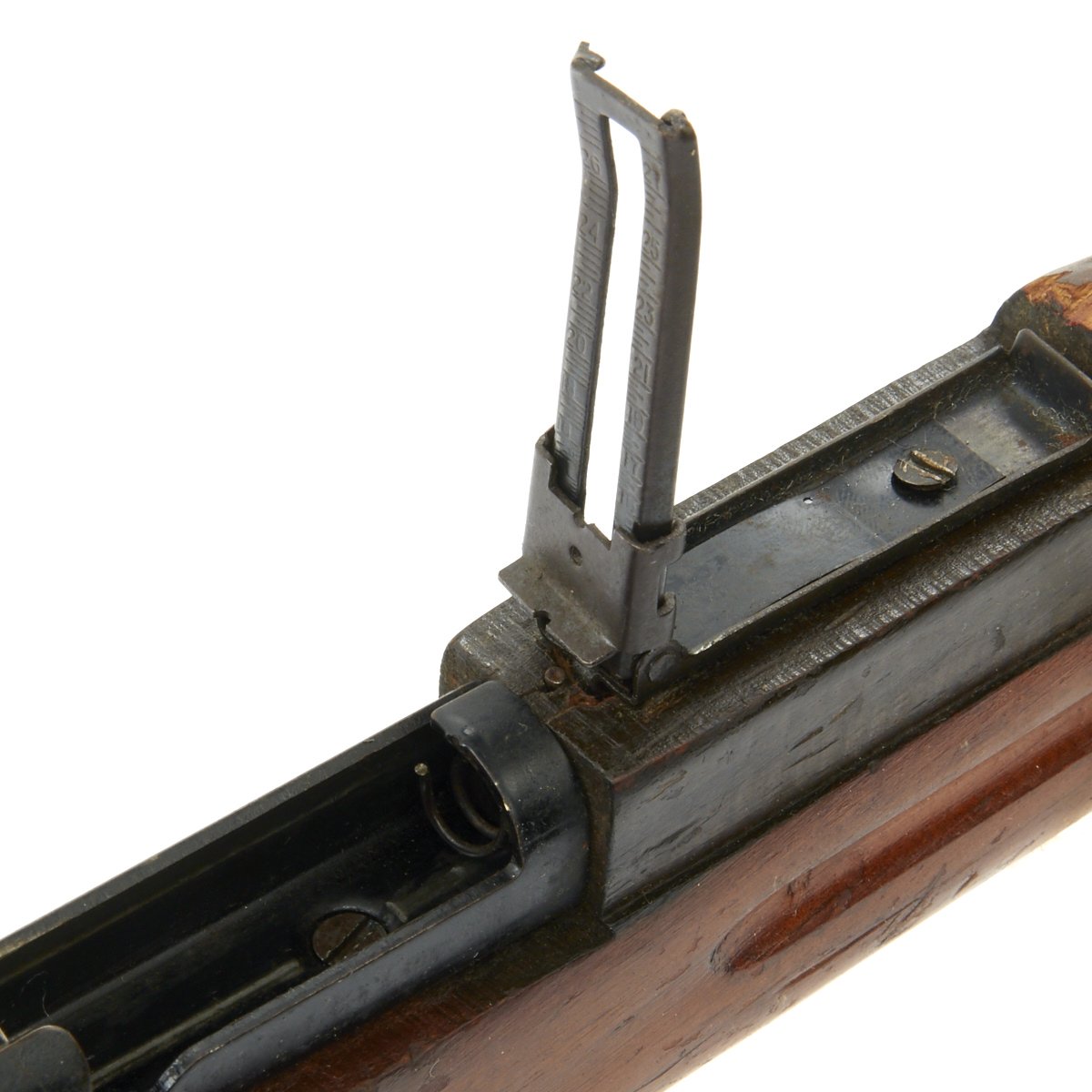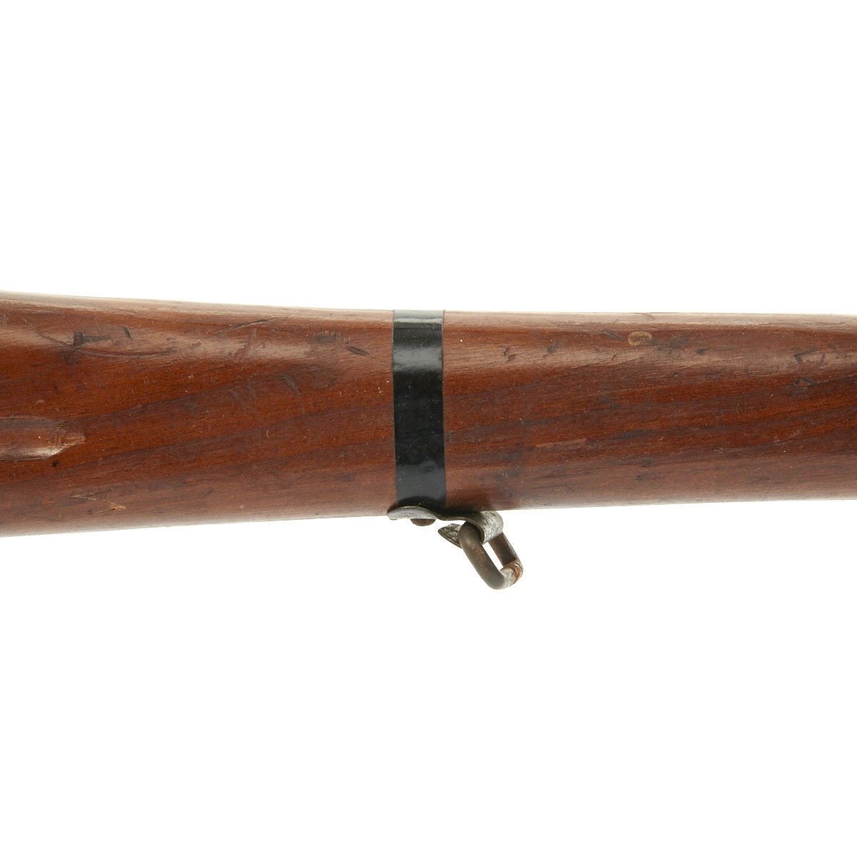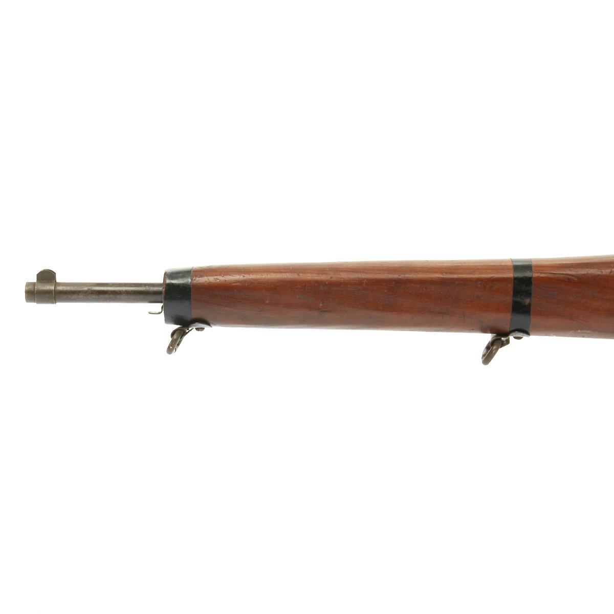 This is example is in excellent condition and retains its original paper lable on the stock. All parts are present, including both sling swivels and the stacking swivel. The finish on the wood is good, though there is the expected wear from age and storage. The metal components are very good and functional.
