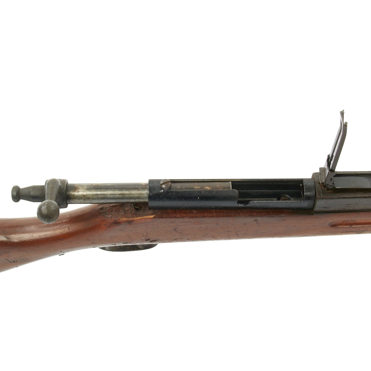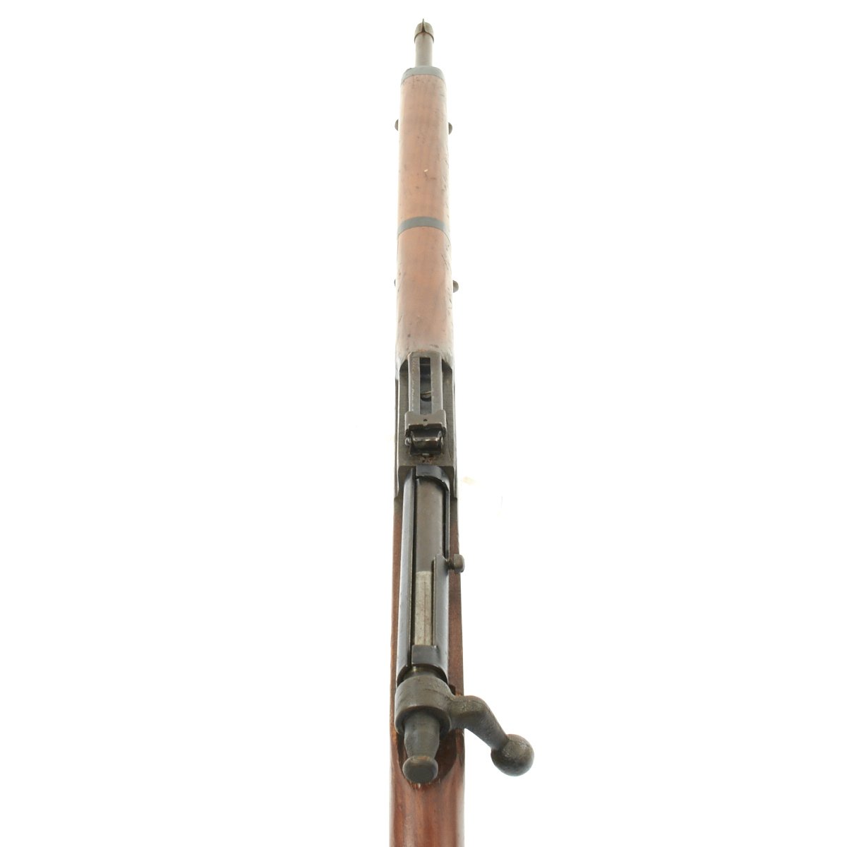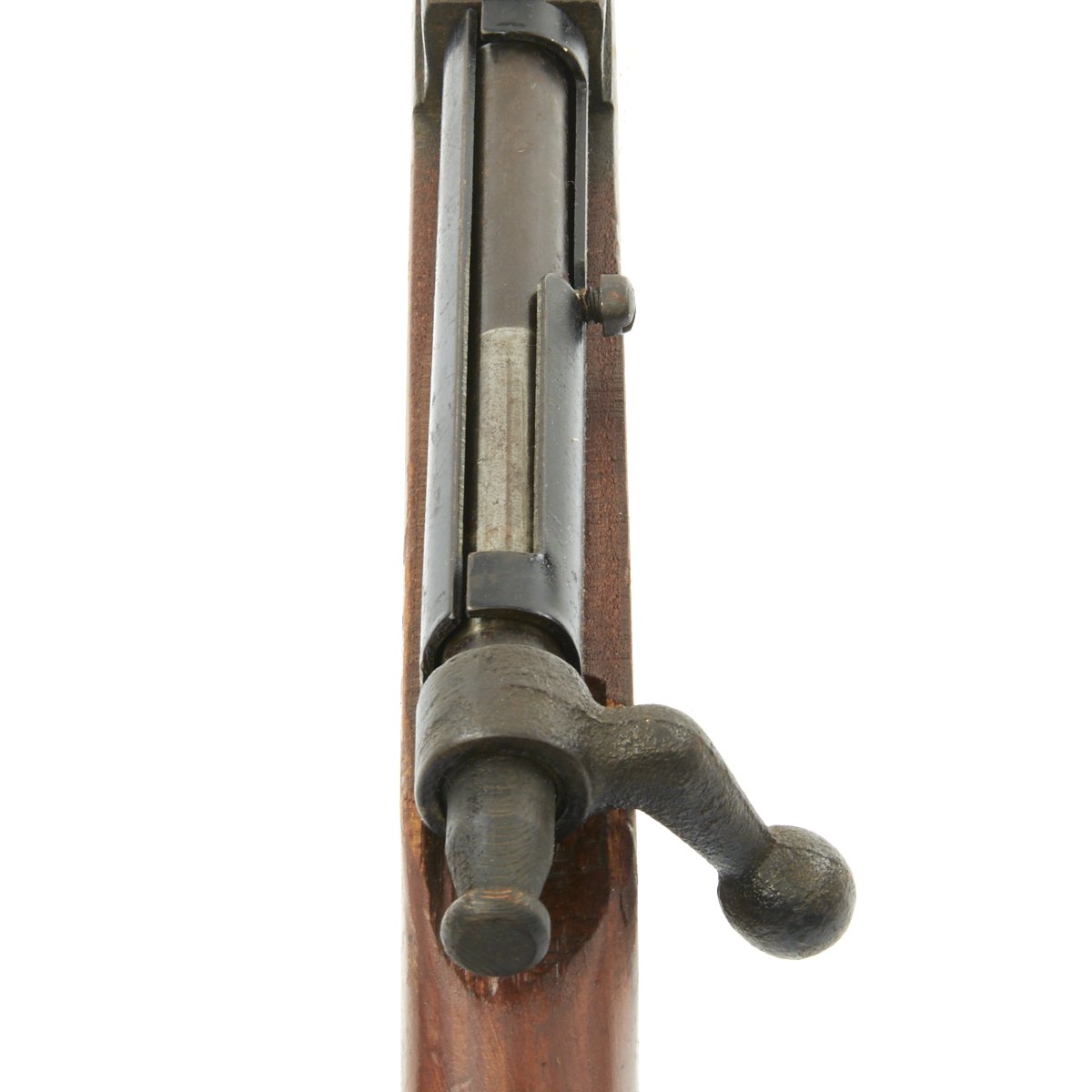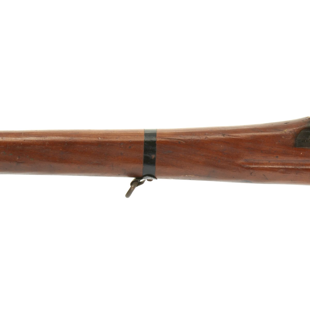 This is example is in excellent condition and retains its original paper lable on the stock. All parts are present, including both sling swivels and the stacking swivel. The finish on the wood is good, though there is the expected wear from age and storage. The metal components are very good and functional.