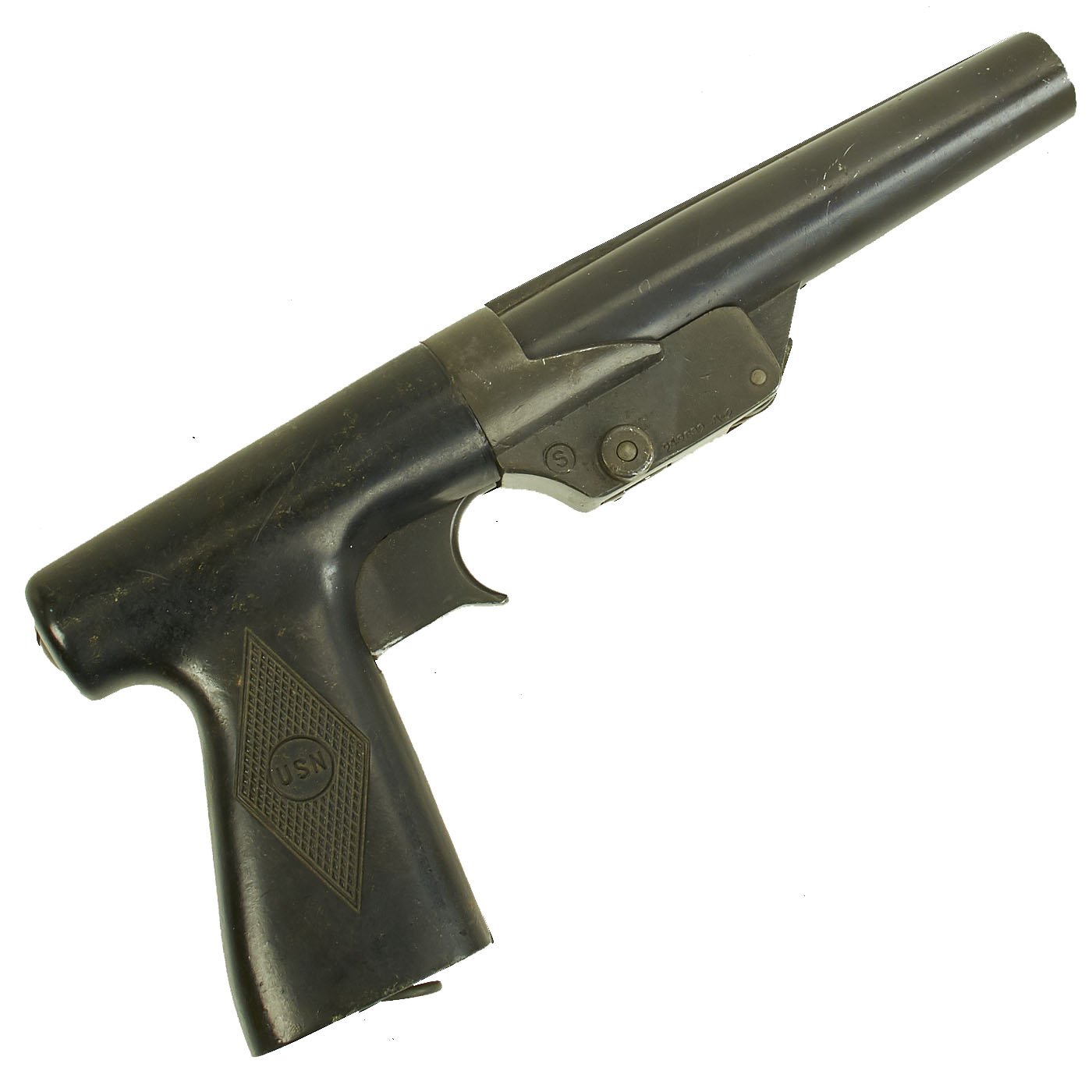 Original Item: Only One Available. This is an excellent example of a 22mm parachute flare Sedgley Signal Pistol, Mark 5, in lovely fully functional condition. As part of consolidated wartime efforts, lifeboats for all sea going Merchant Marine vessels were to have a standard compliment of emergency provisions overseen by the United States Coast Guard (USCG). They in turn had direct coordination with the US Navy.