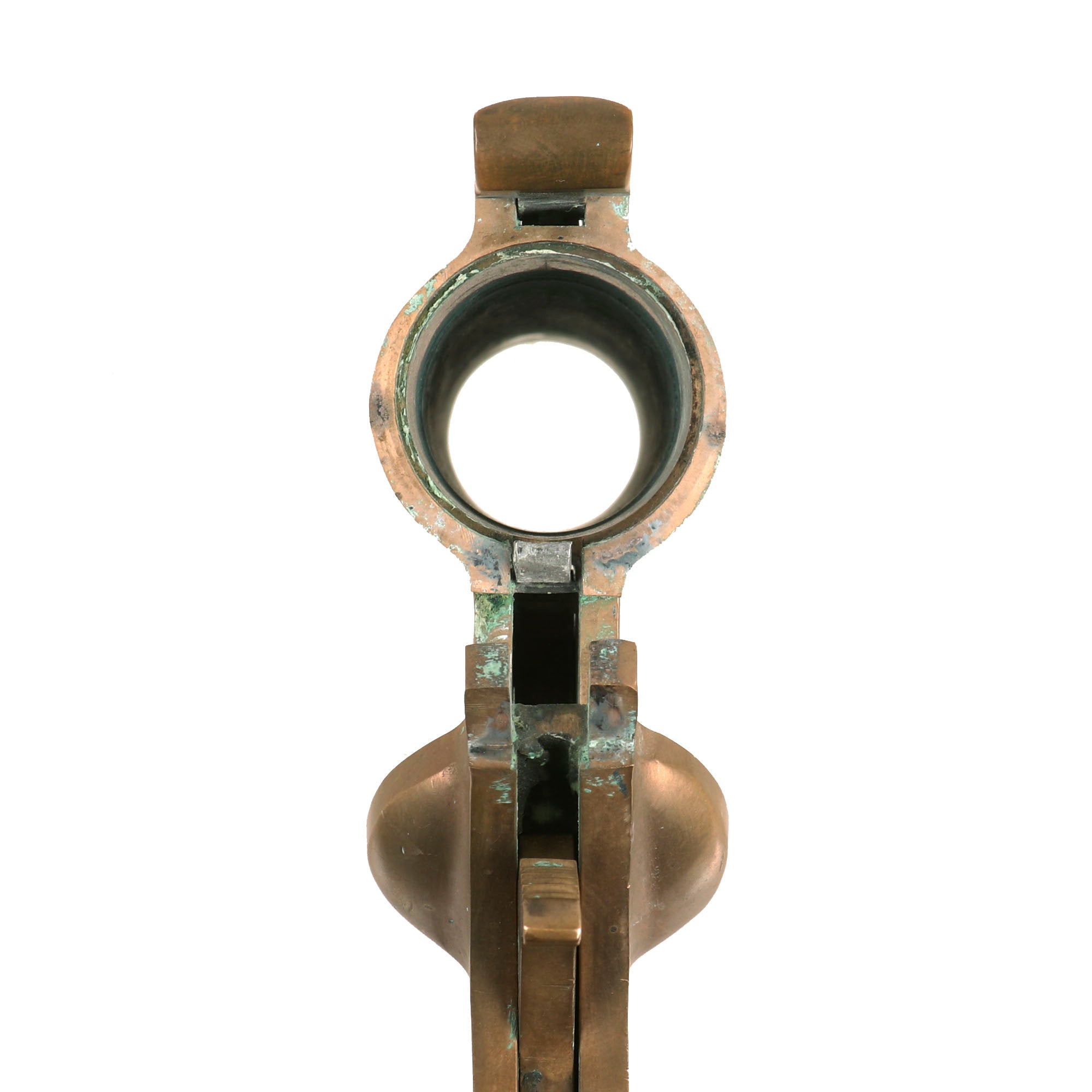 These flare guns were made for commercial and military wartime use. Imagine being stranded in a life raft, after the sinking of your ship by a U-Boat, the most valuable item in your survival kit may have been this flare gun. The gun has certainly seen service and an interesting life; if it could only talk!