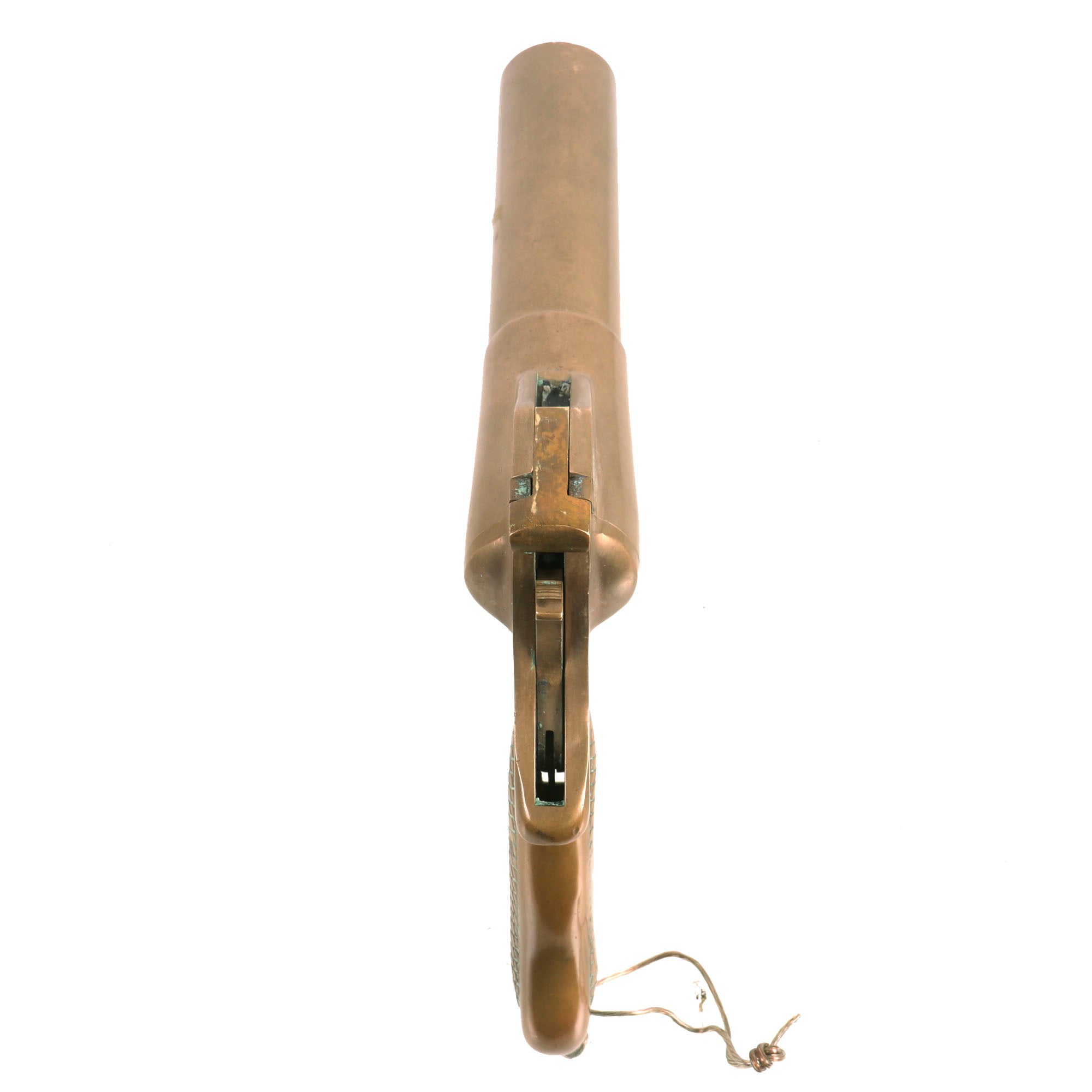 Original Item: Only One Available. WWII U.S. Navy Flare/ Signal Pistol made by Signal Pyrotechnic Company or Sklar of Los Angeles, California during WWII. This is a very large flare gun intended to launch (approximately) 37mm flares. A chrome finish was usually added to inhibit rust aboard ship though it looks like this was never plated, this pistol measures 11"x8.5" with a 1.5" barrel opening.