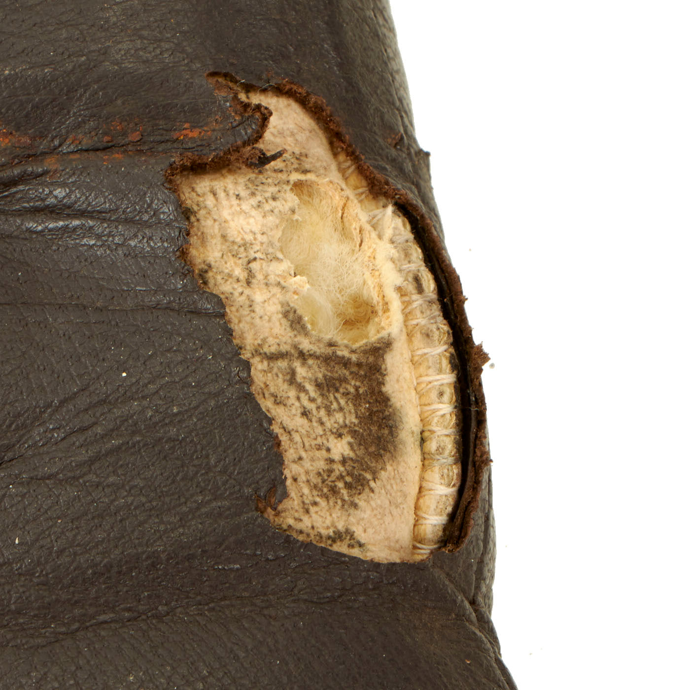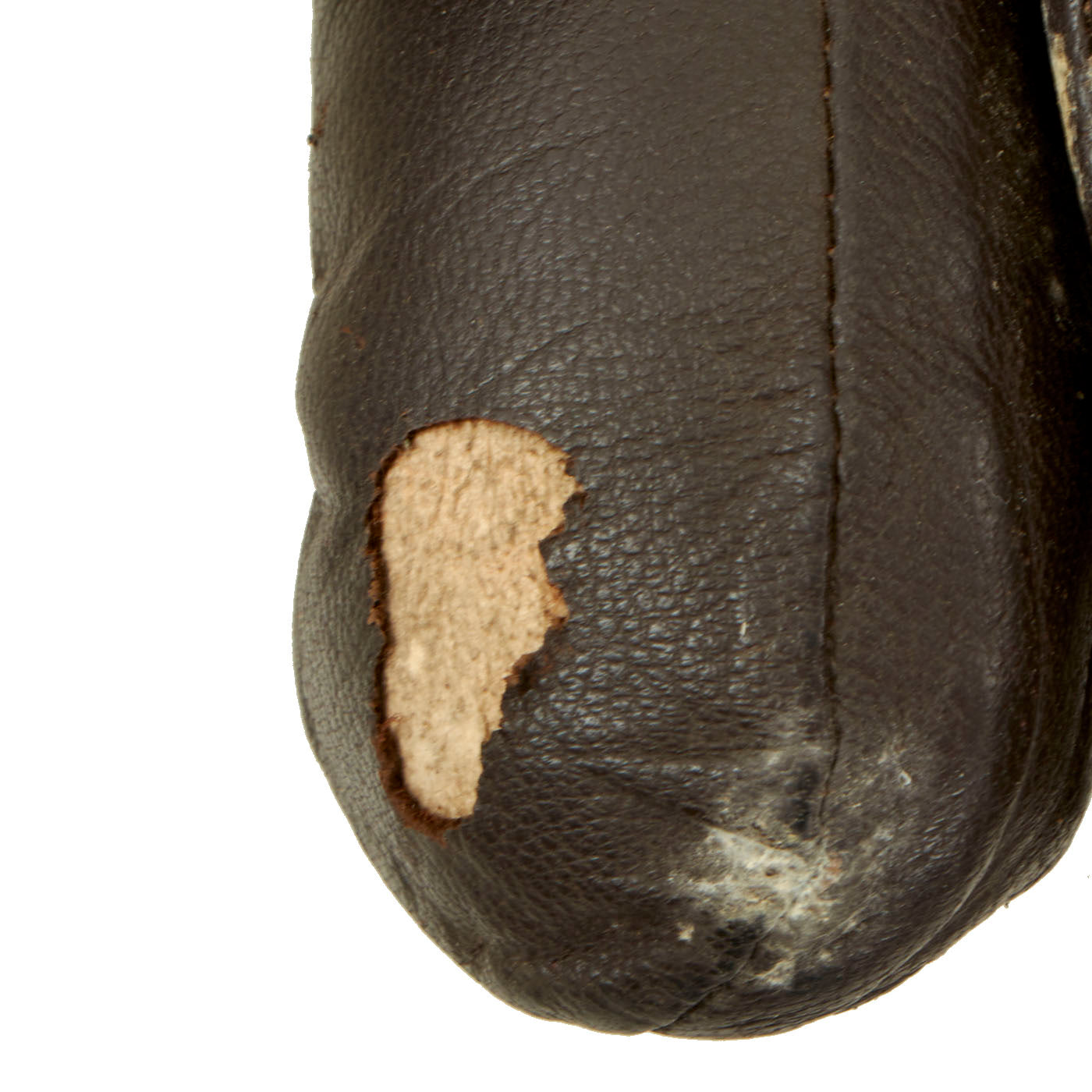 In addition to these items of handwear, the Types A-1 through A-8 gloves were officially called gauntlets by the Army. According to the Type Designation Sheets, the first gauntlet to be standardized by the Army for aviators was the winter-summer Type A-1. It was made of wool and leather and was declared obsolete on May 27, 1926. The Types A-2 through A-5, which were experimental designs of various materials, were made and service tested during the 1920s. The Type A-6 was standardized for the Air Corps on October 25, 1929, and was still used as a limited standard during World War II. It was declared obsolete on March 27, 1944. The A-6 was a mitten-type leather gauntlet lined with lamb’s wool and had one separate finger. Like the A-6, the Type A-7 gauntlet was standardized on October 25, 1929, and was used as a limited standard until March 27, 1944. It was made of chrome-tanned calfskin, with baby lamb’s wool lining, external seams, and four short fingers. The Type A-8, a medium-temperature gauntlet, was also made of chrome-tanned calfskin, but it had a camel’s hair knitted-wool lining and four long fingers. The A-8 was standardized on October 20, 1930, and remained in use as a limited standard until it was declared obsolete on March 31, 1944.