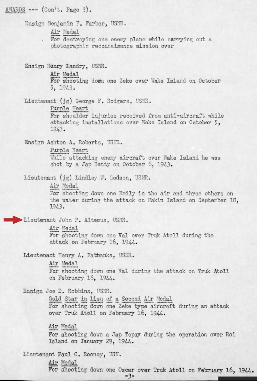 A flying ace, fighter ace or air ace is a military aviator credited with shooting down five or more enemy aircraft during aerial combat. The exact number of aerial victories required to officially qualify as an ace is varied, but is usually considered to be five or more. With having 6 confirmed victories under his belt, John P. Altemus was a Flying Ace! The helmet and story just keeps getting better, for example, his Wingman, the pilot of a secondary aircraft providing support or protection to a primary aircraft in a potentially dangerous situation, was none other than Lieutenant-Commander Edward “Butch” O’Hare.