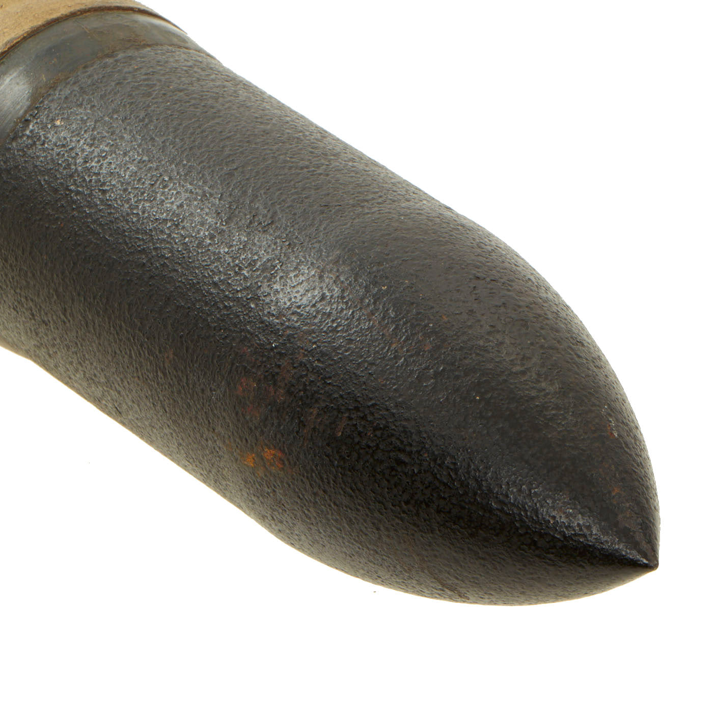 The round is in very good condition. The casing does not have any markings we can see, but the bottom of the “driving band” has Anchor A.A.A. Anchor marked on it.
