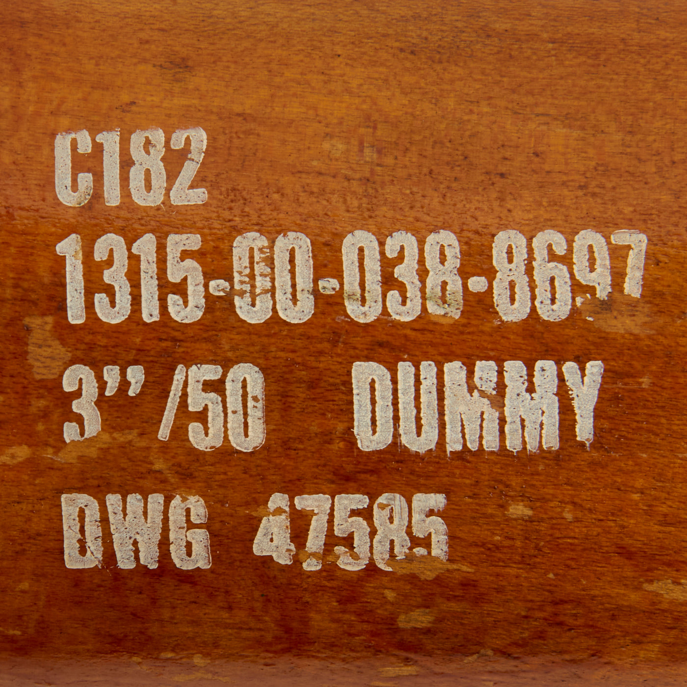 Original Item: Only One Available. This is a fantastic totally inert, wood construction, drill round for the USN 3 in./50 calibers QF gun that weighs 22.5lbs, and measures 31 1/4” in length.