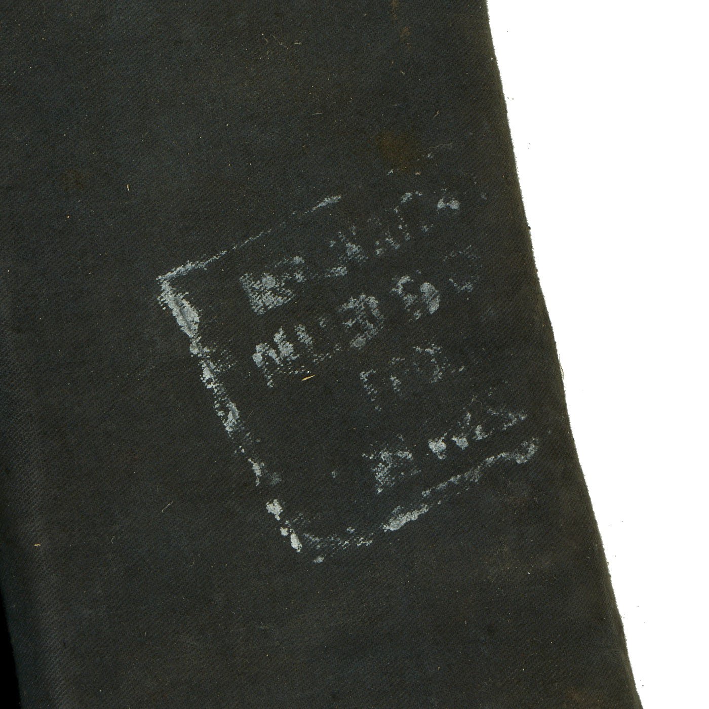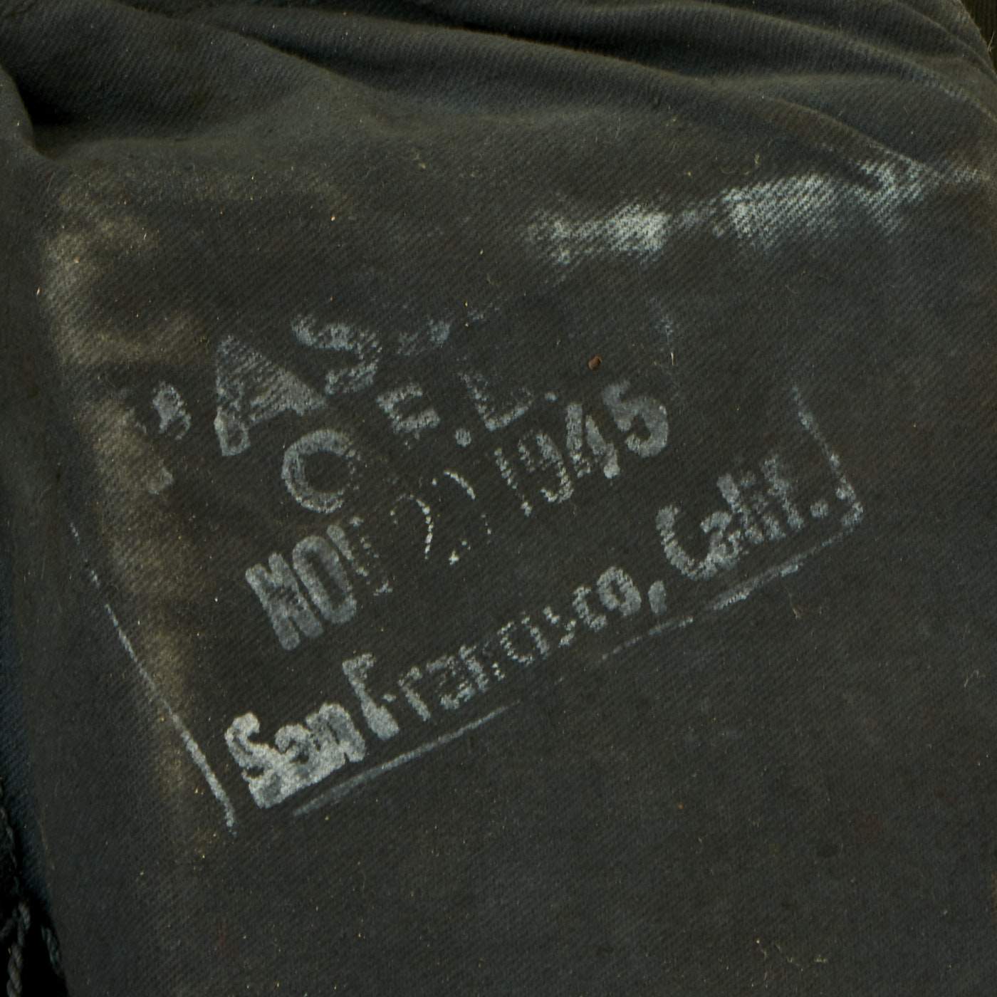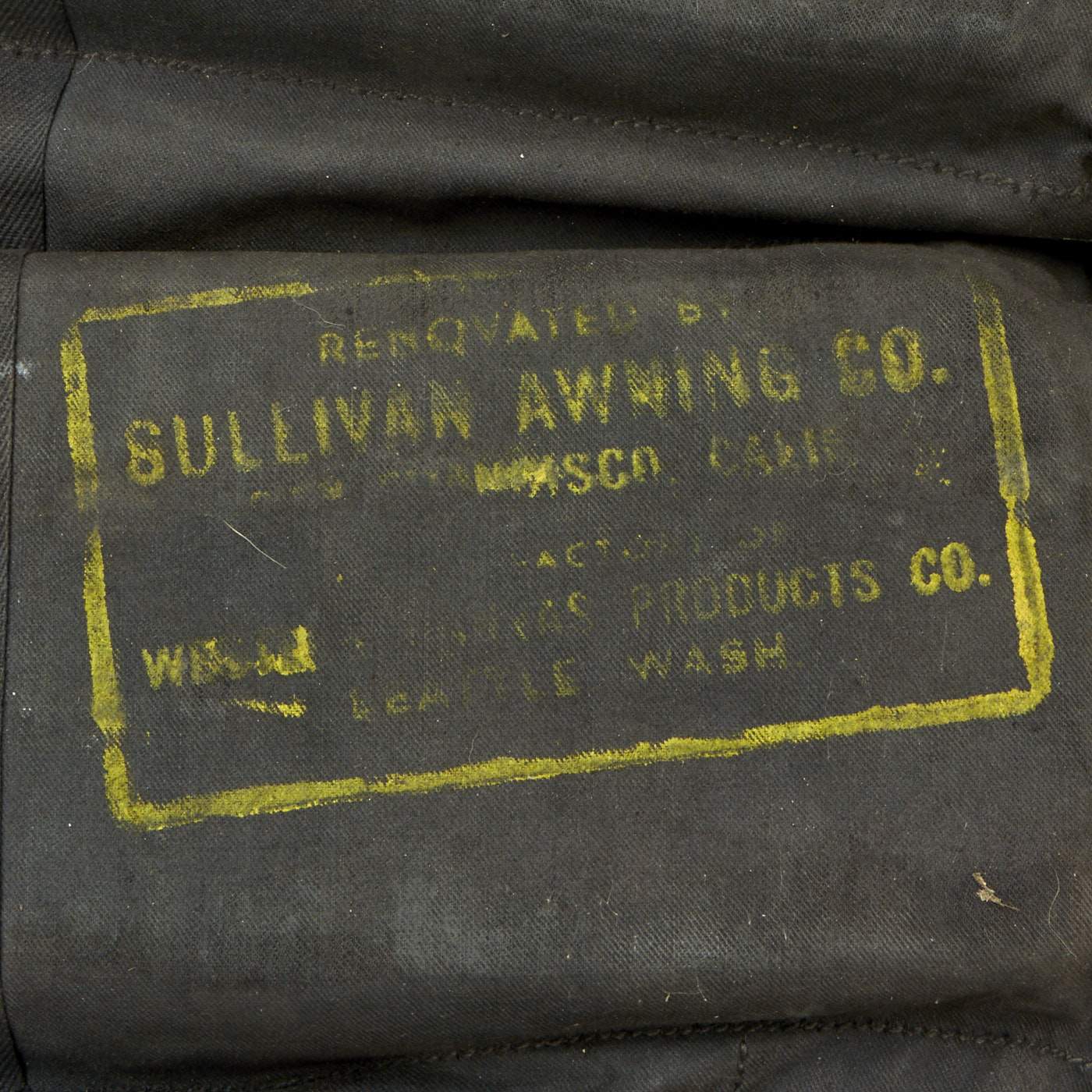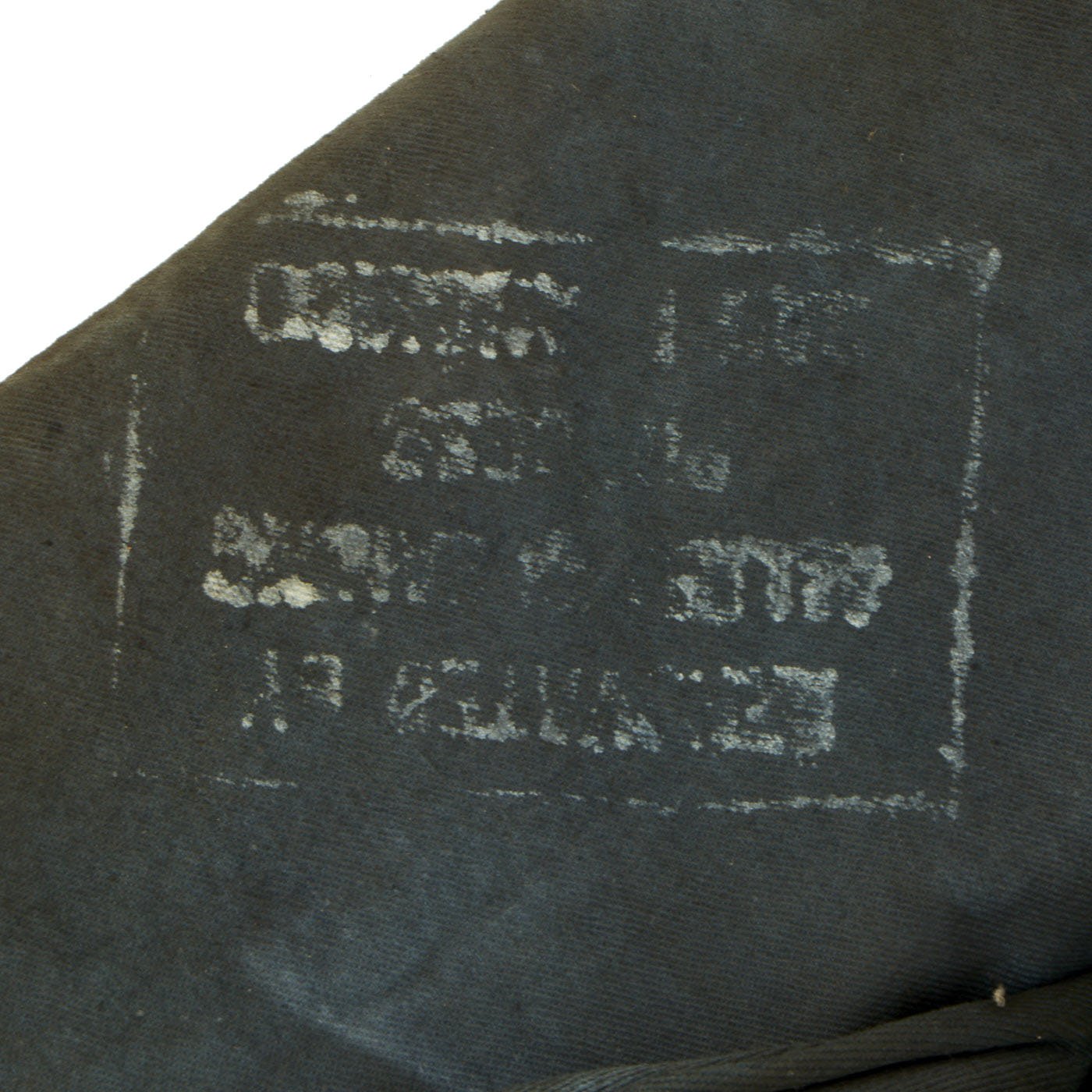 Produced from treated Navy Blue canvas with eight cork flotation sections, most bear markings and show "Passed" inspection stamps with 1945 dates, some even show manufacturers markings such as Sullivan Awning Company. None show manufacturer dates, only inspection dates, which leads us to believe they were manufactured prior to the test dates. Some straps may be damaged or missing but most will be intact.