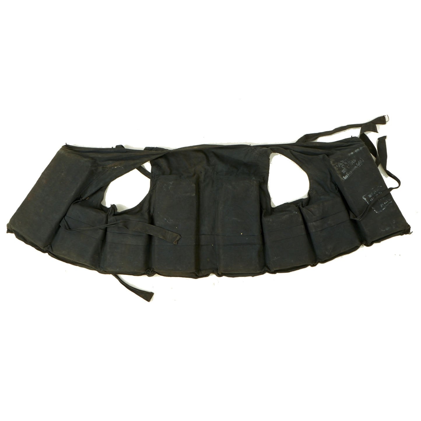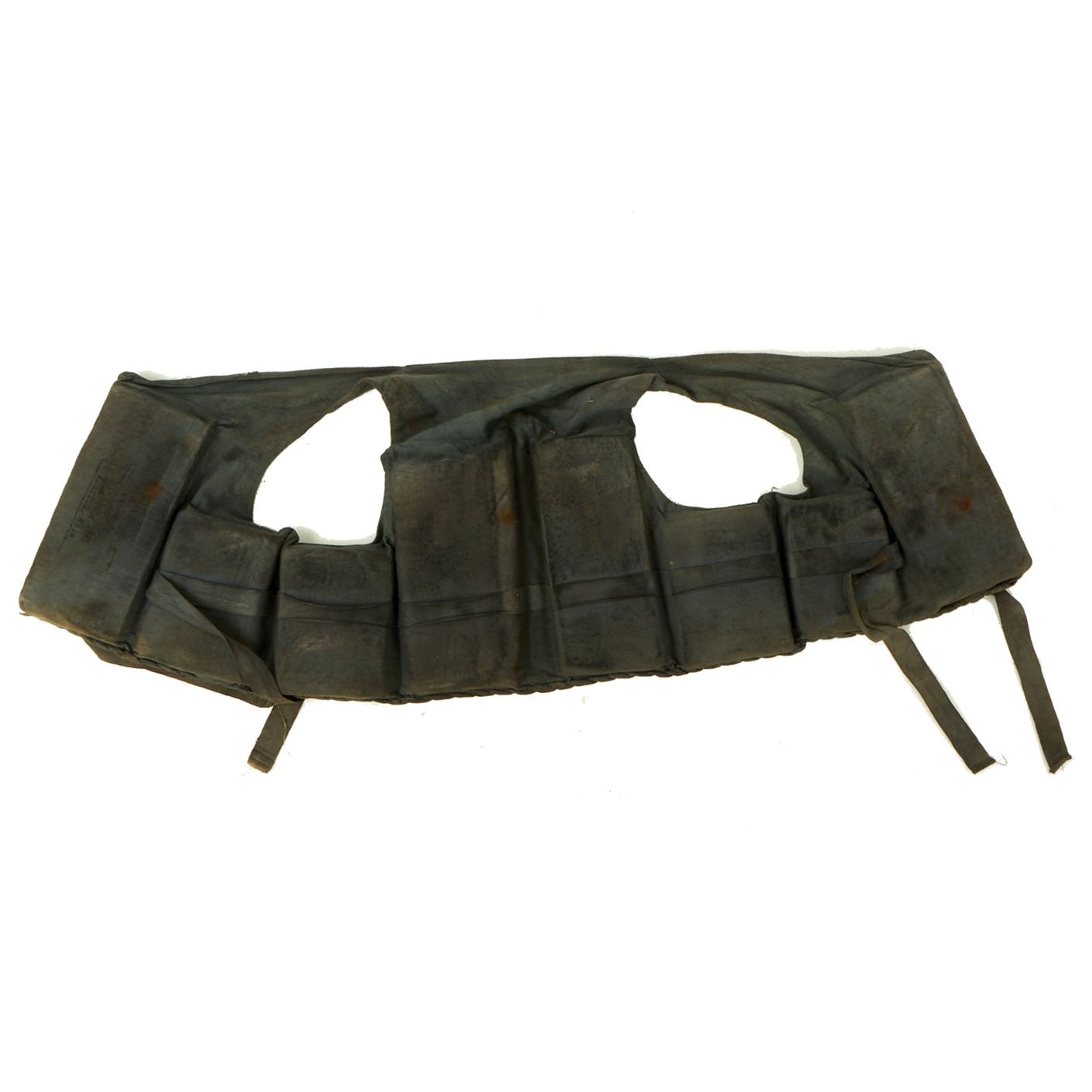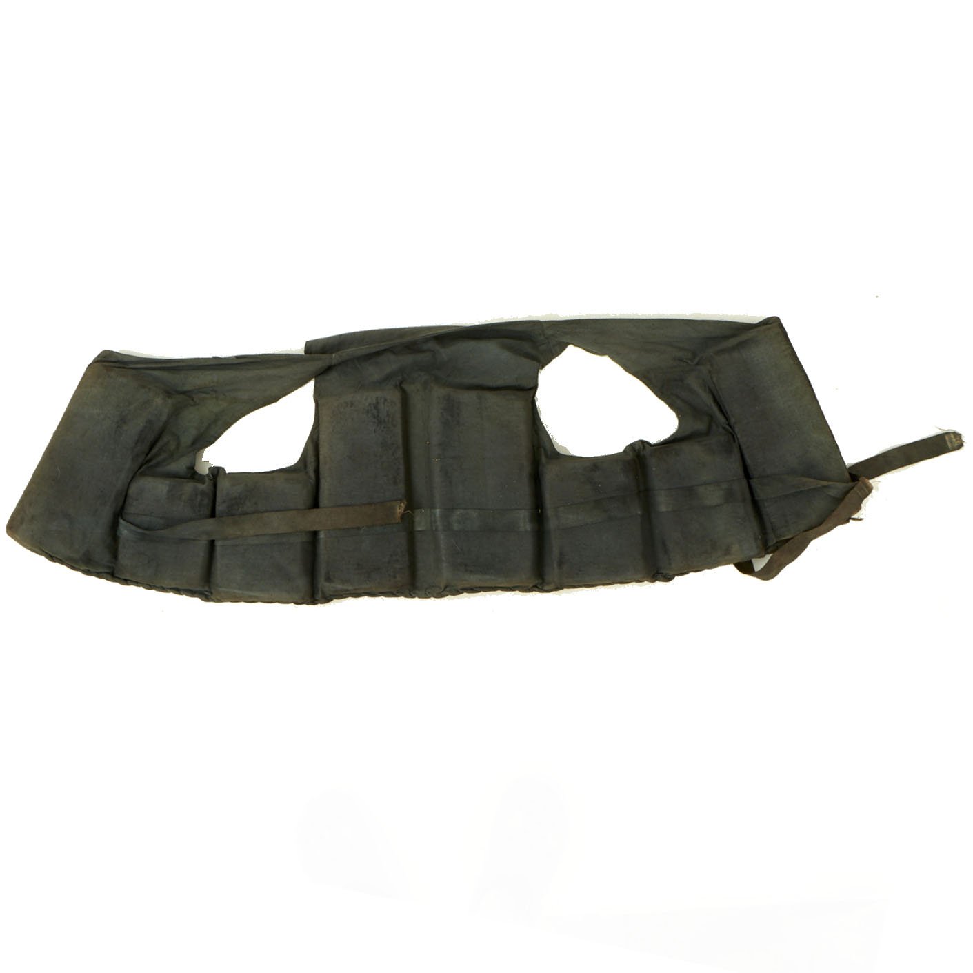 An excellent opportunity to obtain a representative example of a life preserver used by seaman during WWII. As most of these vests were simply discarded and destroyed in the years following WWII, this was a rather fortuitous find! A great chance to obtain a WWII navy life preserver for a mere fraction of the price of a much more expensive Kapok vest!