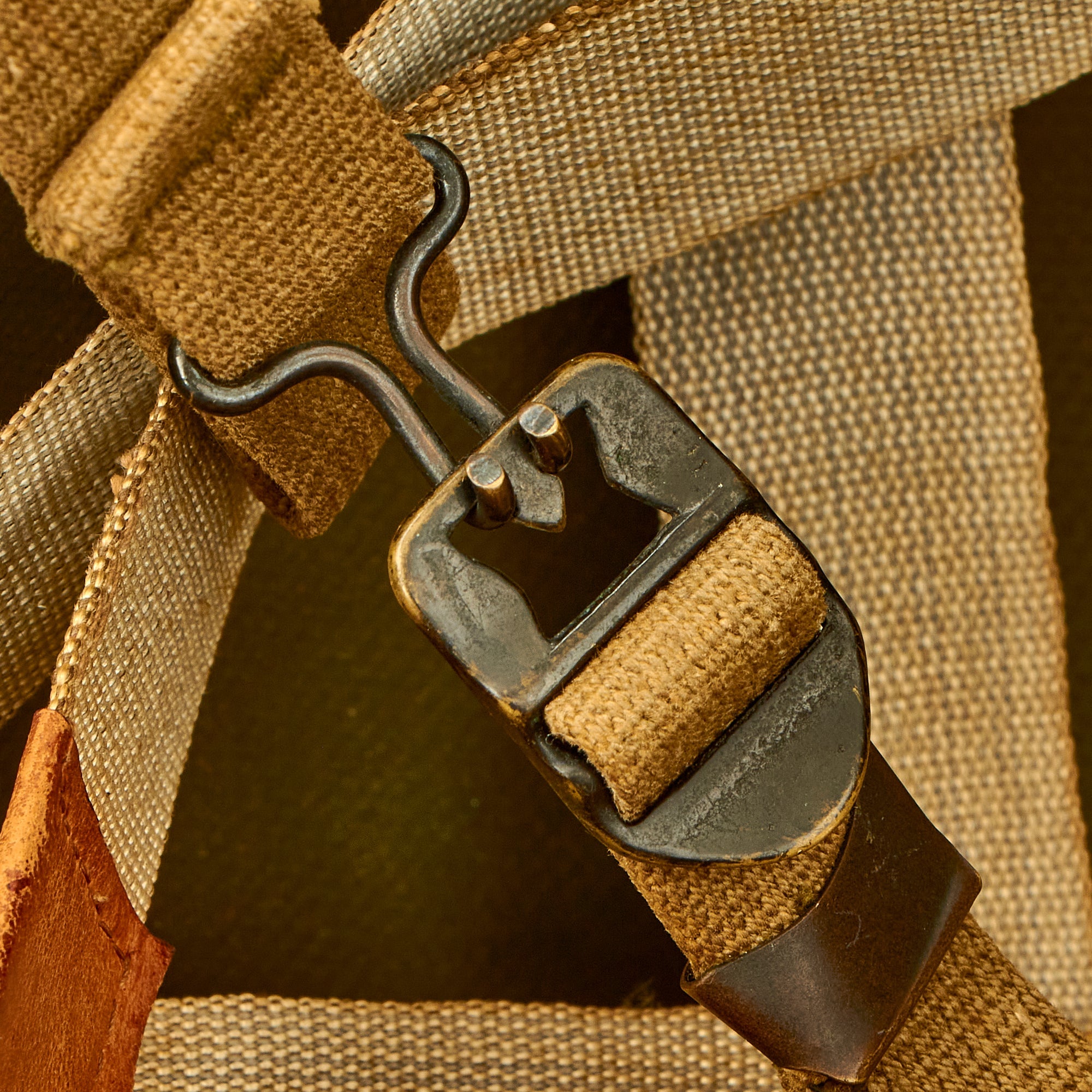 The shape and characteristics of the Hawley liner were identical to those of the fiberglass counterpart. The differences were the material of construction and the absence from the front metal grommet, which is where insignia could be placed. The suspension was made of a series of canvas straps. The sweatband has a leather cover. The whole assembly was riveted to the body of the liner. Small buckles were provided to adjust the suspension. However, doing so was difficult and very clumsy. The Hawley liner was issued in very small numbers during the early days of World War Two.