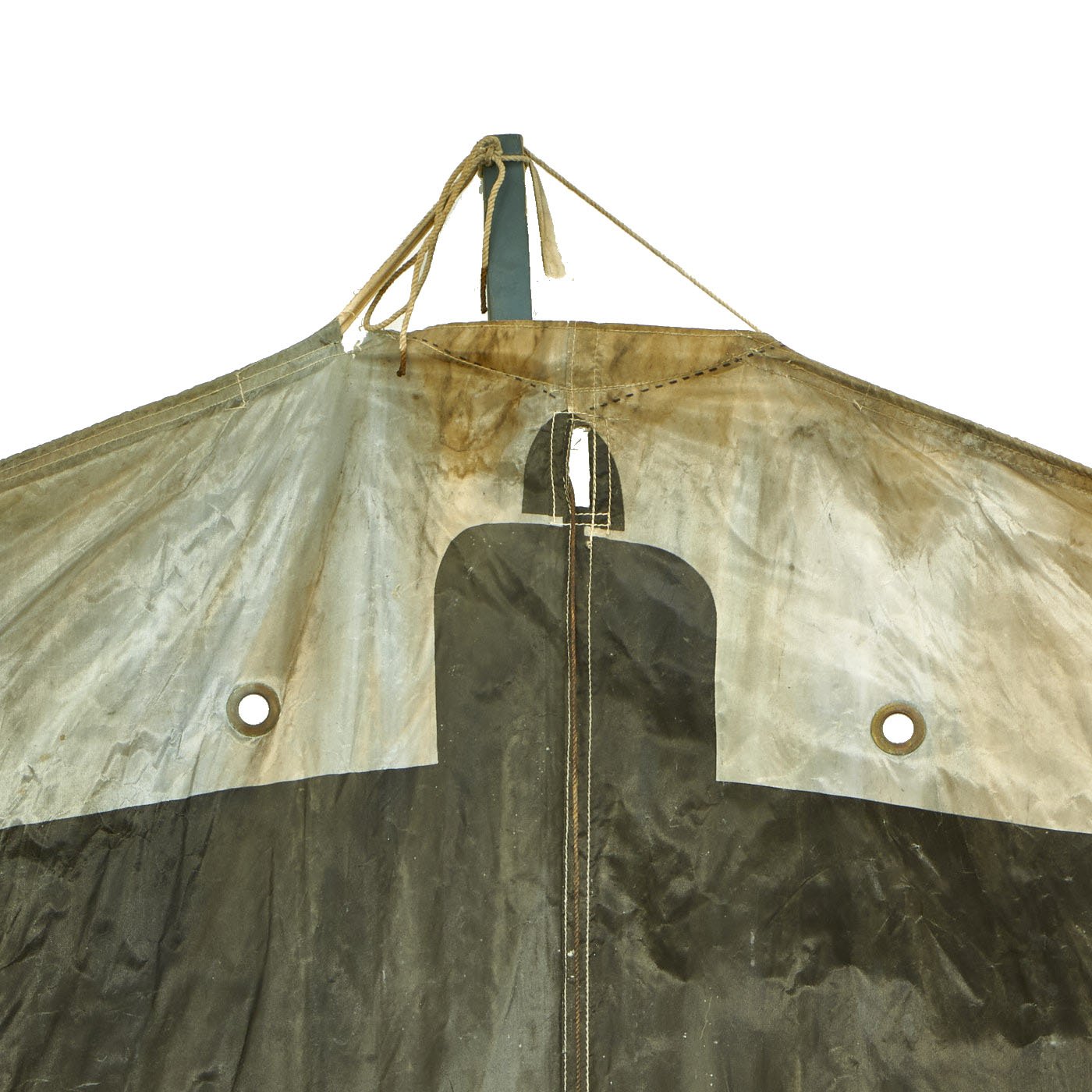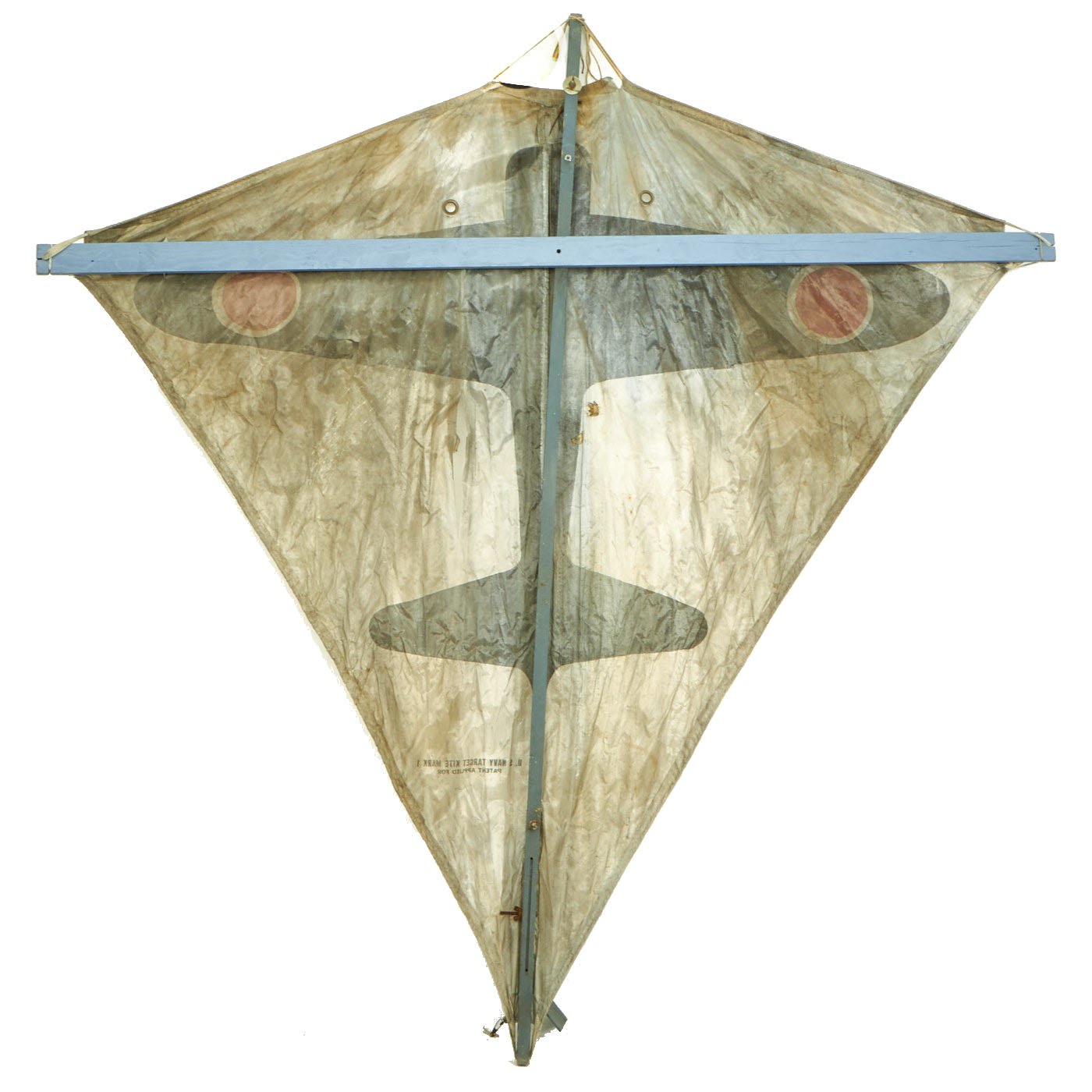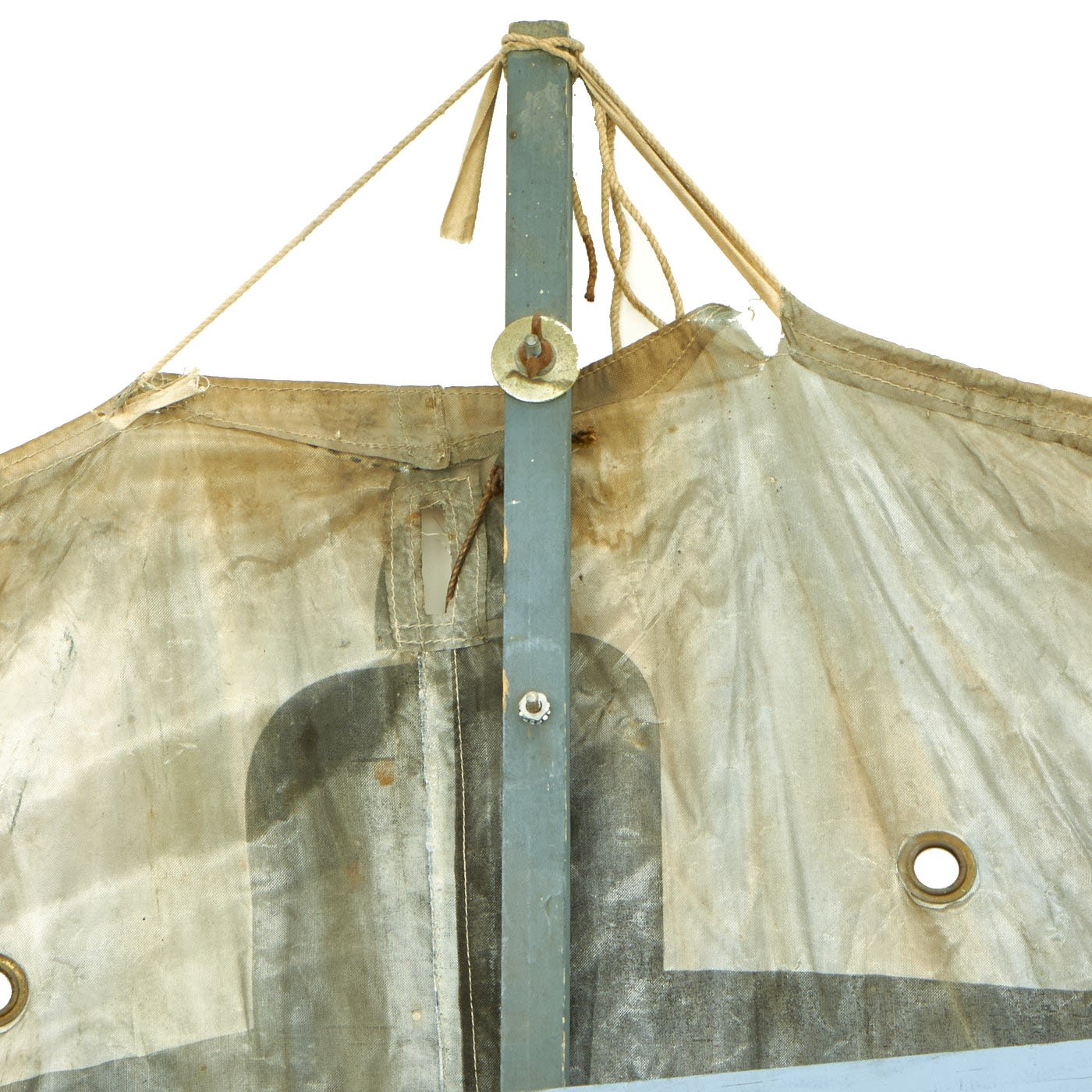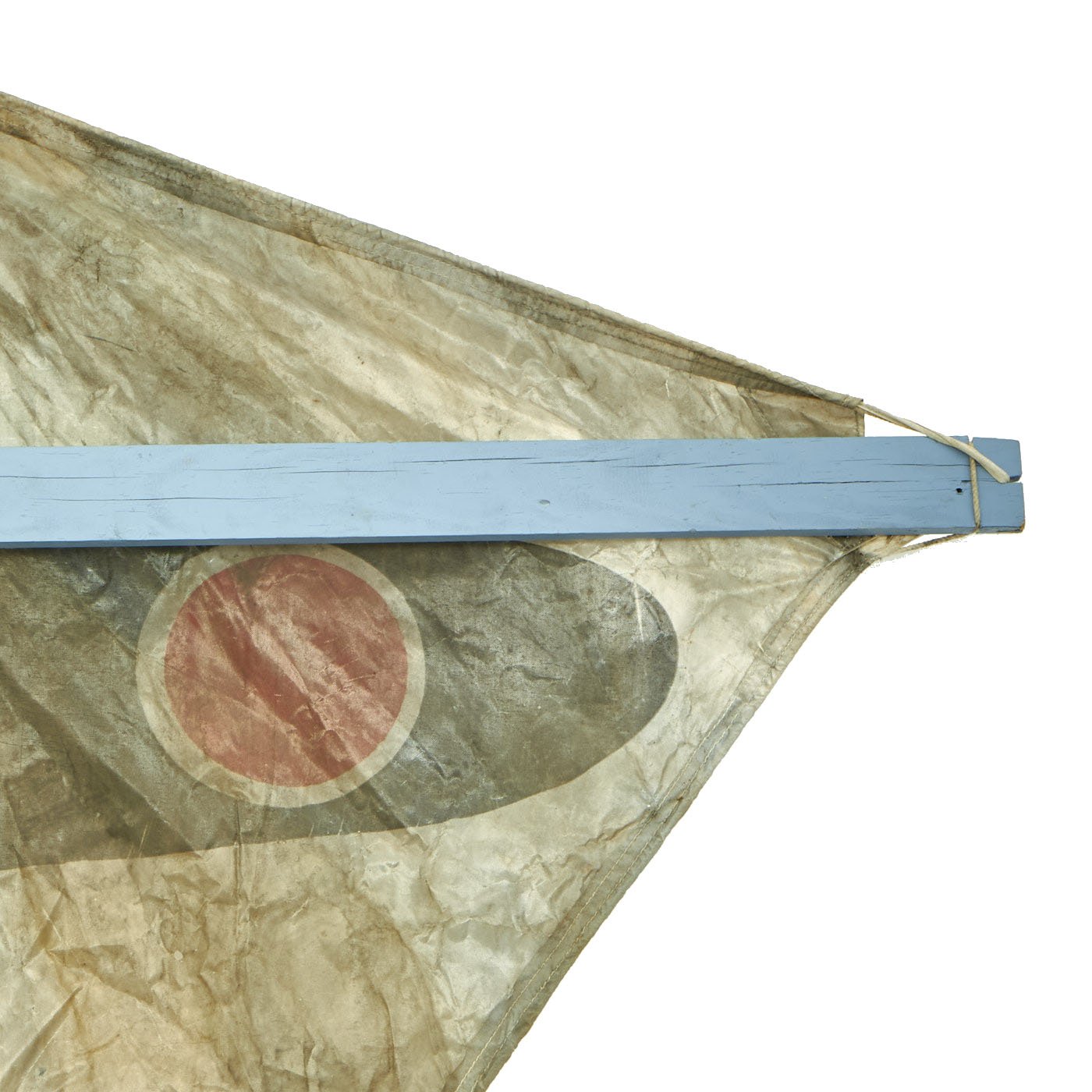Measures approximately Length 63" Width: 53" and is offered in very good condition. These were used by both the Army and Navy for target practice. You occasionally encounter the "skins" with either a German or Japanese silhouette but one rarely sees original kite skeleton, rudder, and cables. The fabric has some imperfections but overall a very appealing look. Very hard to find on today's market, usually only encountered in museums like the Smithsonian National Air and Space Museum in Washington DC.