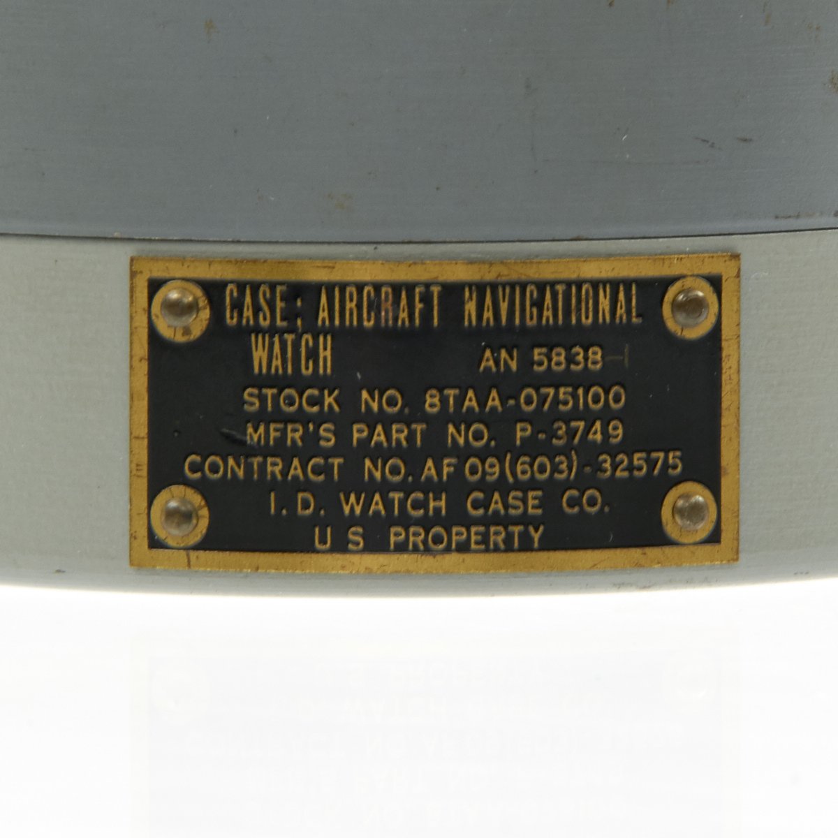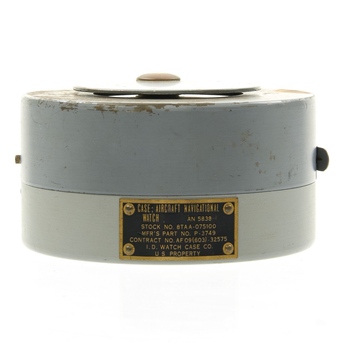 The case was designed to suspend the watch to protect it from the vibration and turbulence of an aircraft as well as a protective glass viewing panel to the user could look down onto it without removal.