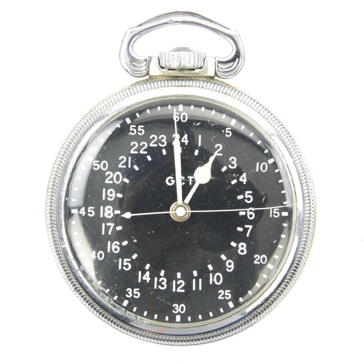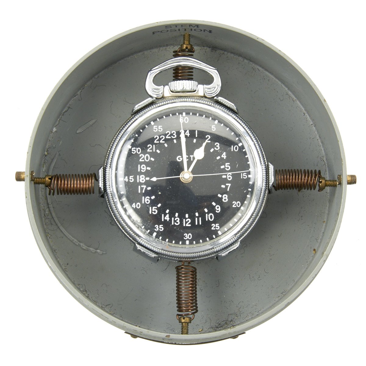 This is a FULLY FUNCTIONING beautiful 1942 produced example of the Hamilton U.S Army Air Force GCT Navigation watch type AN 5740. The "GCT" or AN 5740/AN 5740-1 pocket watches were used for navigation purposes by all the branches of the US. Military prior to, during, and after WWII. The three main manufacturers of the AN-5740 and AN-5740-1 were The Hamilton Watch Co., The Elgin National Watch Co. and the Waltham Watch Co.