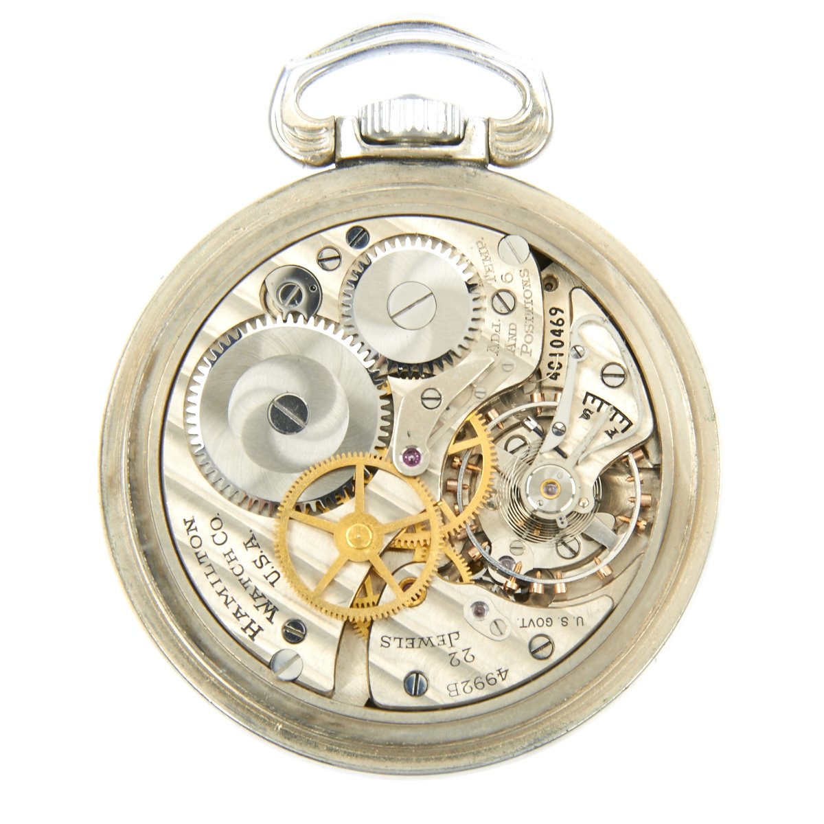 During World War II, Hamilton, Waltham, & Elgin produced a variety of time pieces to support the war effort. In fact, all of Hamilton's production was dedicated to defense purposes. However, they did still produce some wrist watches using excess movements produced in the 1920's.