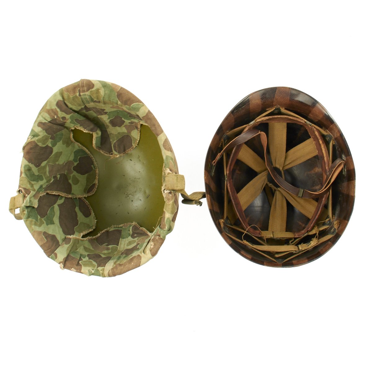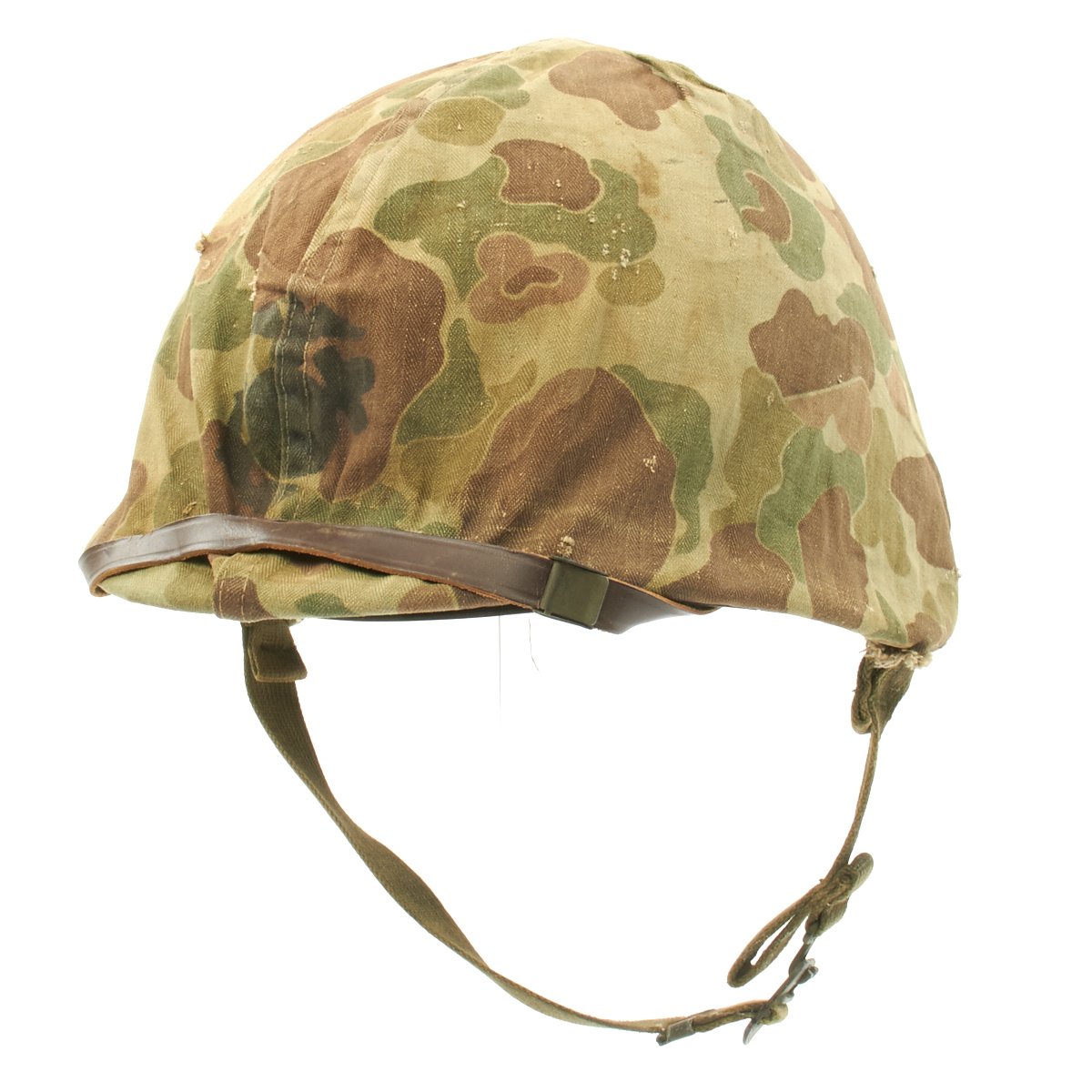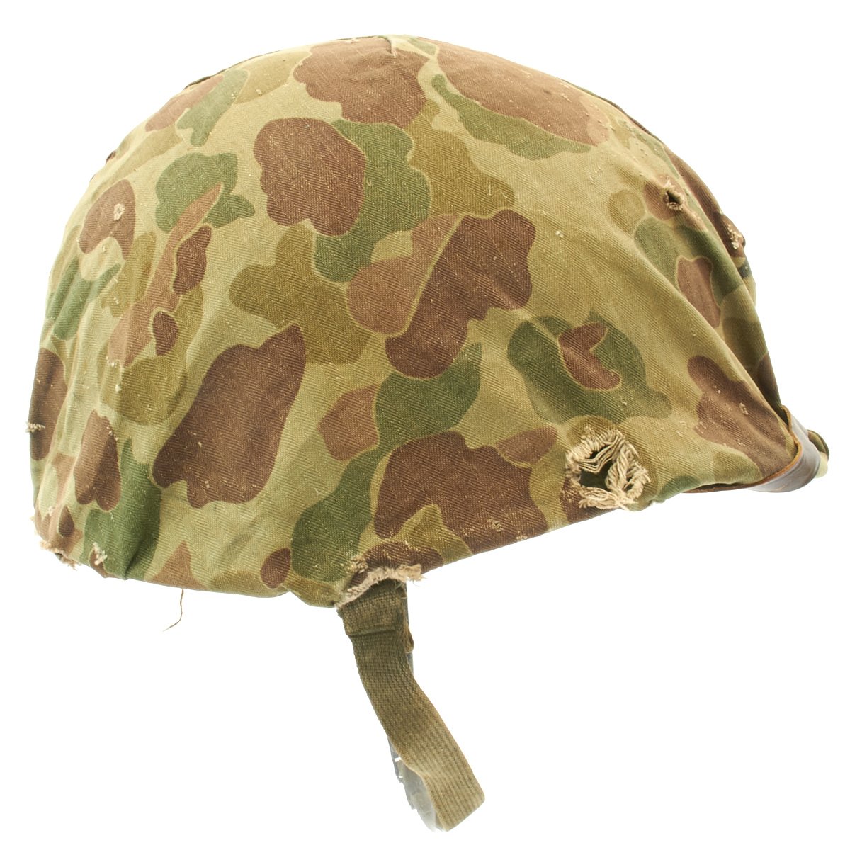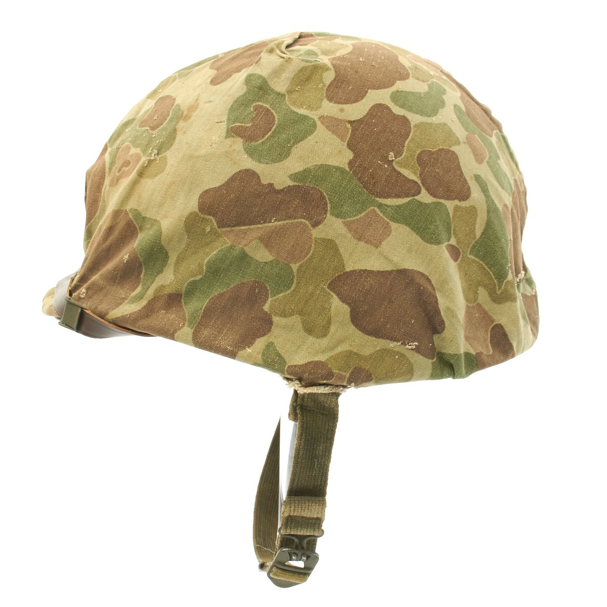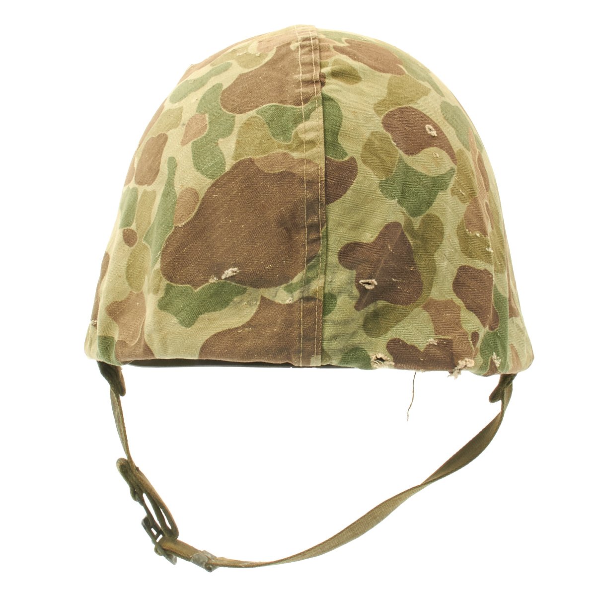 The shell chin strap is original, and the helmet cover is original WWII issue USMC in excellent condition!