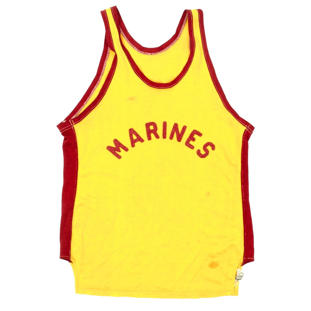 Original Items: During the war, as professional basketball players joined the armed forces, some of the best basketball was being played on the courts of service teams. This jersey was worn by the U.S. Marine Corps club during the 1945 season.