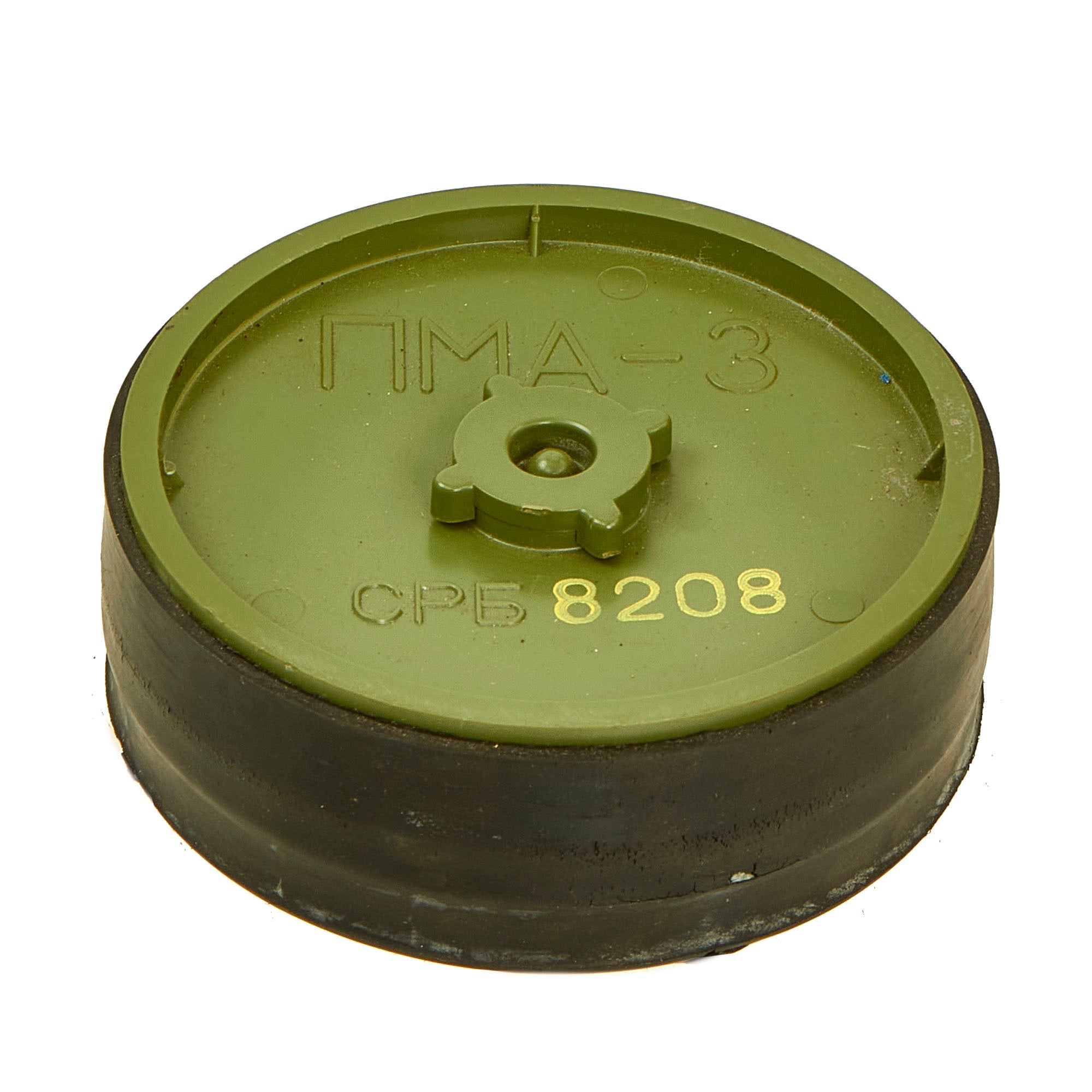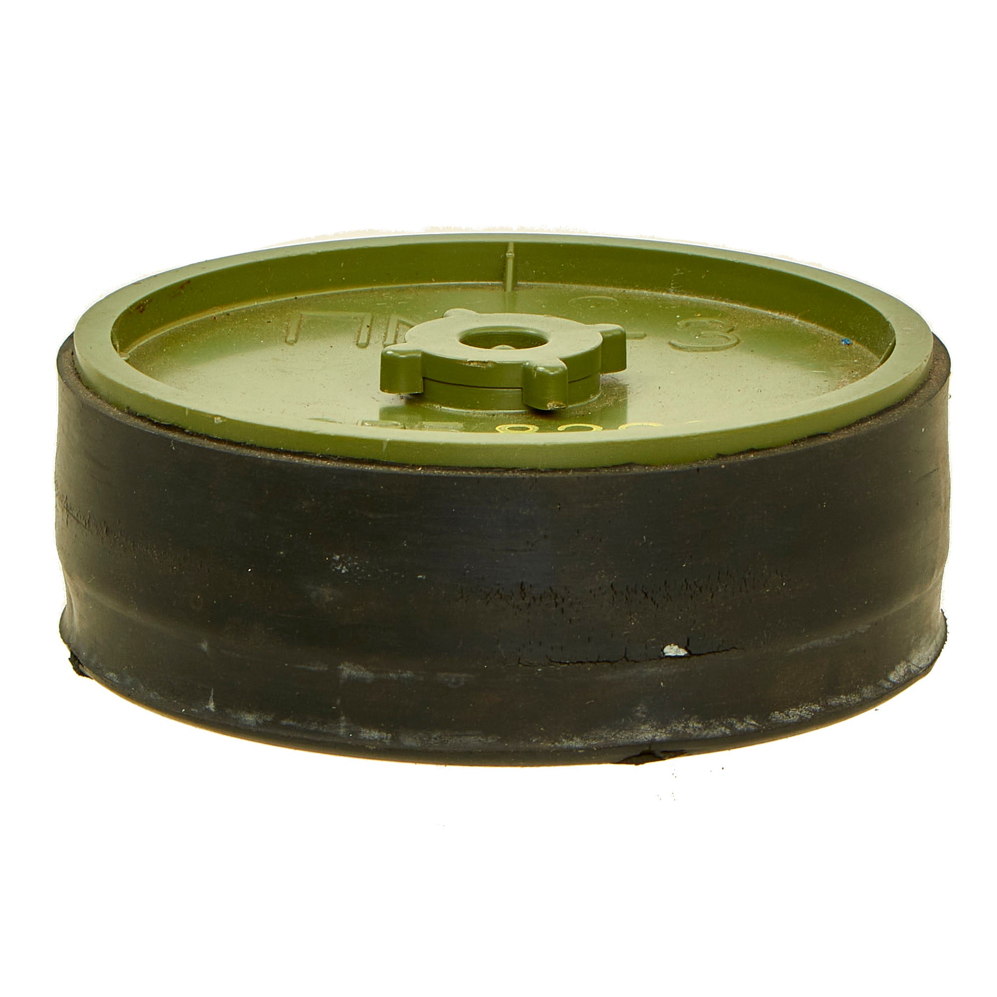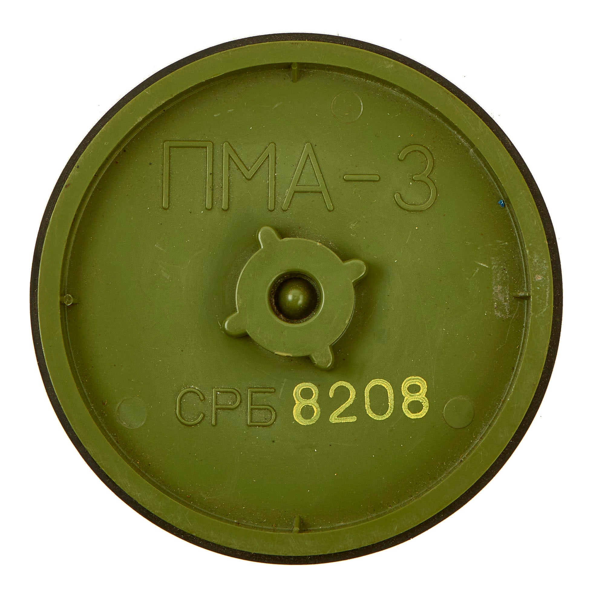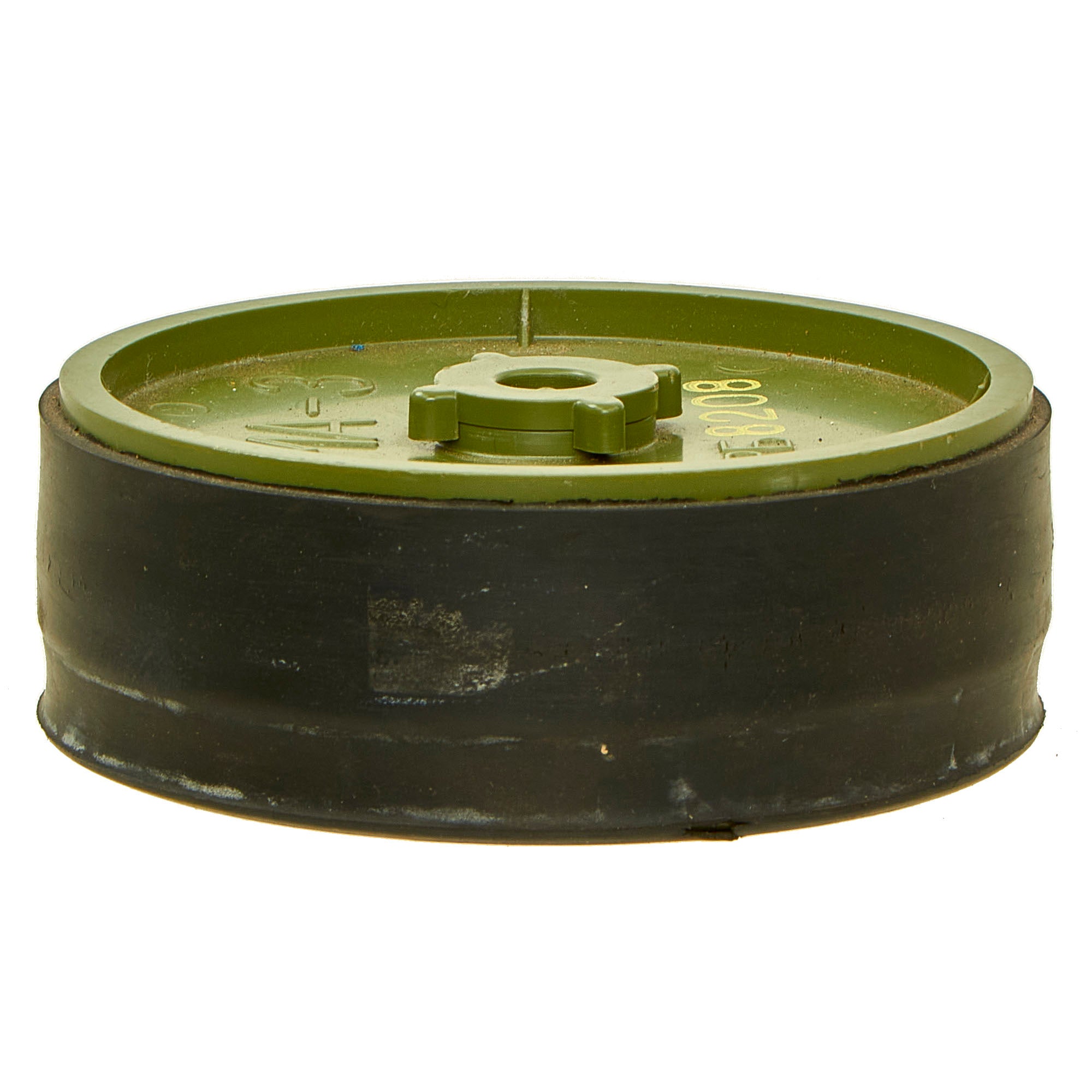 Original Item: Very Few Available. Now these were a great find! These are all inert PMA-3 Minimum Metal Anti-Personnel Mines. A minimum metal mine is a land mine that is designed to use the smallest amount of metal possible in its construction. Typically, the only metal components are located inside the fuze mechanism which triggers detonation. Both minimum metal anti-tank and anti-personnel mines exist. Some designs contain virtually no metal at all, e.g., less than a gram. This is achieved by encasing the explosive charge in a plastic, wooden, or glass body, with metallic components limited to the few small parts in the fuze which can not easily be made from other materials, such as the spring, striker tip, and shear pin. Minimum metal mines are extremely difficult to detect using conventional metal mine detectors and usually require modern techniques, such as robotic Multi Period Sensing (MPS) equipment, to identify, but it is still extremely difficult to find non-metallic mines. These techniques are usually restricted to well-funded international mine clearing organizations and major militaries, making minimum metal mines especially pernicious where they are encountered.