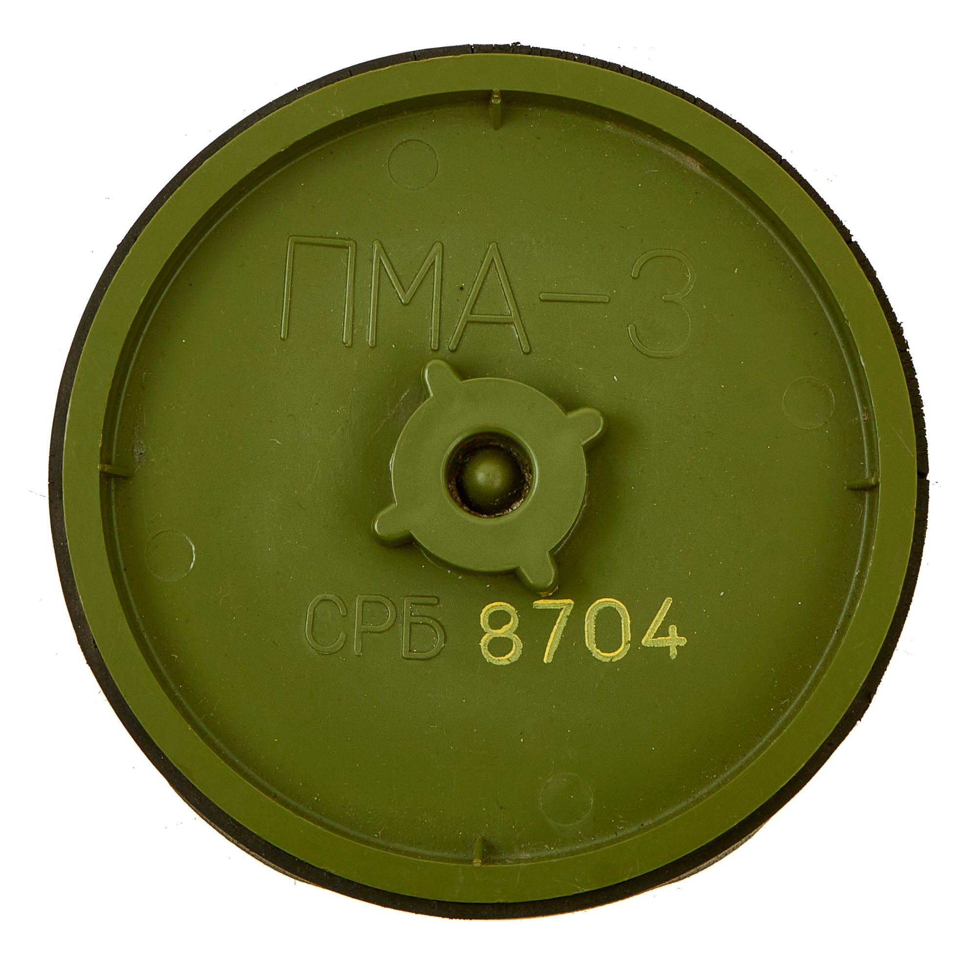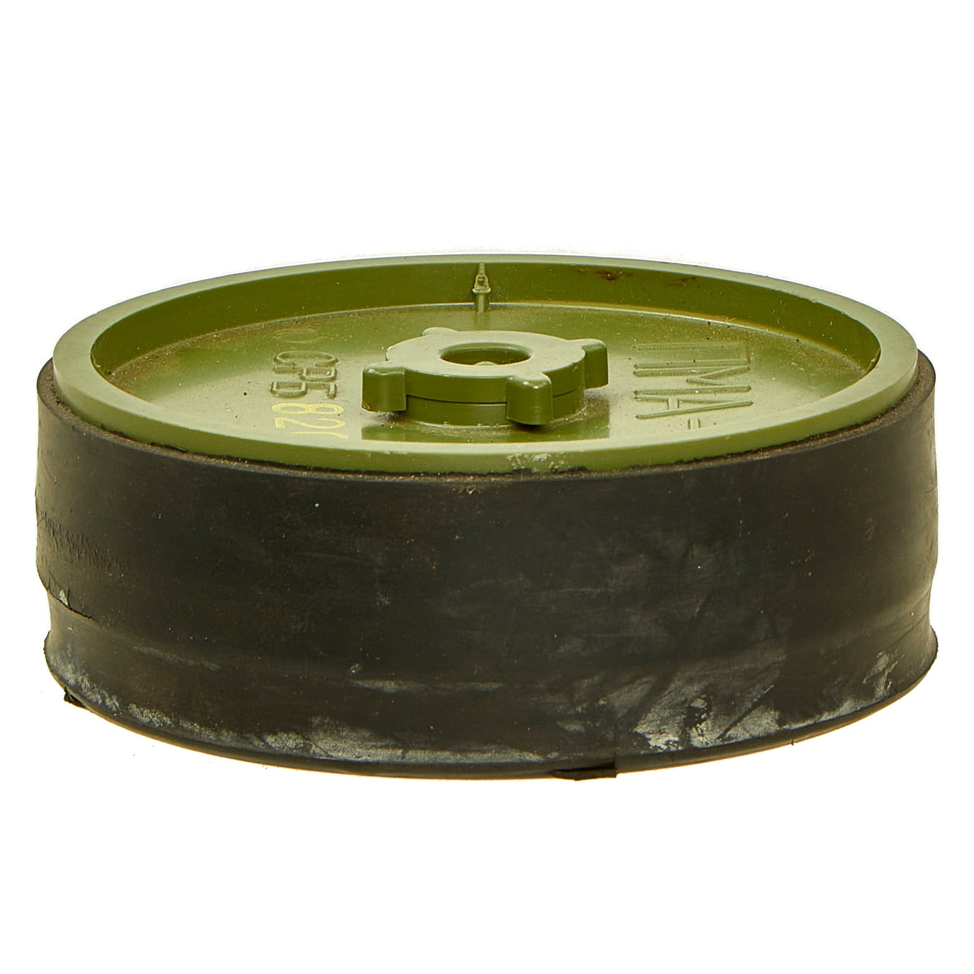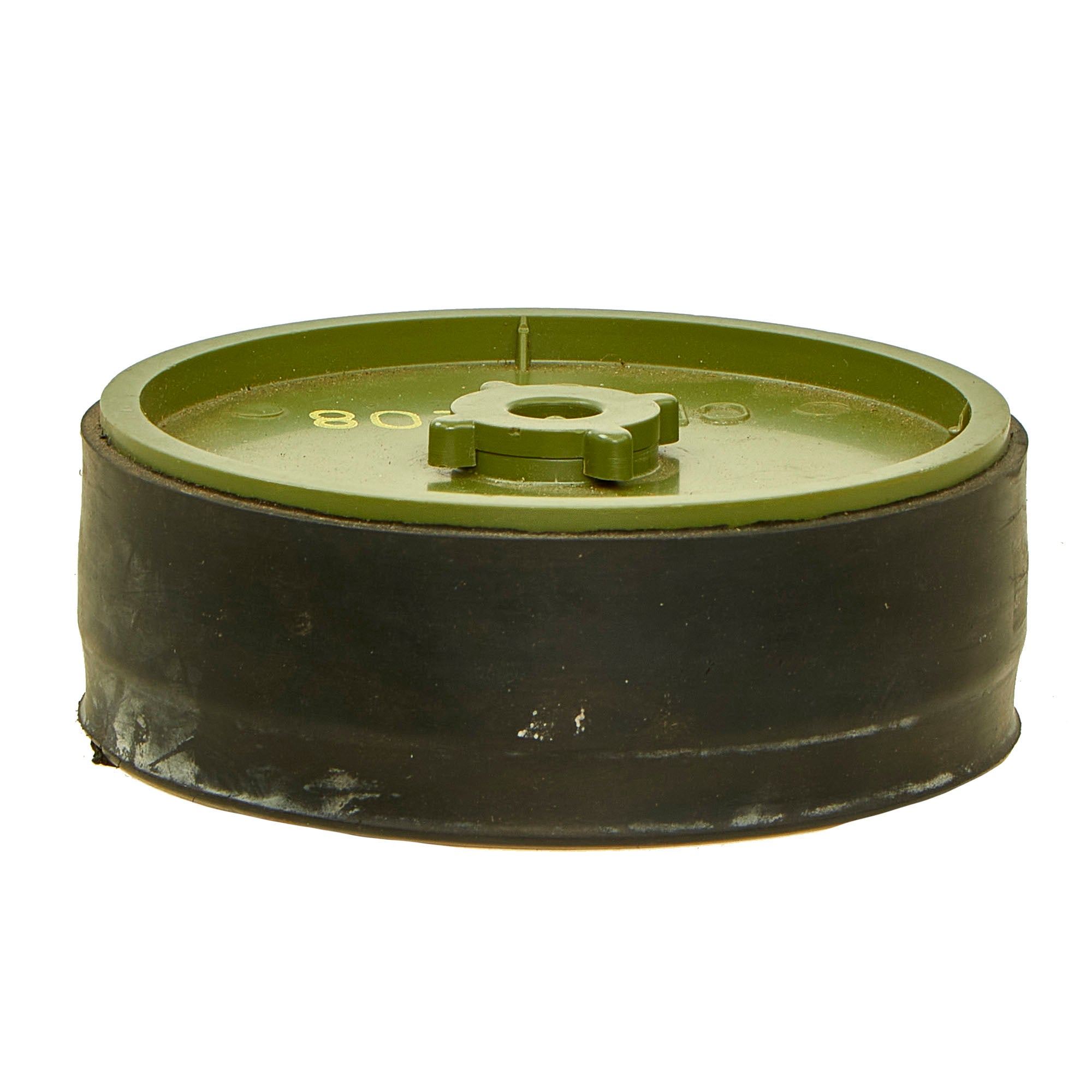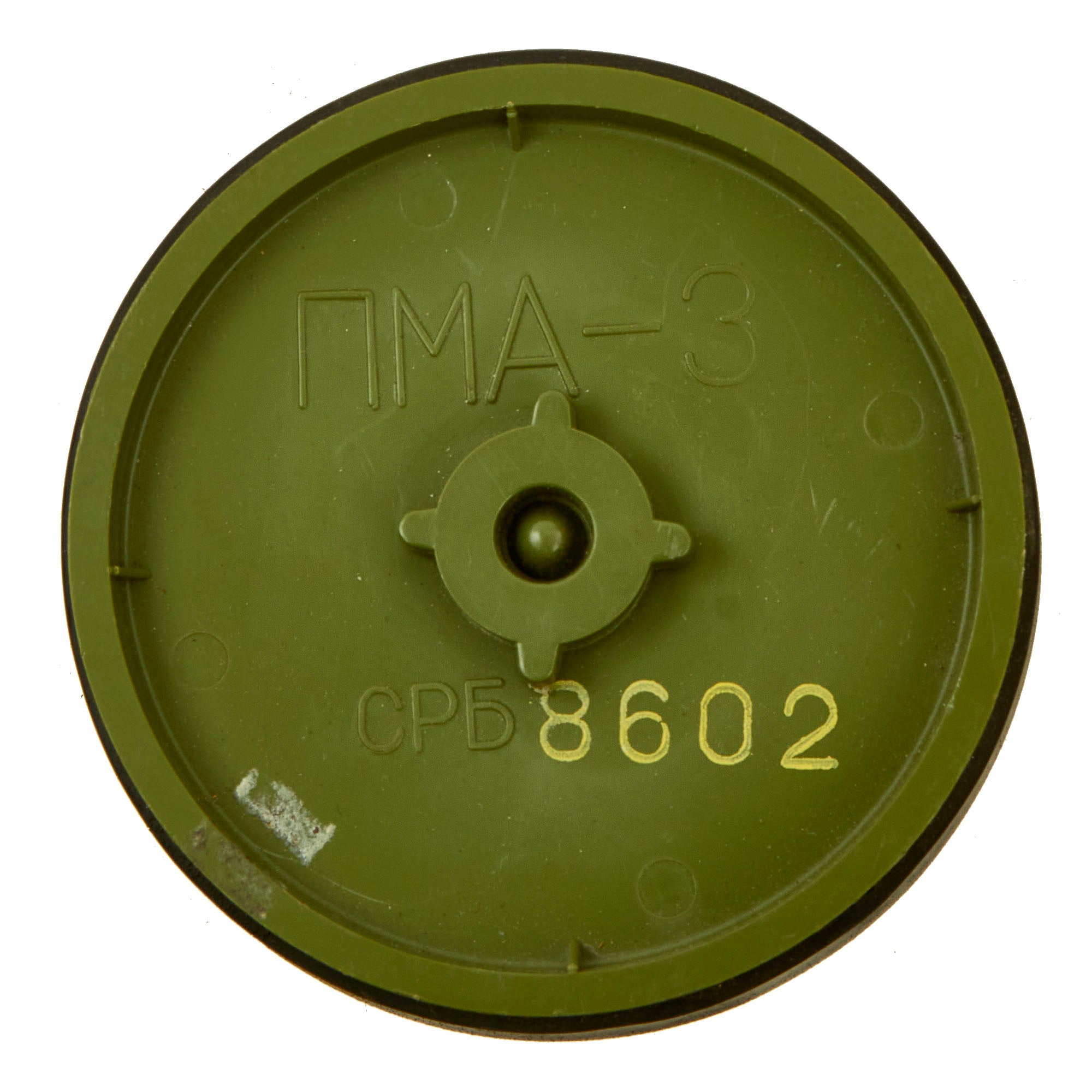 Original Item: Very Few Available. Now these were a great find! These are all inert PMA-3 Minimum Metal Anti-Personnel Mines. A minimum metal mine is a land mine that is designed to use the smallest amount of metal possible in its construction. Typically, the only metal components are located inside the fuze mechanism which triggers detonation. Both minimum metal anti-tank and anti-personnel mines exist. Some designs contain virtually no metal at all, e.g., less than a gram. This is achieved by encasing the explosive charge in a plastic, wooden, or glass body, with metallic components limited to the few small parts in the fuze which can not easily be made from other materials, such as the spring, striker tip, and shear pin. Minimum metal mines are extremely difficult to detect using conventional metal mine detectors and usually require modern techniques, such as robotic Multi Period Sensing (MPS) equipment, to identify, but it is still extremely difficult to find non-metallic mines. These techniques are usually restricted to well-funded international mine clearing organizations and major militaries, making minimum metal mines especially pernicious where they are encountered.