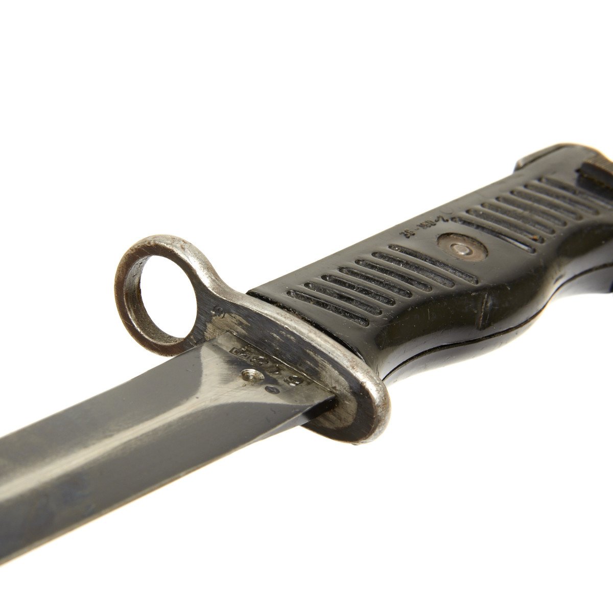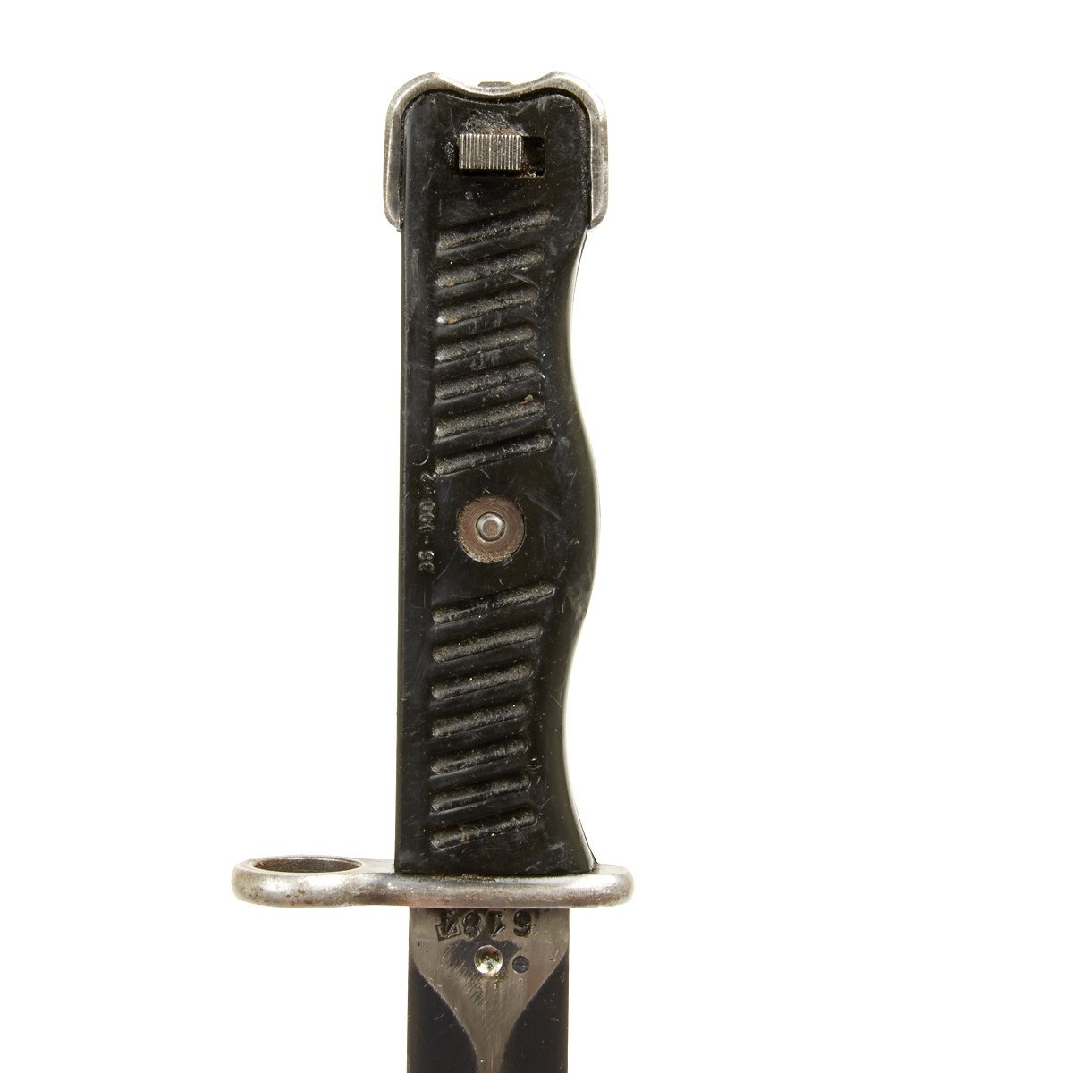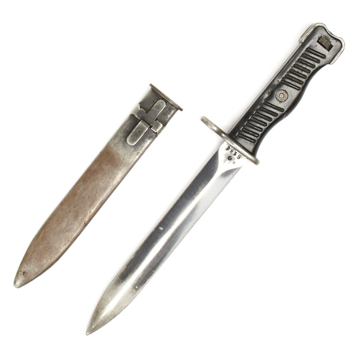 Original Item: Never before offered, these are original Yugoslavian issue knife bayonets with plastic grips complete with heavy blued steel scabbards for the M-56 sub machine gun. Very Rare, god condition.