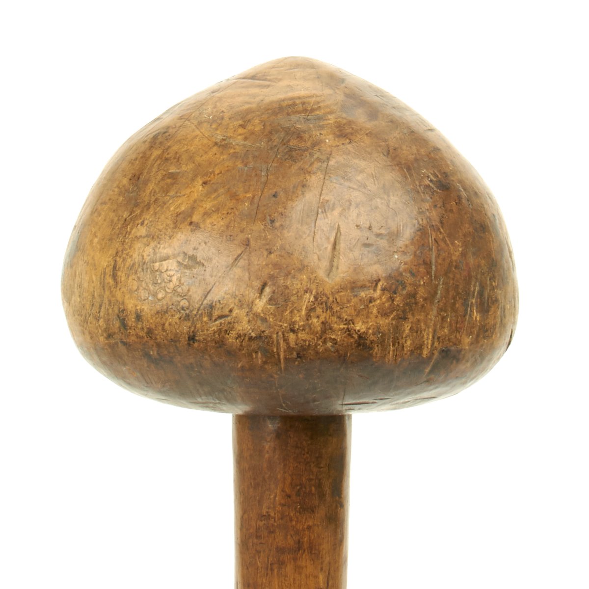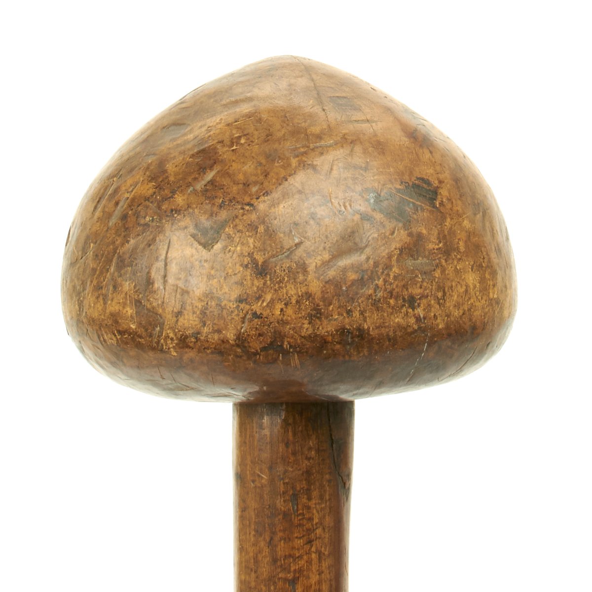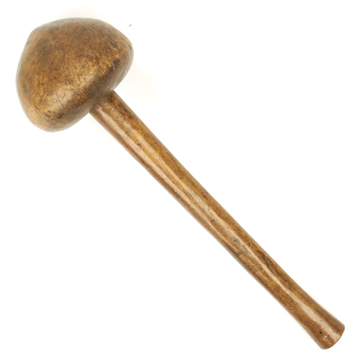 Measuring only 17" in overall length with a huge ball that is over 5" across and made from a single piece of wood. These very large ball clubs with short shafts are said to have been used for Executions but further research needs to be undertaken on this point.