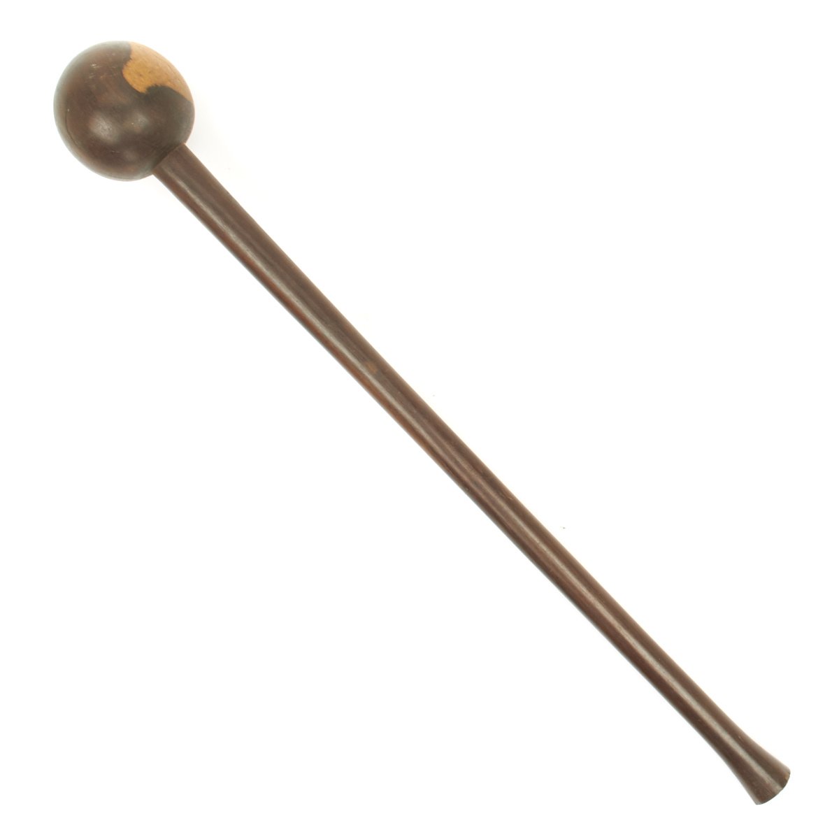 This example measures 25" in overall length and is carved from one piece of hardwood, both ball and haft. The round war head is an approximately 3" in diameter, a typical size for these. It has classic knobkierie two tone coloring from sapwood and heartwood, and the ball has a few age cracks. Ideal to display with your Martini Henry Rifle.