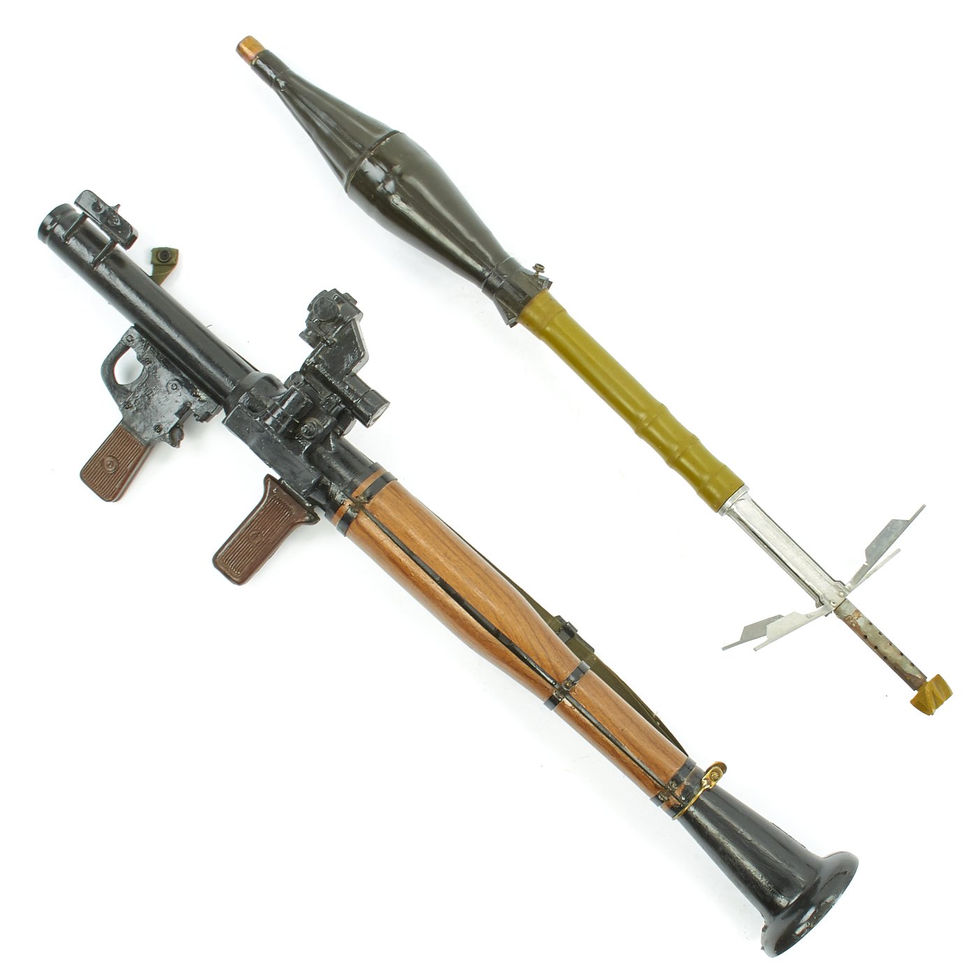 Original Item: Only One Available. This is a totally inert non-firing full size rubber and aluminum Russian RPG-7 training aid developed for the U.S. Military during the Vietnam War. The rocket is full sized and removable, it also features aluminum fins. The thin steel tube is surrounding in faux wood (plastic) and all other parts are hard rubber. The sight is solid rubber and not functional. These were essential training props for Special Forces units in preparation for insertion into the jungle during the Vietnam War. This example was produced for the U.S. military and is exceptionally rare.