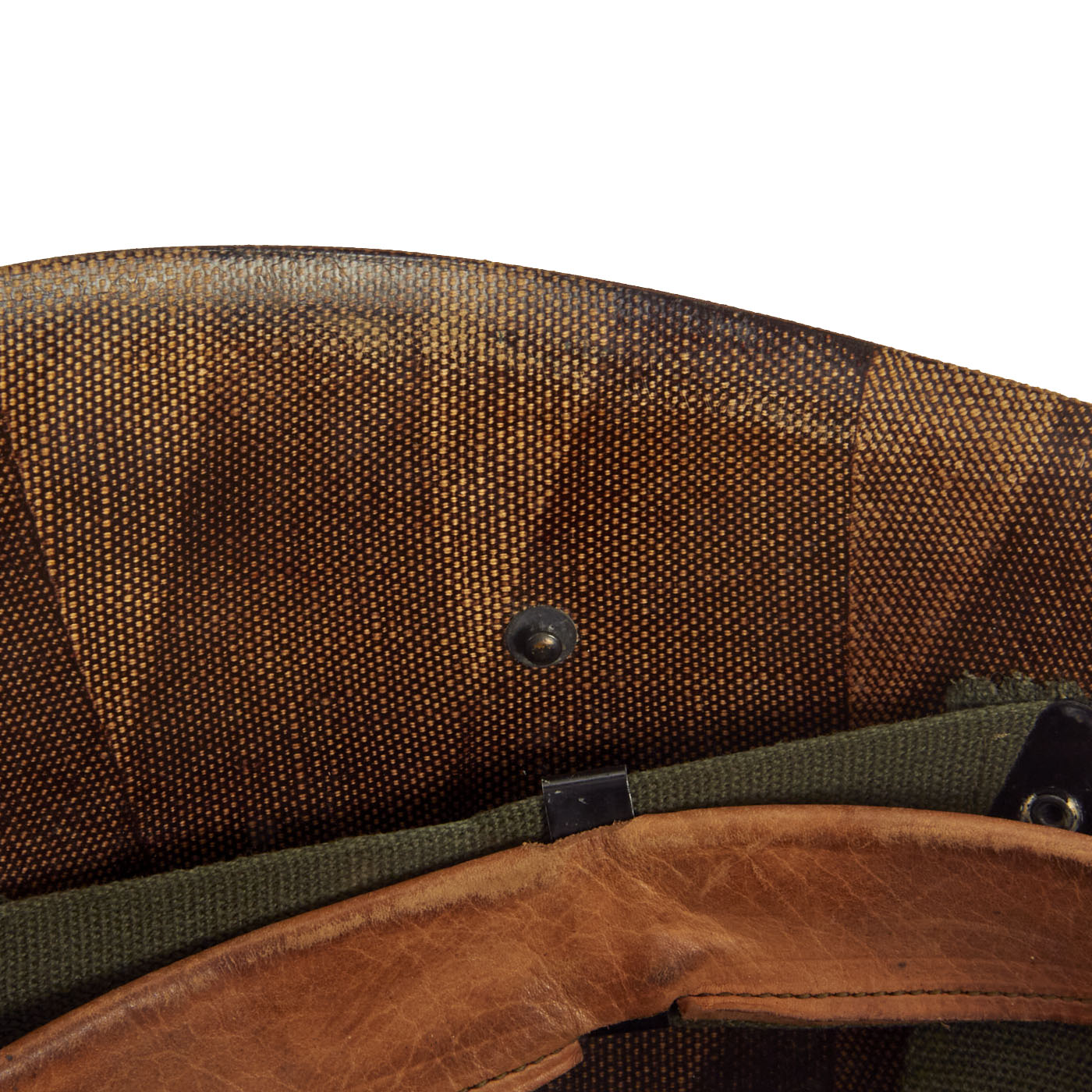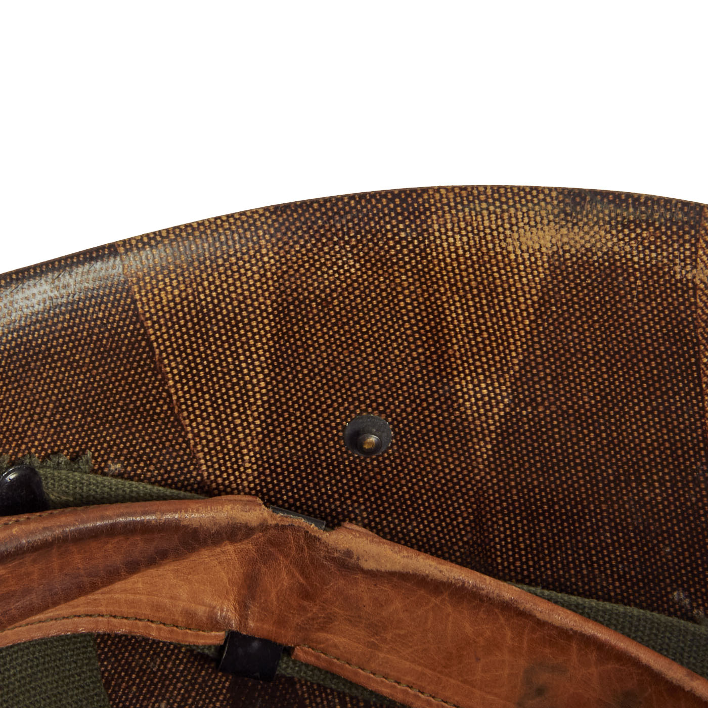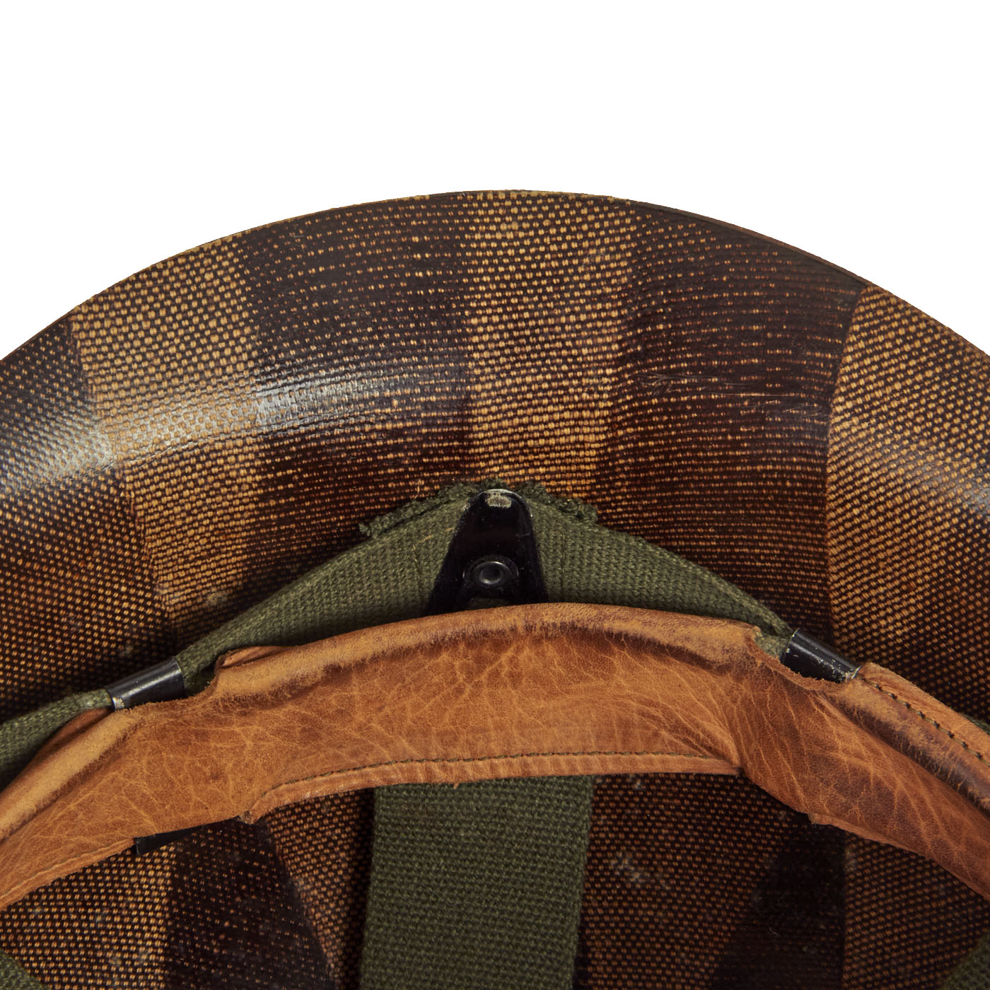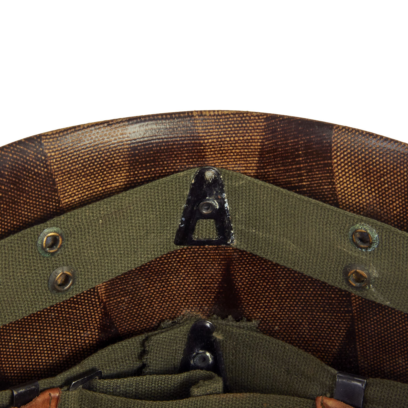 The liner is a 1950s production made by Mine Safety Appliances (MSA). The Olive Drab suspension is in excellent condition, showing only signs of light use. The sweatband appears to bear a 1962 Contract Date.
