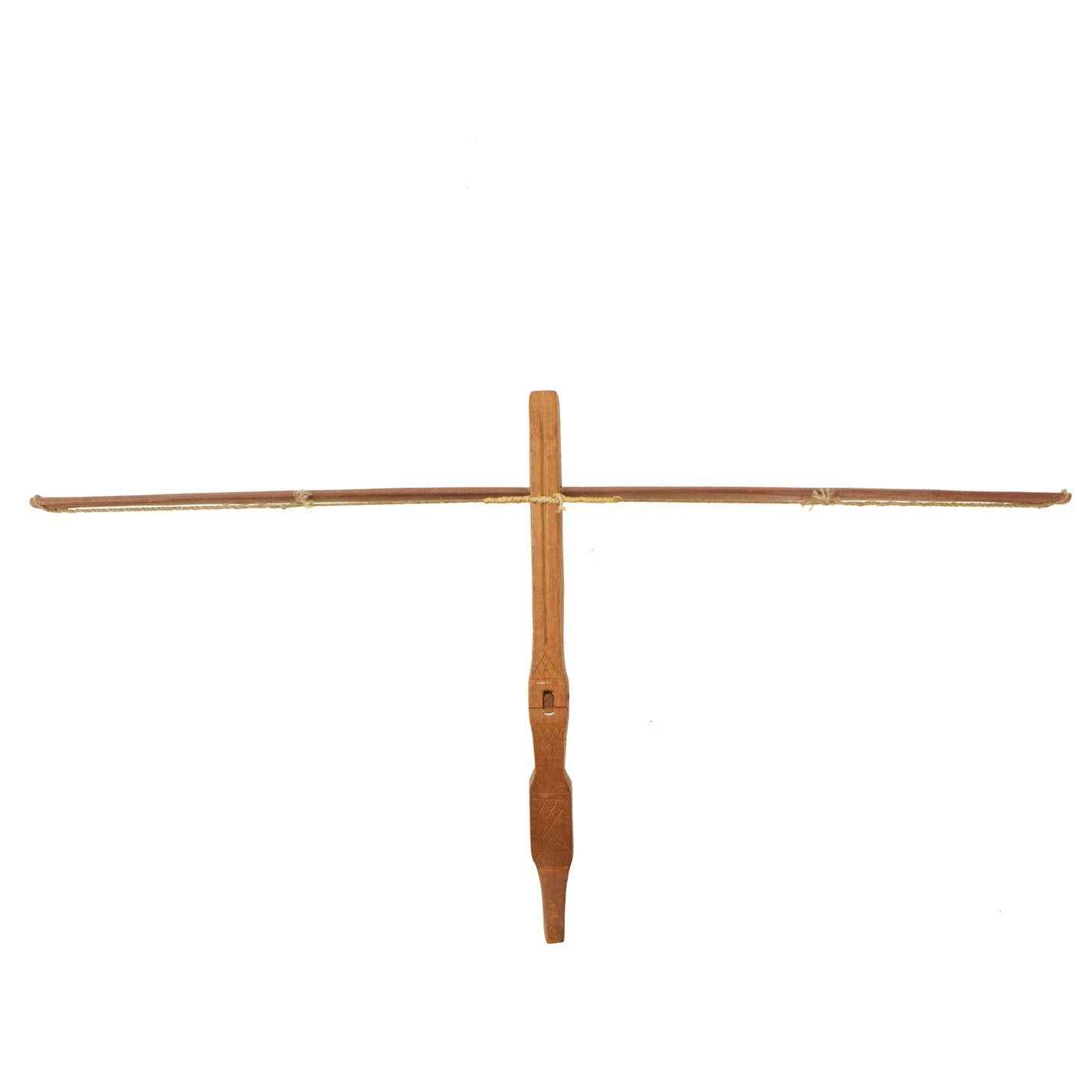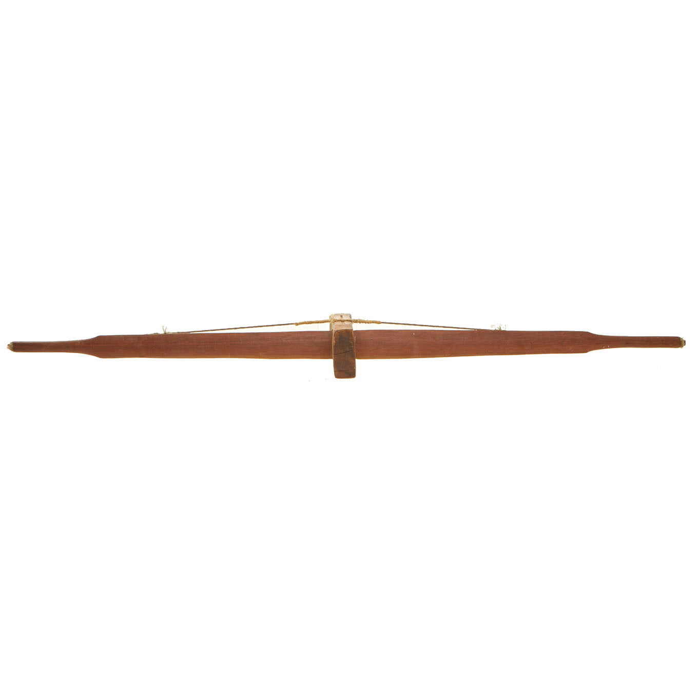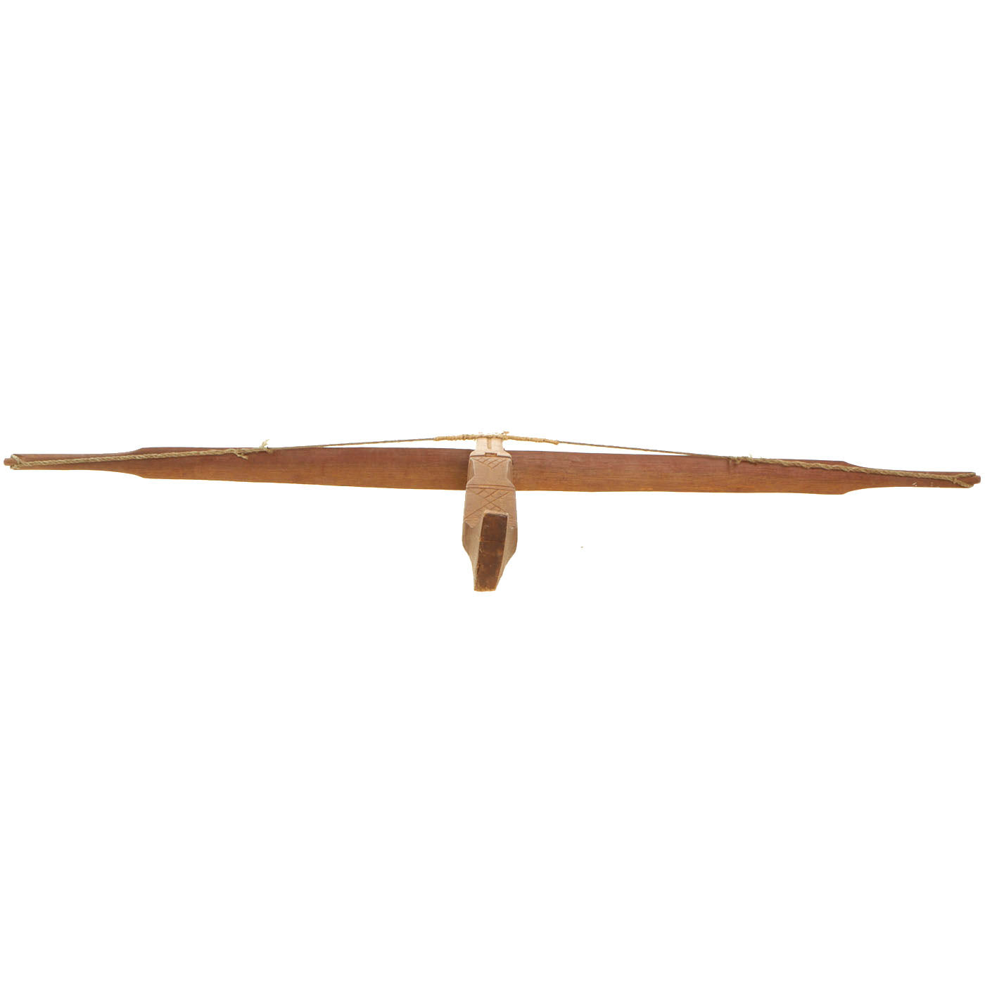 -The crossbow is in the traditional Hmong style. Constructed of a South Asian hardwood, the stock of the bow is decoratively carved with various designs and patterns. The handmade woven bowstring is original and completely intact, as is the original wooden trigger assembly. The bow measures approximately 35” x 18”.