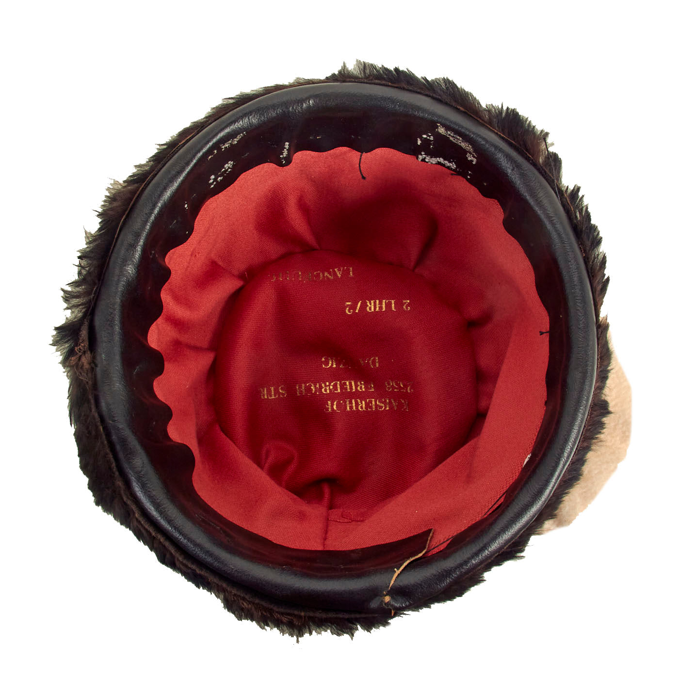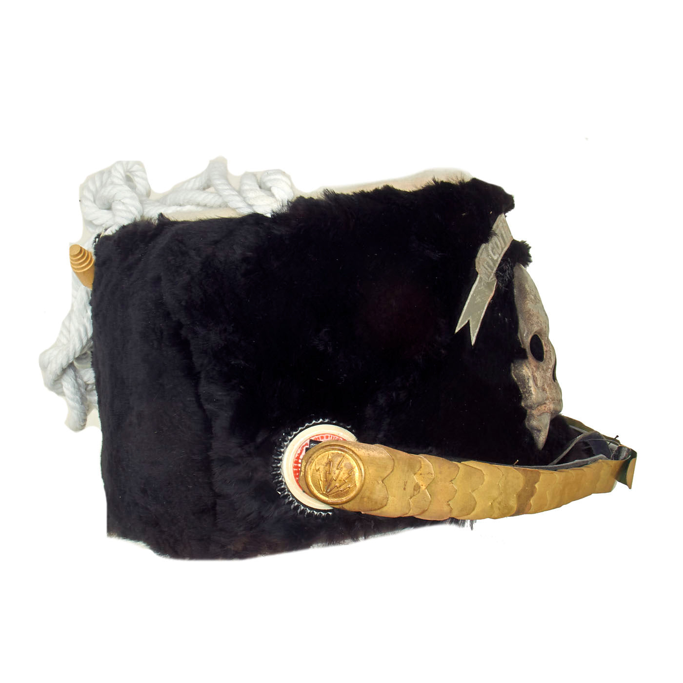 Replica Item: Only One Available. Here we have a very nice replica example of an Imperial German Death's Head 2nd Life Hussars Regimental Busby or Pelzmütze (Fur Cap), intended for EM/NCO's or Mannschaften "Other Ranks" soldiers. Busby is of course the English name for the Hungarian prémes csákó ("fur shako") or kucsma, a military head-dress made of fur, originally worn by Hungarian hussars. In its original Hungarian form the busby was a cylindrical fur cap, having a bag of colored cloth hanging from the top. The end of this bag was attached to the right shoulder as a defense against sabre cuts.